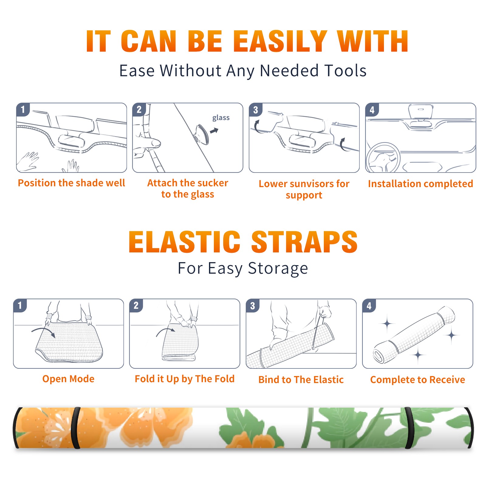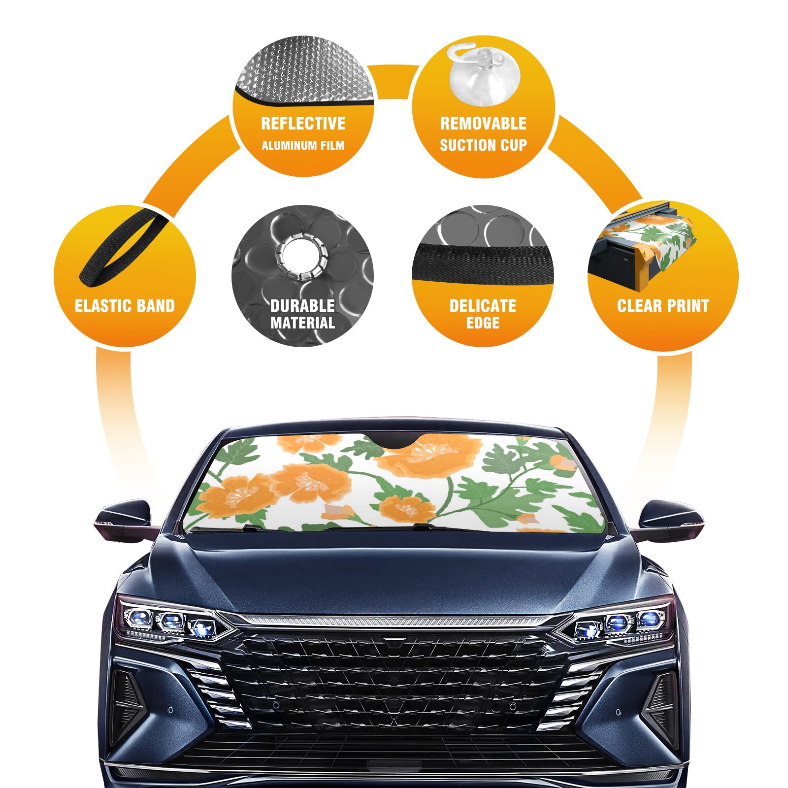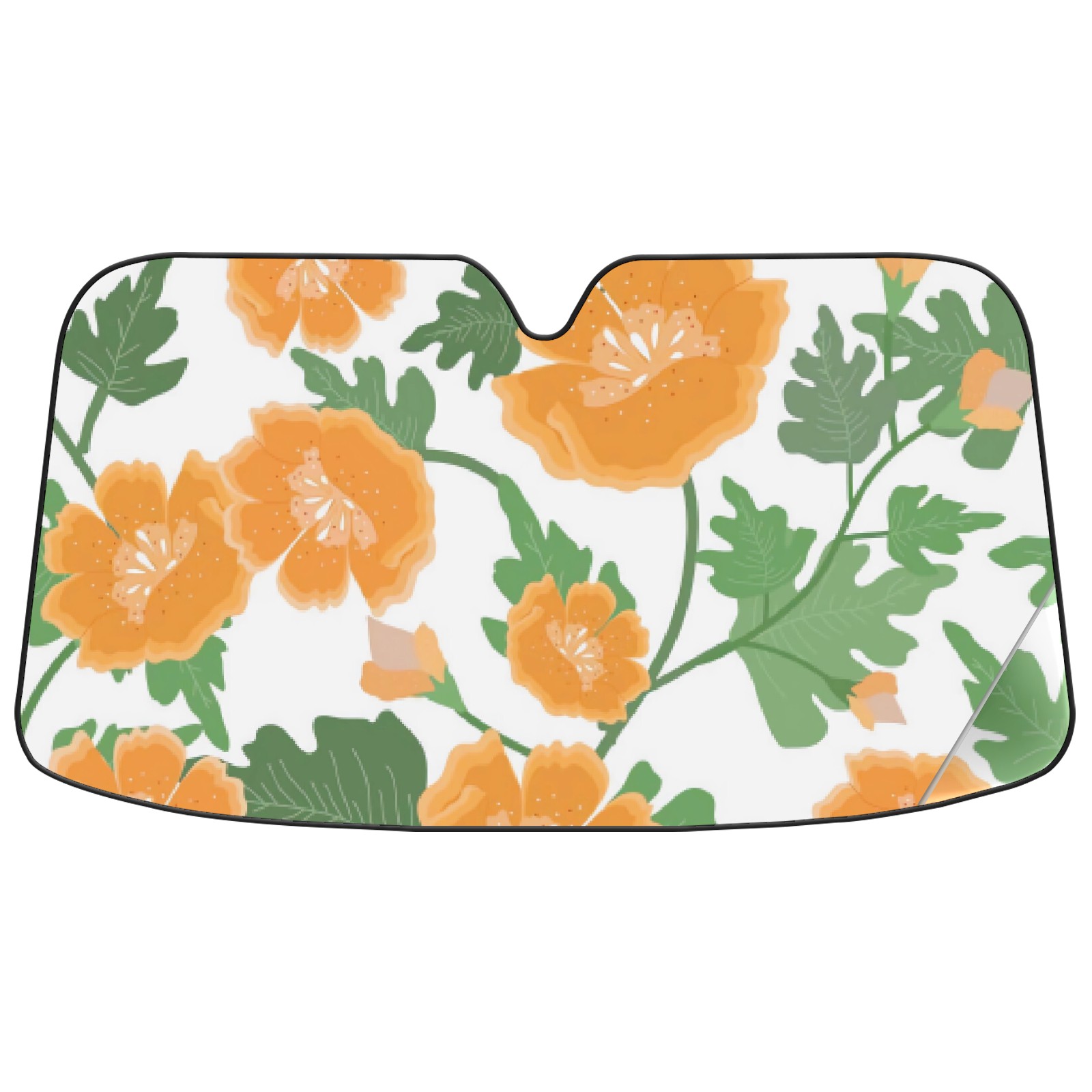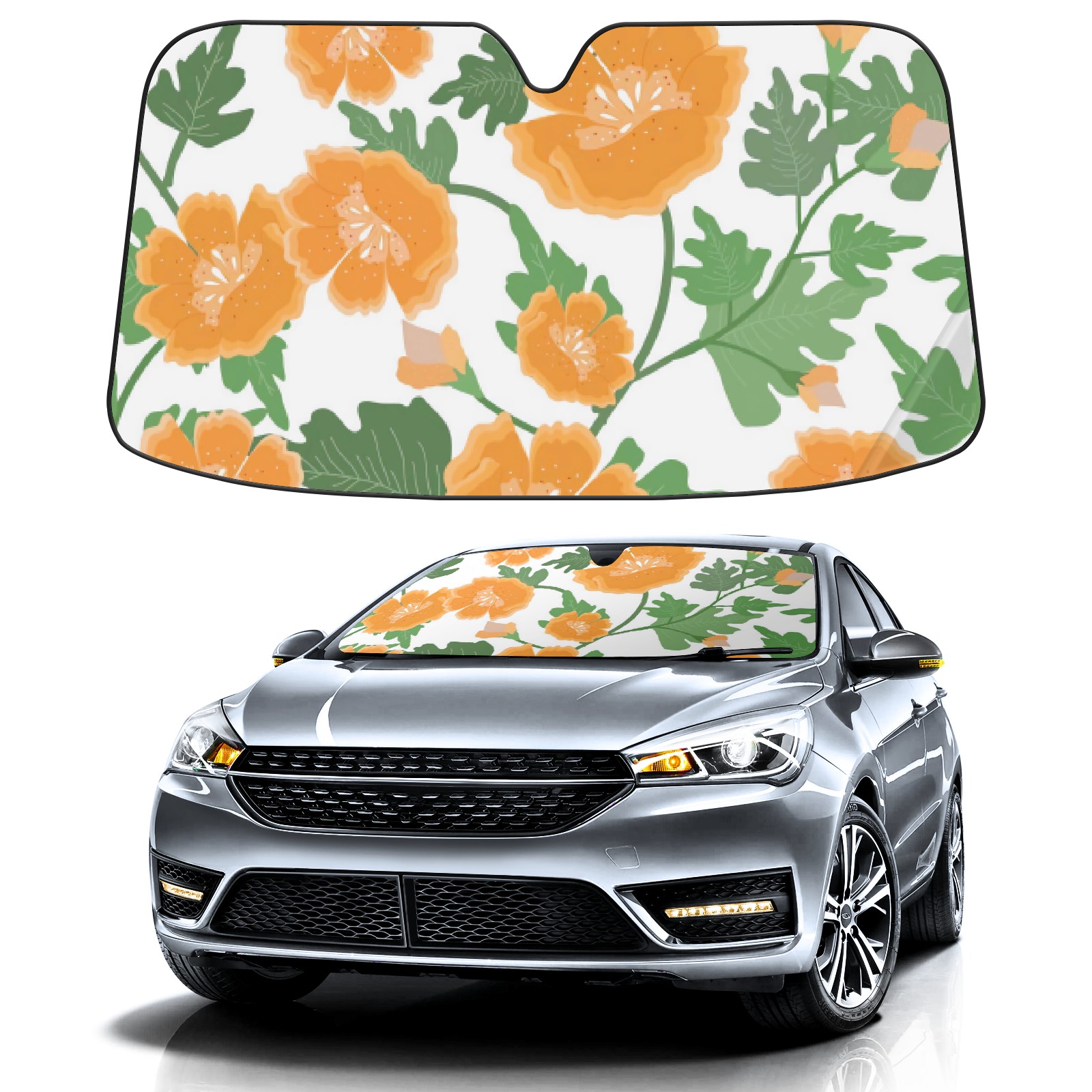 Car Windshield Sun Shade For Front Window Orange Petals Foldable Vehicle Windshield Car Sun Visor Covers Automotive Window Protector Car Camping Privacy Sun Blocker