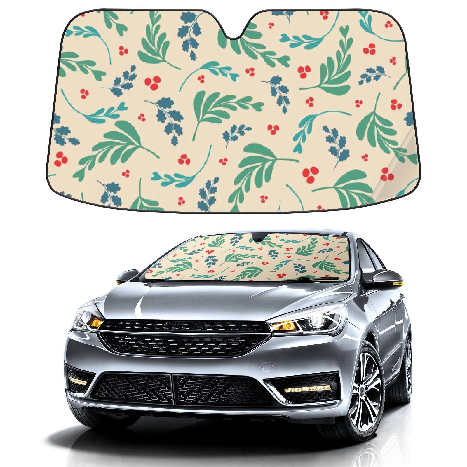 Car Windshield Sun Shade For Front Window Green Red Vintage Plants Foldable Vehicle Windshield Car Sun Visor Covers Automotive Window Protector Car Camping Privacy Sun Blocker
