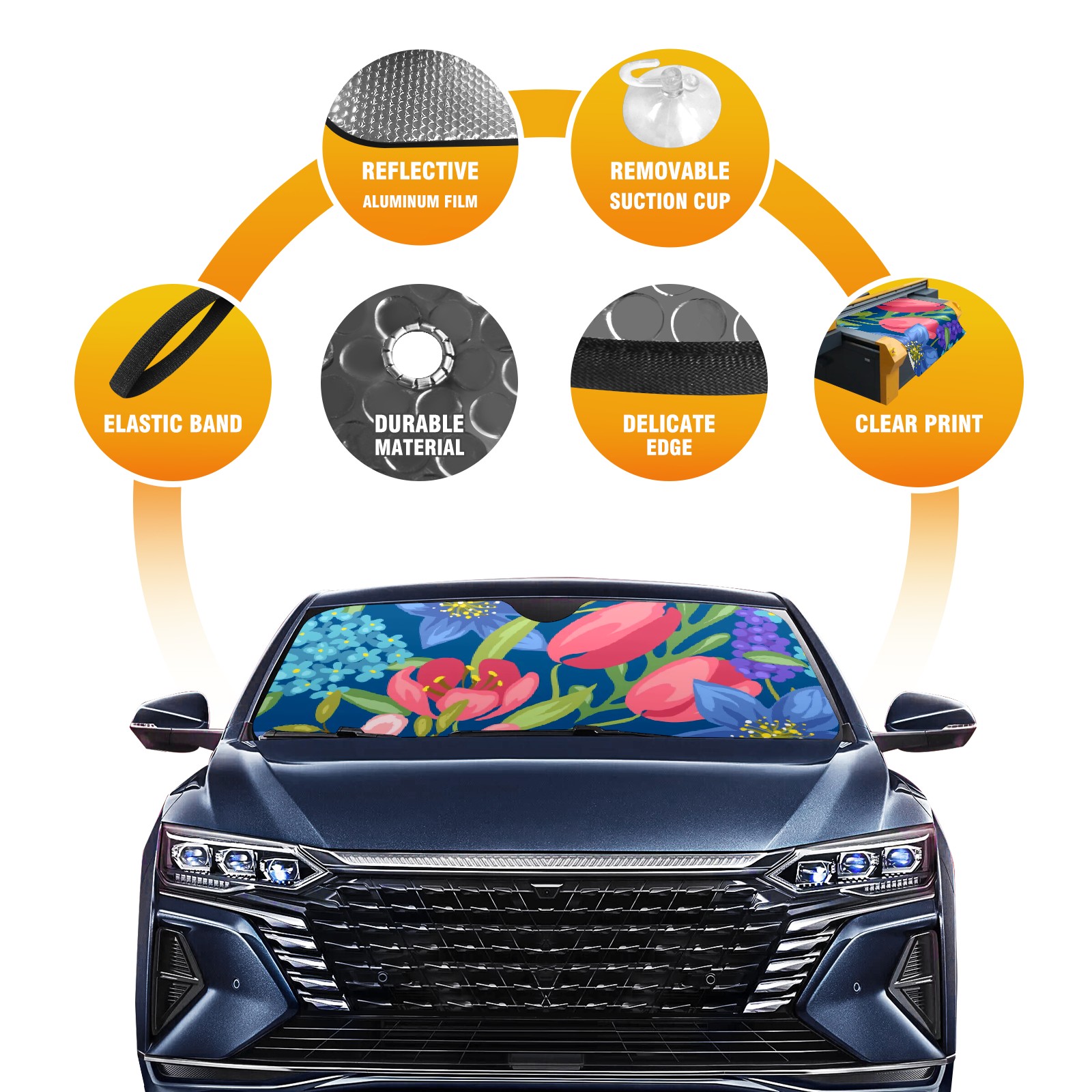 Diameter /Size 63"L x 33.5"W Made from excellent materials which makes it sturdy and protects the car from the sun. Easy to use and pack. Makes the interior of the car cooler.You can easily stash the sunshade in the storage bag or store long term.It open and closes easy. Also the leather storage bag is durable and easy to put the umbrella back into.This windshield sunshade provides complete coverage and keeps your car interior cool under direct sun. It is easy to open and position under the windshield and around the rear-view mirror. Makes Your Car Easy To Identify, Perfect For Finding Your Car In Crowded Parking Lots And Garages.Great Choice: It Is A Great Gift For Dad, Boyfriend, Brother, Brother And Uncle, Friends, Classmates, Family And So On. Notice: Due To Difference Computer Monitors, The Color Maybe Slightly Different From Picture. As Different Measurement Methods, Measurement Data Will Float Within 2%.I Hope You Understand. If You Have Any Question About The Item Please Do Not Hesitate To Contact Us Immediately And We Will Give You A Satisfactory Reply Within 24 Hours.
