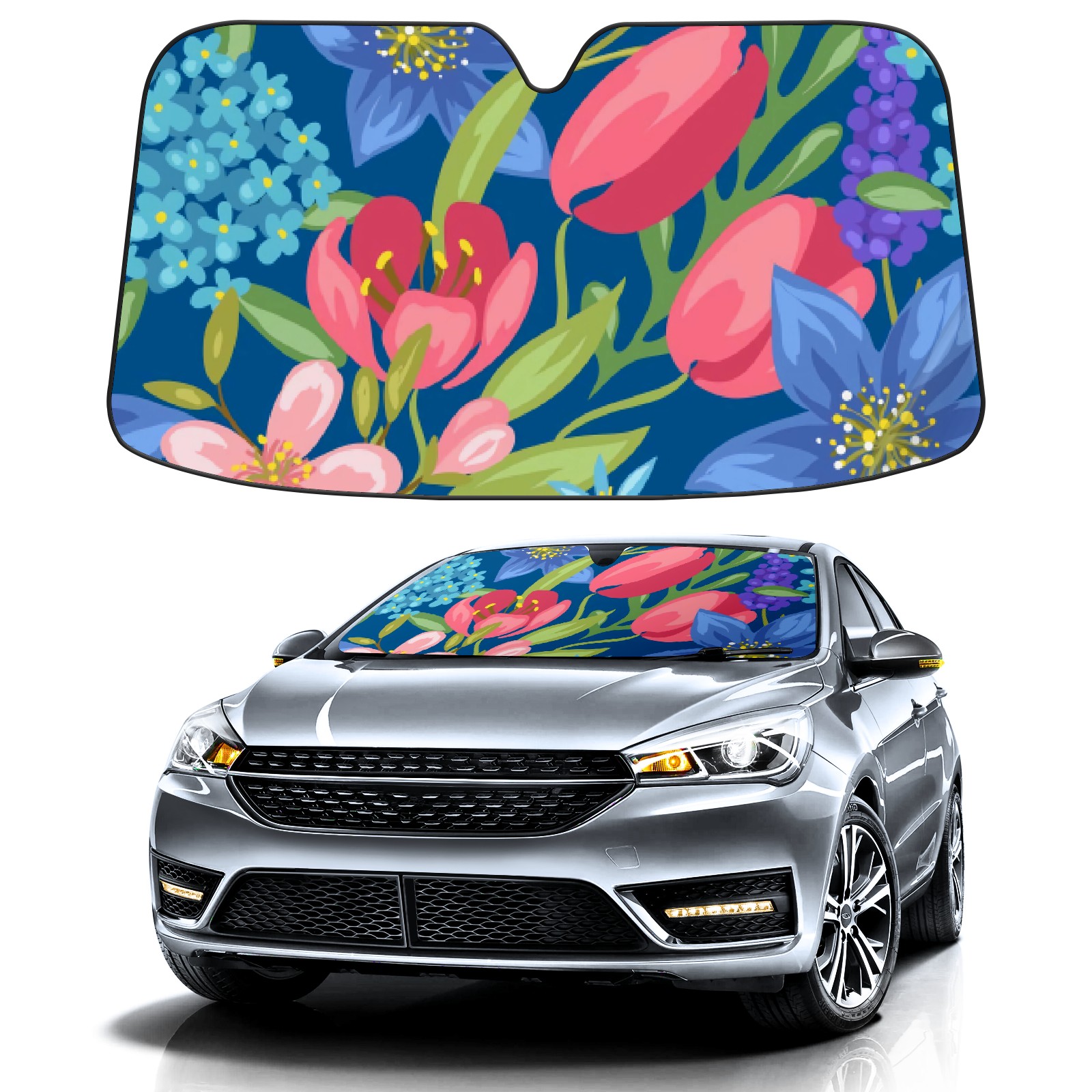 Car Windshield Sun Shade For Front Window Colorful Retro Large Flower Foldable Vehicle Windshield Car Sun Visor Covers Automotive Window Protector Car Camping Privacy Sun Blocker