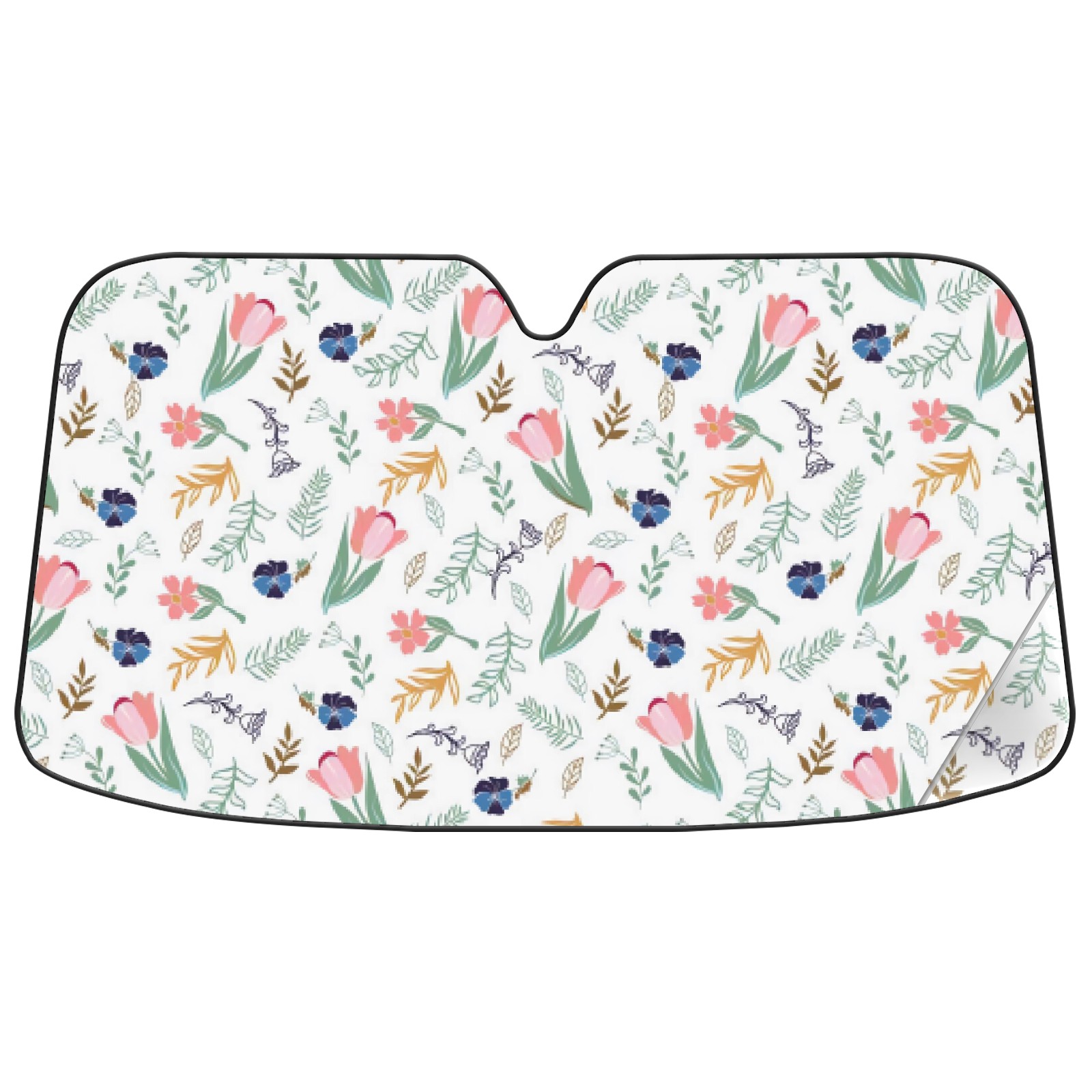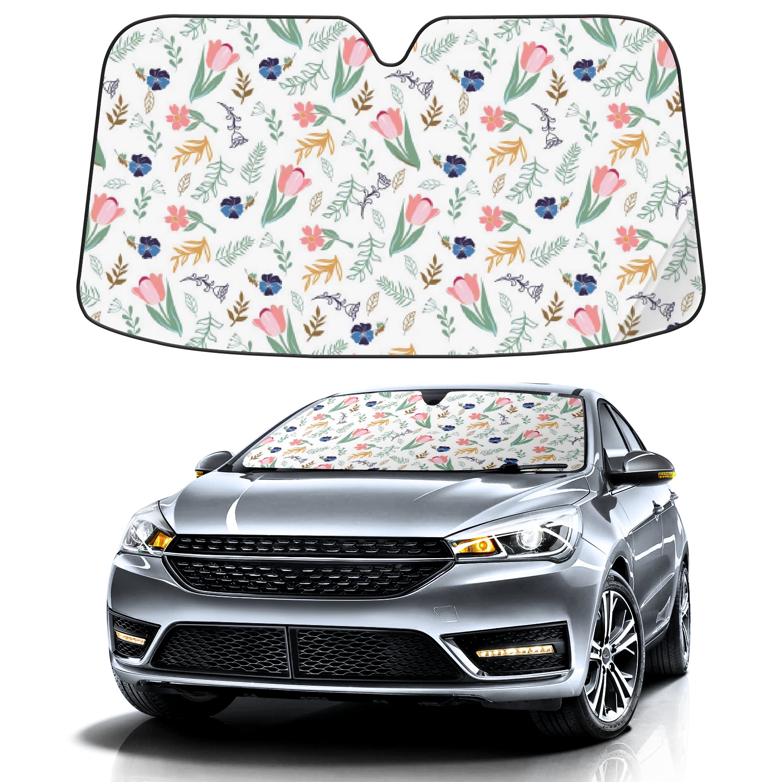 Car Windshield Sun Shade For Front Window Multiple Plants On A White Foldable Vehicle Windshield Car Sun Visor Covers Automotive Window Protector Car Camping Privacy Sun Blocker