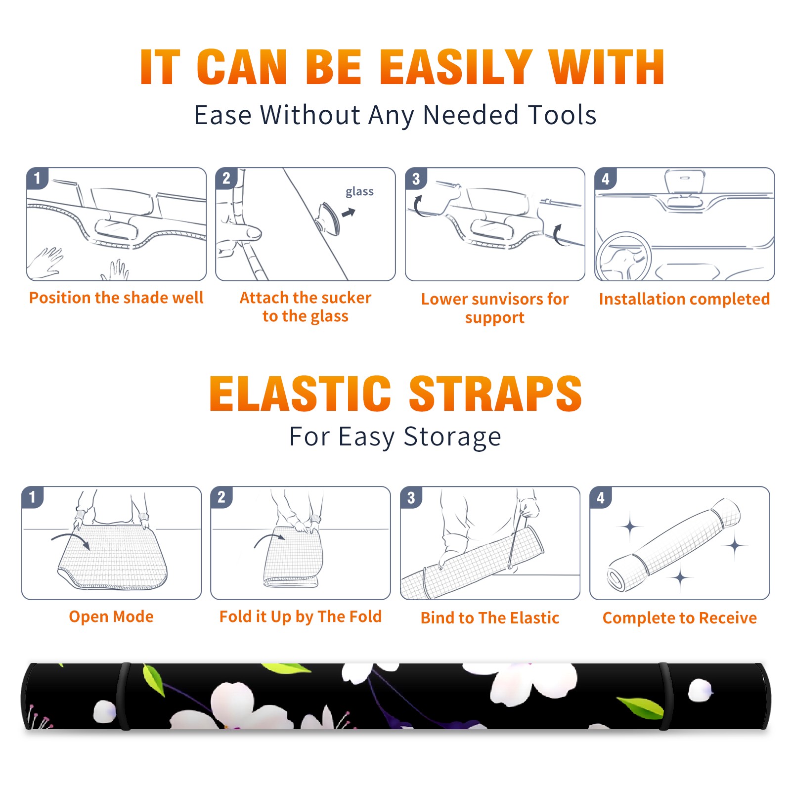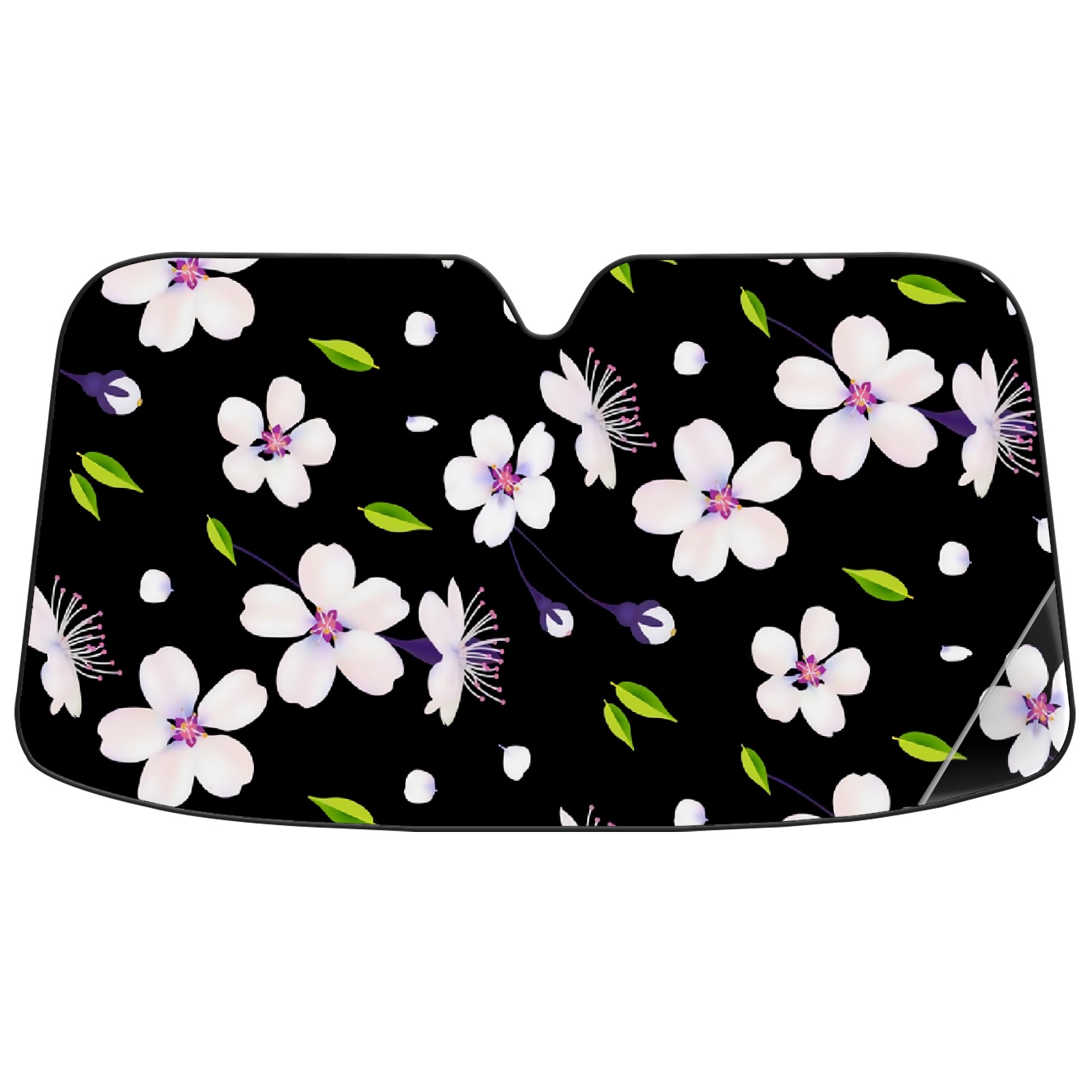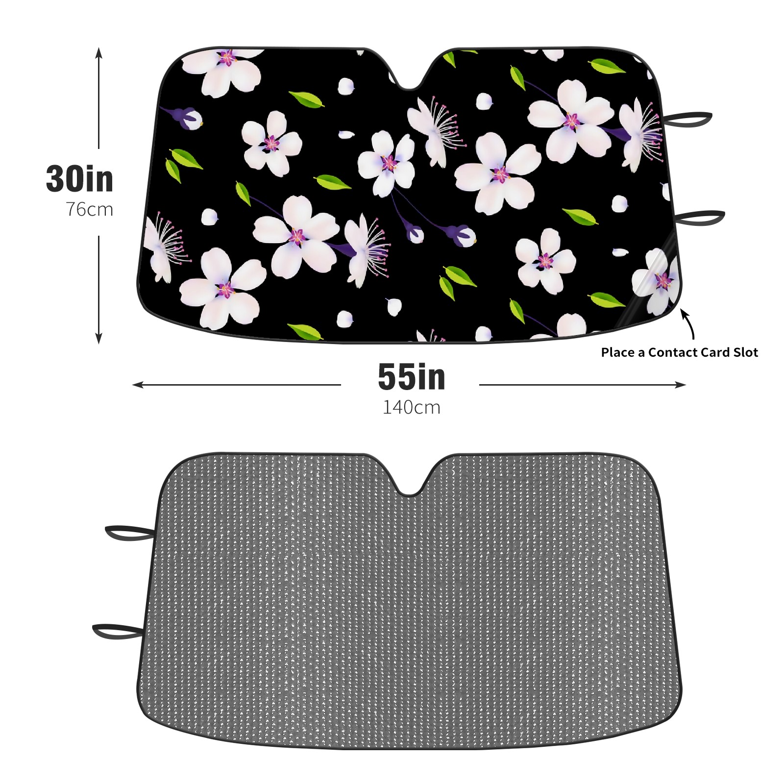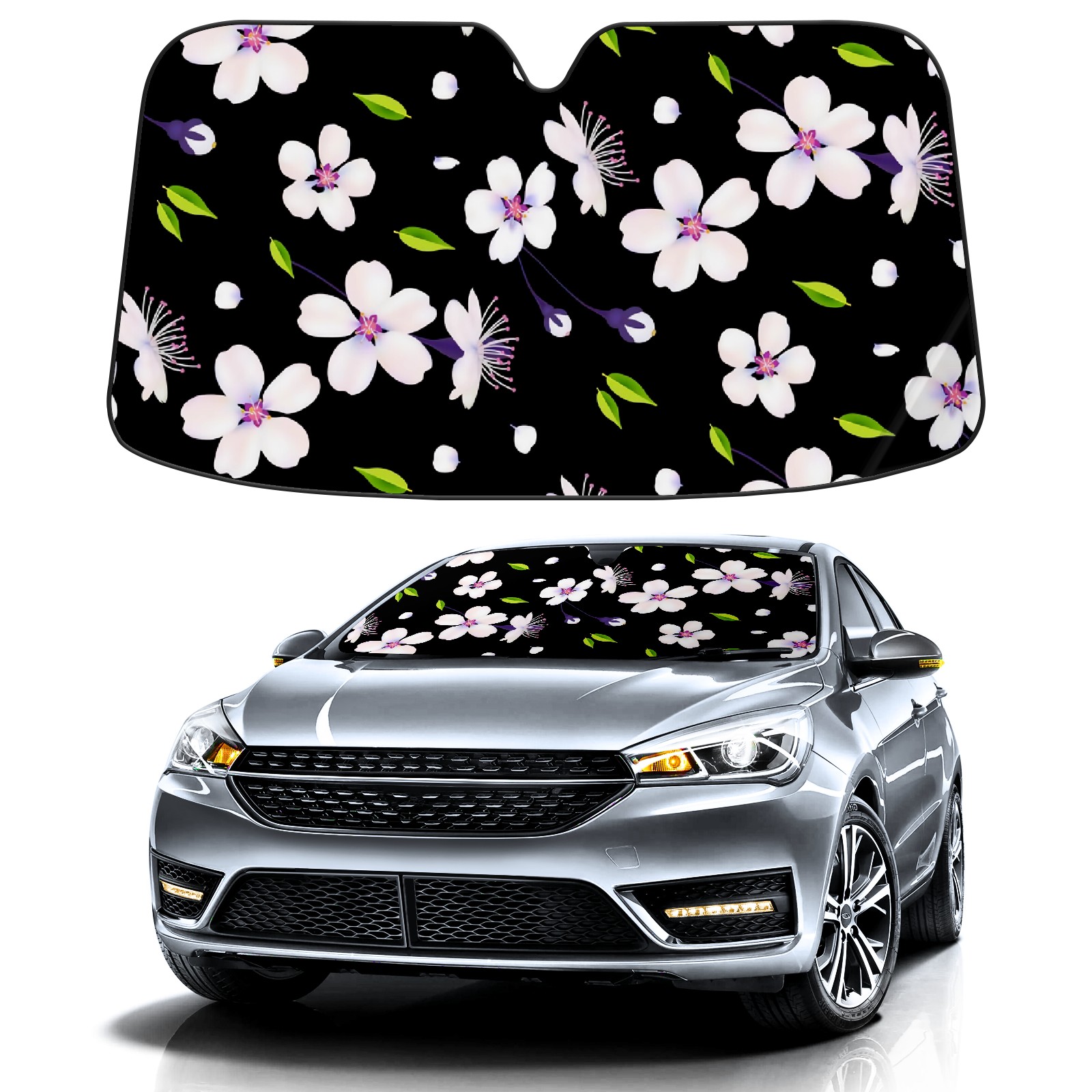 Car Windshield Sun Shade For Front Window Black With Peach Blossom Foldable Vehicle Windshield Car Sun Visor Covers Automotive Window Protector Car Camping Privacy Sun Blocker