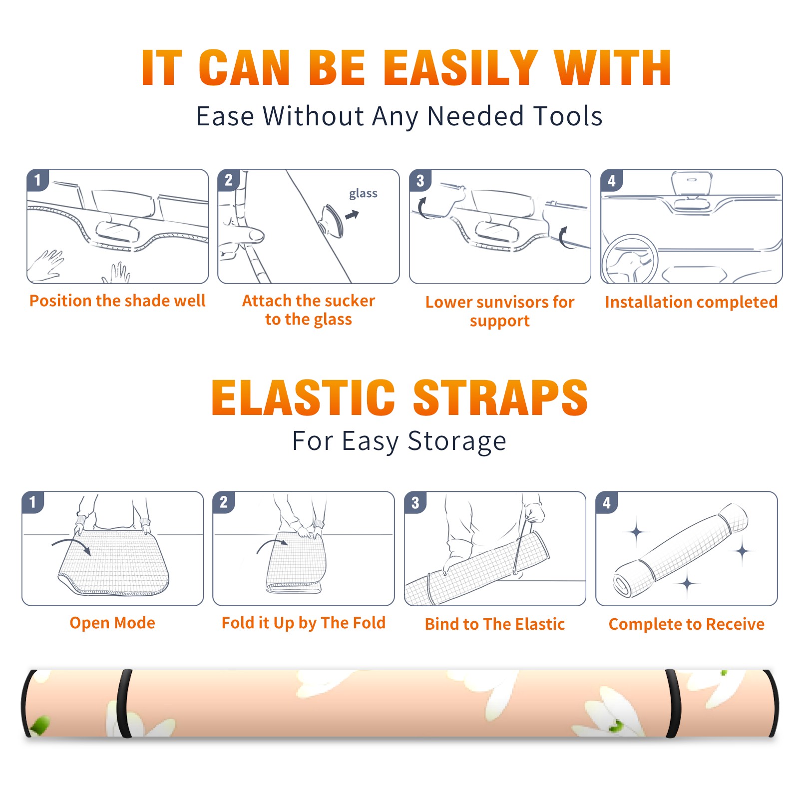 Car Windshield Sun Shade For Front Window Foundation White Orchid Foldable Vehicle Windshield Car Sun Visor Covers Automotive Window Protector Car Camping Privacy Sun Blocker