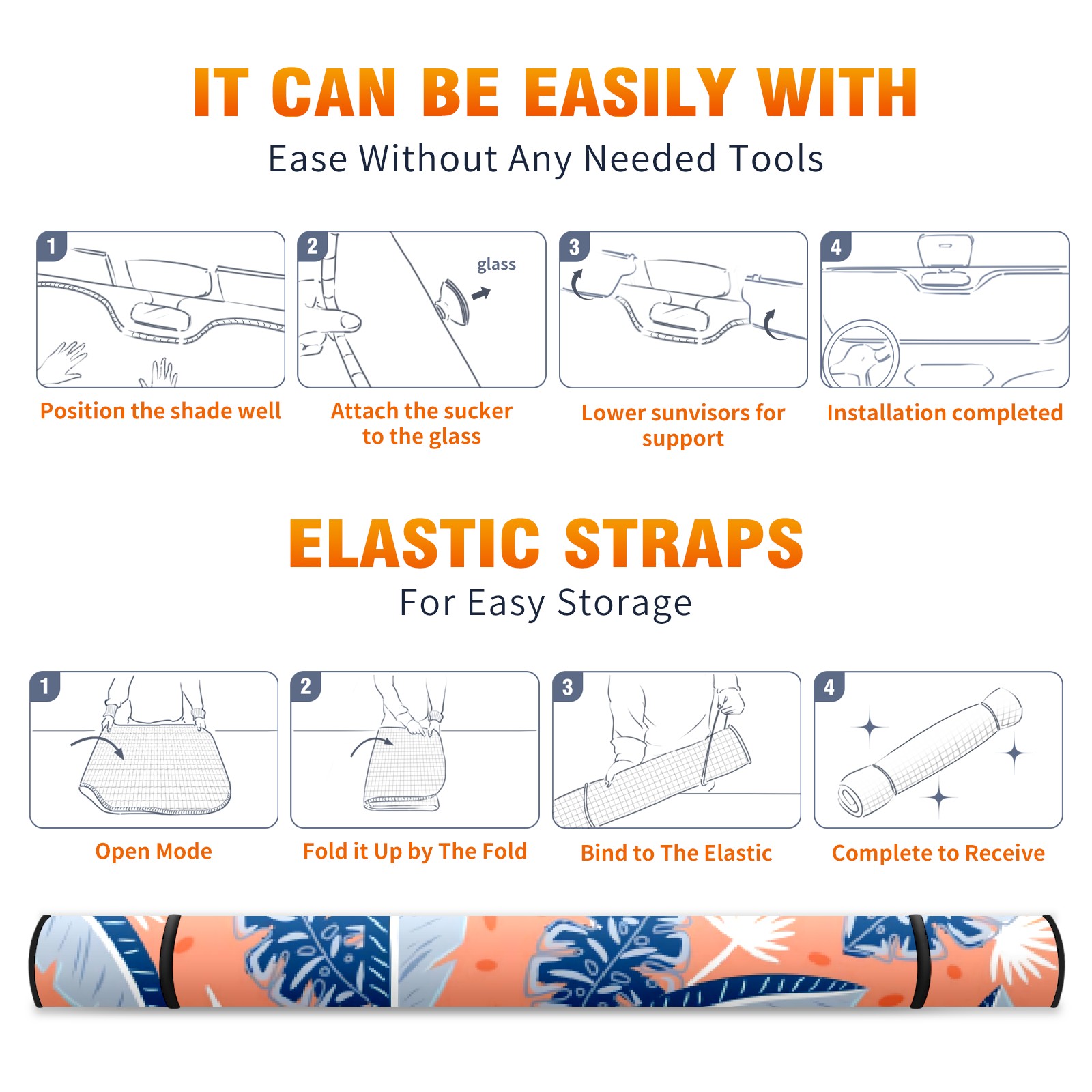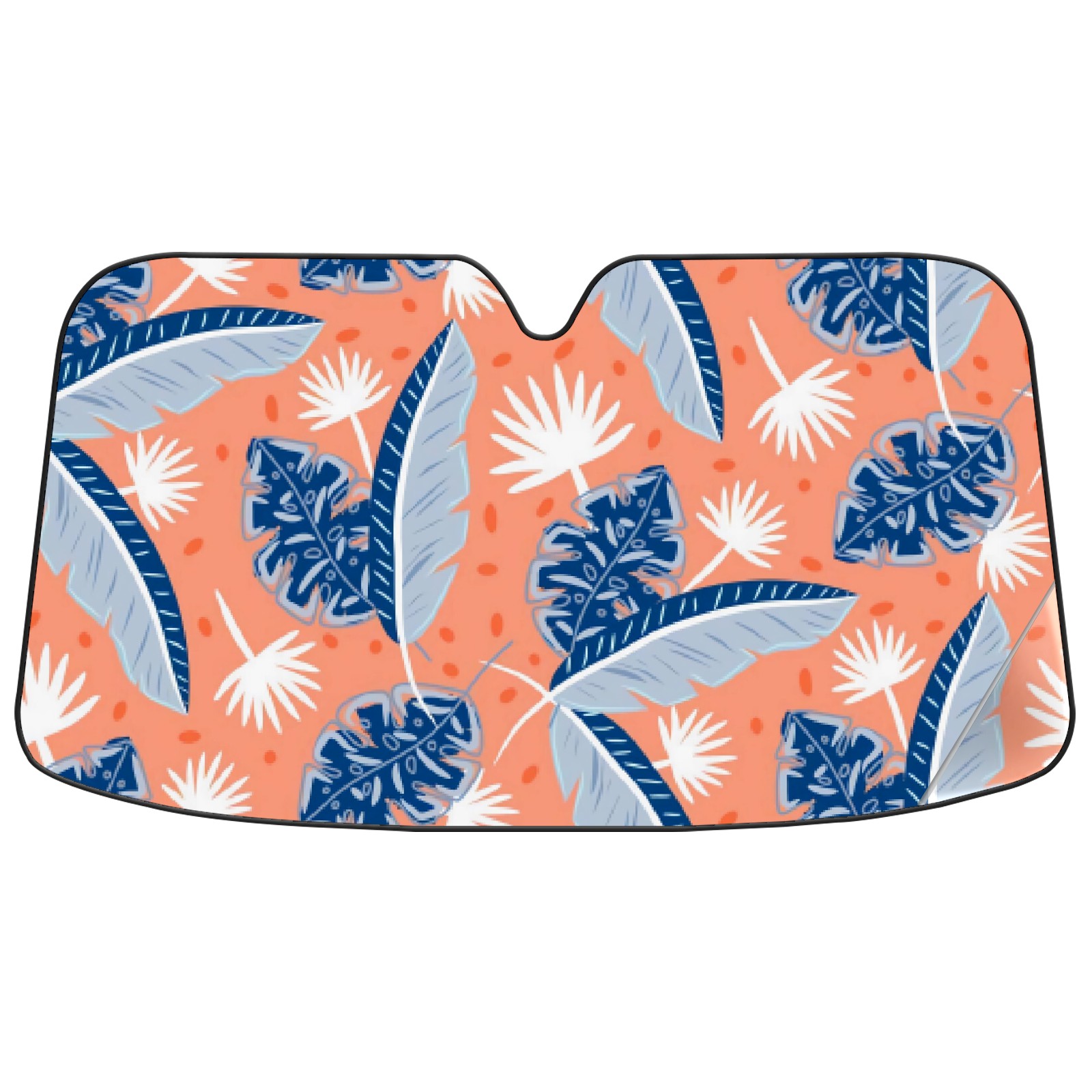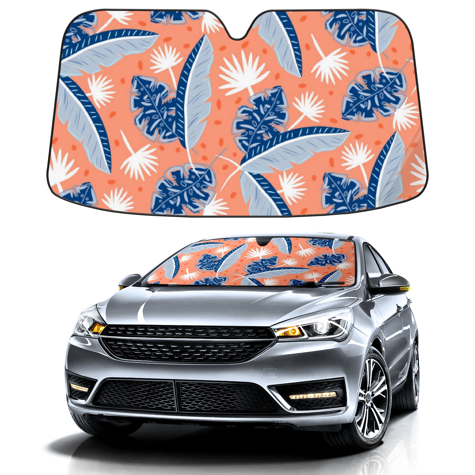 Car Windshield Sun Shade For Front Window Orange Base Tropical Foldable Vehicle Windshield Car Sun Visor Covers Automotive Window Protector Car Camping Privacy Sun Blocker
