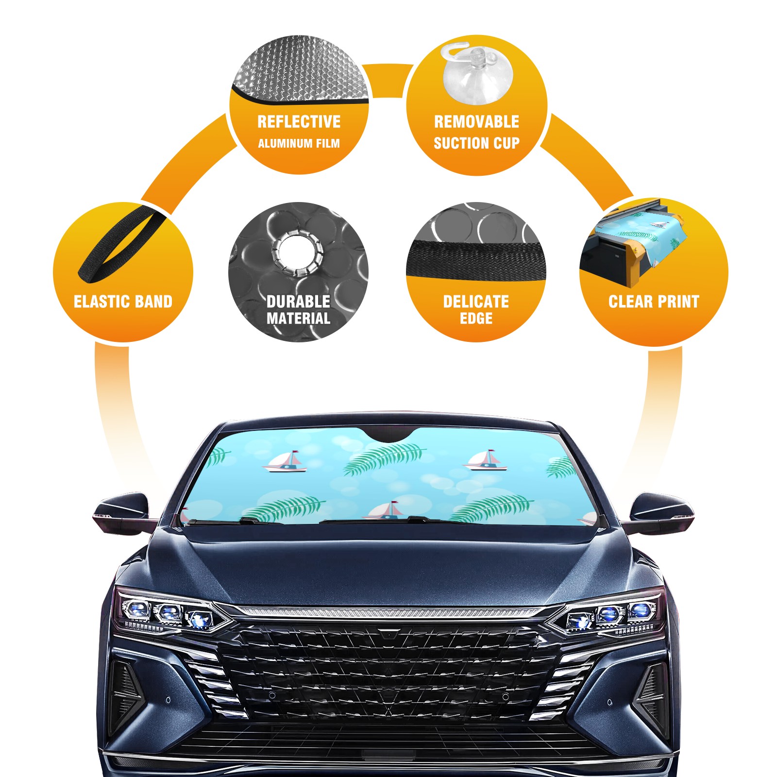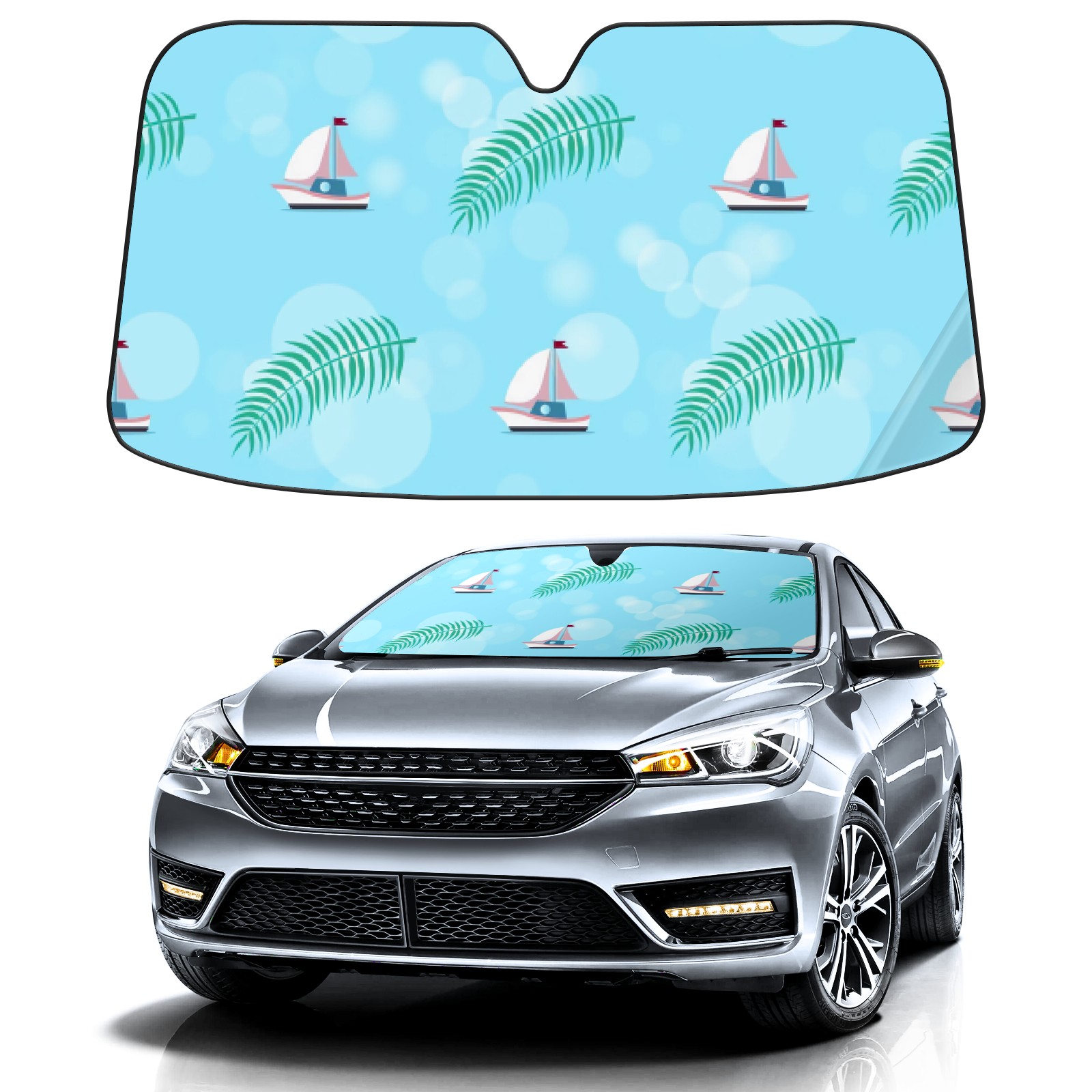 Car Windshield Sun Shade For Front Window Blue Ocean Boat Foldable Vehicle Windshield Car Sun Visor Covers Automotive Window Protector Car Camping Privacy Sun Blocker