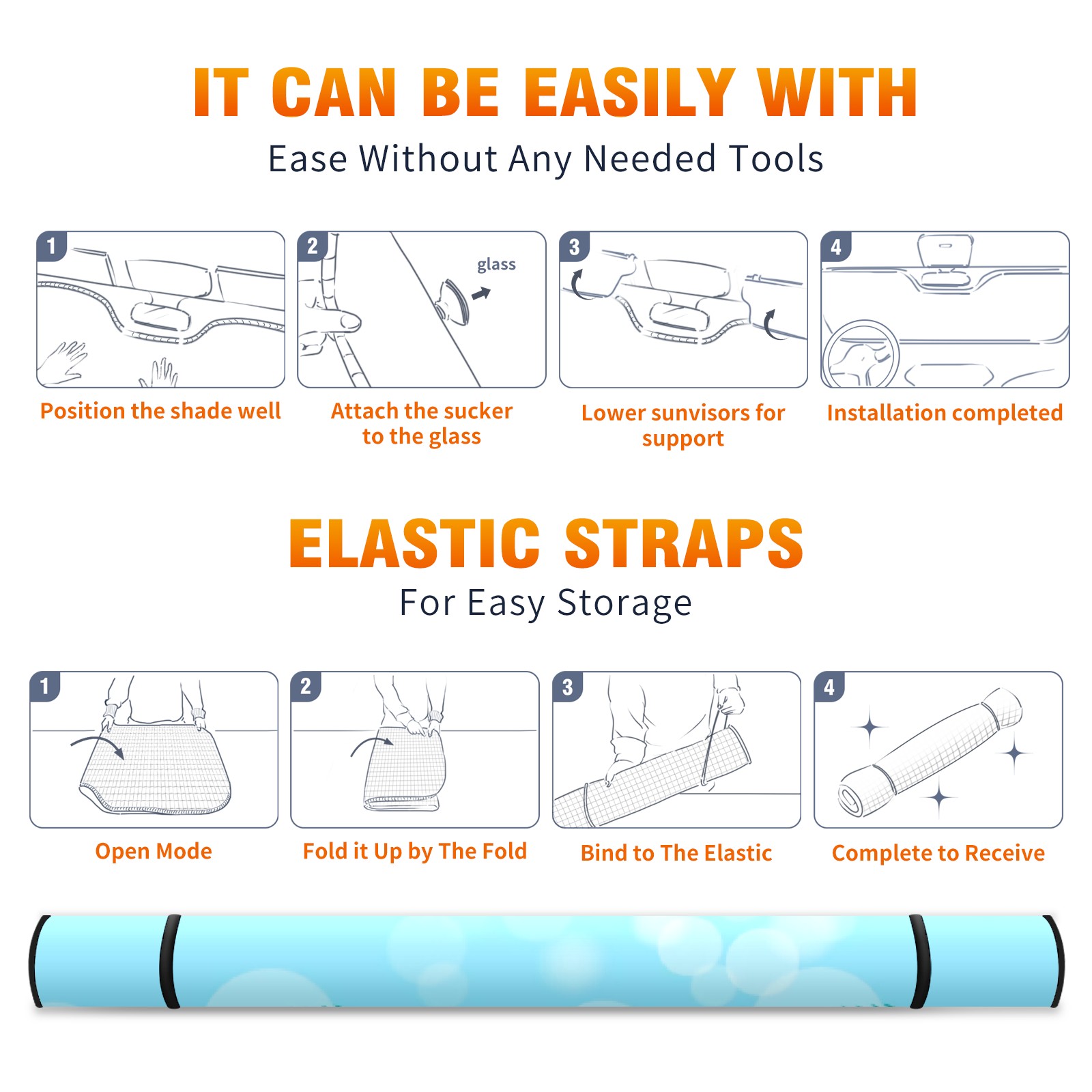 • Diameter /Size 63"L x 33.5"W Made from excellent materials which makes it sturdy and protects the car from the sun. Easy to use and pack. Makes the interior of the car cooler.You can easily stash the sunshade in the storage bag or store long term.It open and closes easy. Also the leather storage bag is durable and easy to put the umbrella back into.This windshield sunshade provides complete coverage and keeps your car interior cool under direct sun. It is easy to open and position under the windshield and around the rear-view mirror. Makes Your Car Easy To Identify, Perfect For Finding Your Car In Crowded Parking Lots And Garages.Great Choice: It Is A Great Gift For Dad, Boyfriend, Brother, Brother And Uncle, Friends, Classmates, Family And So On. Notice: Due To Difference Computer Monitors, The Color Maybe Slightly Different From Picture. As Different Measurement Methods, Measurement Data Will Float Within 2%.I Hope You Understand. If You Have Any Question About The Item Please Do Not Hesitate To Contact Us Immediately And We Will Give You A Satisfactory Reply Within 24 Hours.