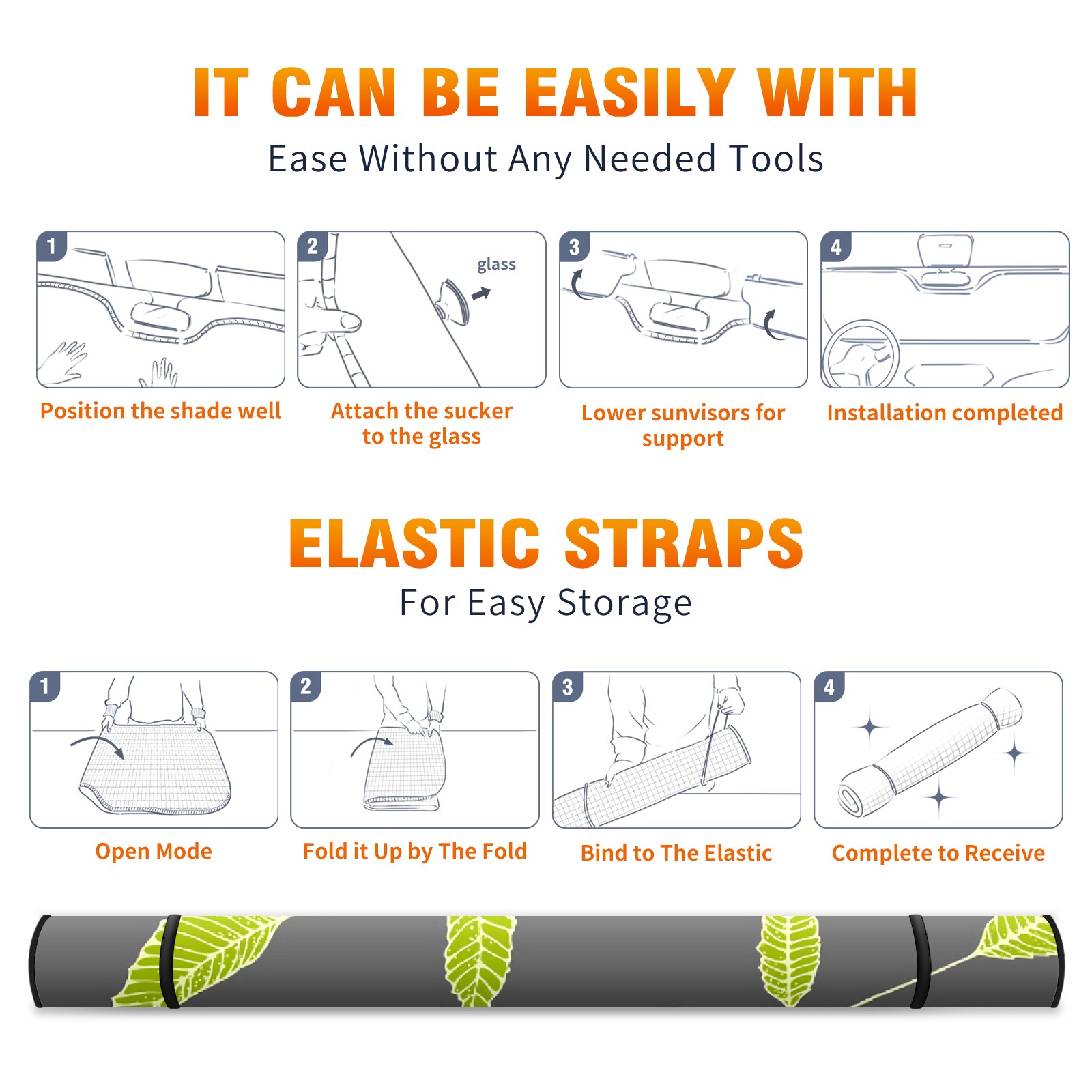 • Diameter /Size 63"L x 33.5"W Made from excellent materials which makes it sturdy and protects the car from the sun. Easy to use and pack. Makes the interior of the car cooler.You can easily stash the sunshade in the storage bag or store long term.It open and closes easy. Also the leather storage bag is durable and easy to put the umbrella back into.This windshield sunshade provides complete coverage and keeps your car interior cool under direct sun. It is easy to open and position under the windshield and around the rear-view mirror. Makes Your Car Easy To Identify, Perfect For Finding Your Car In Crowded Parking Lots And Garages.Great Choice: It Is A Great Gift For Dad, Boyfriend, Brother, Brother And Uncle, Friends, Classmates, Family And So On. Notice: Due To Difference Computer Monitors, The Color Maybe Slightly Different From Picture. As Different Measurement Methods, Measurement Data Will Float Within 2%.I Hope You Understand. If You Have Any Question About The Item Please Do Not Hesitate To Contact Us Immediately And We Will Give You A Satisfactory Reply Within 24 Hours.