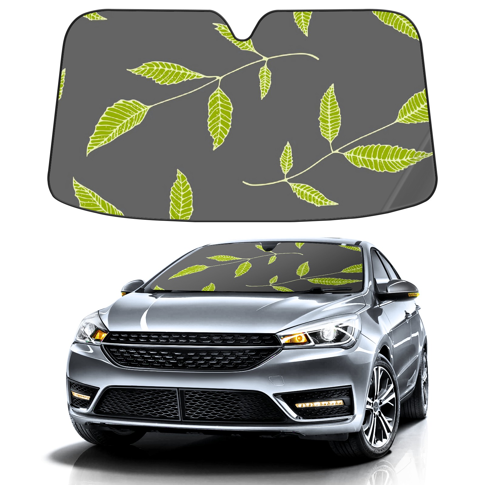 Car Windshield Sun Shade For Front Window Green Fresh Leaf Foldable Vehicle Windshield Car Sun Visor Covers Automotive Window Protector Car Camping Privacy Sun Blocker