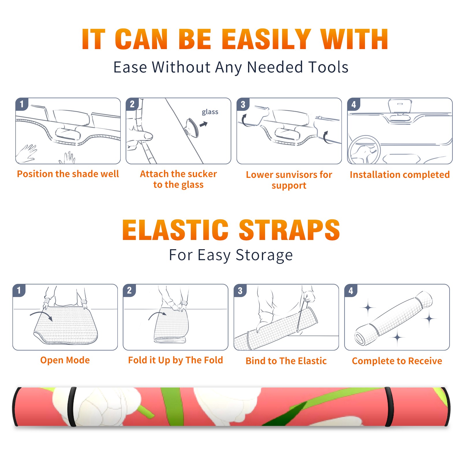 Car Windshield Sun Shade For Front Window Foundation White Tulip Foldable Vehicle Windshield Car Sun Visor Covers Automotive Window Protector Car Camping Privacy Sun Blocker