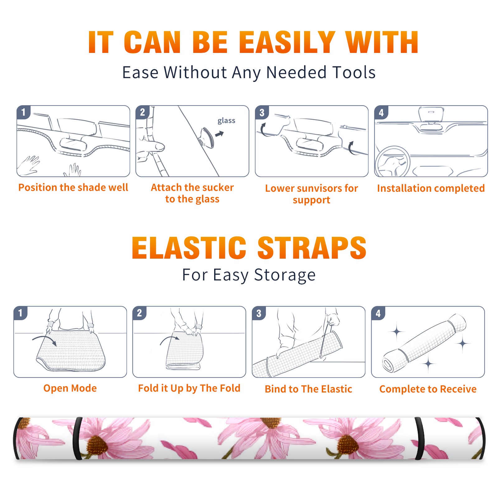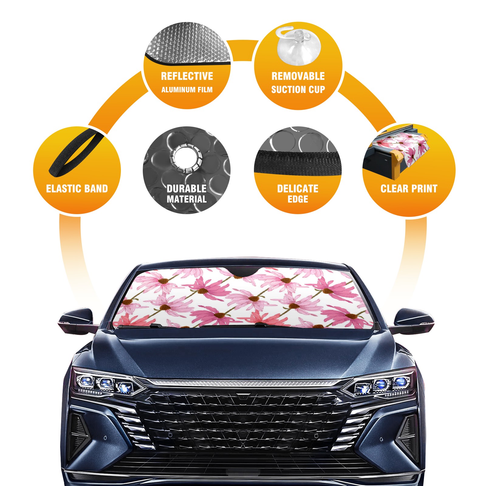 Car Windshield Sun Shade For Front Window Pink Cosmos Foldable Vehicle Windshield Car Sun Visor Covers Automotive Window Protector Car Camping Privacy Sun Blocker
