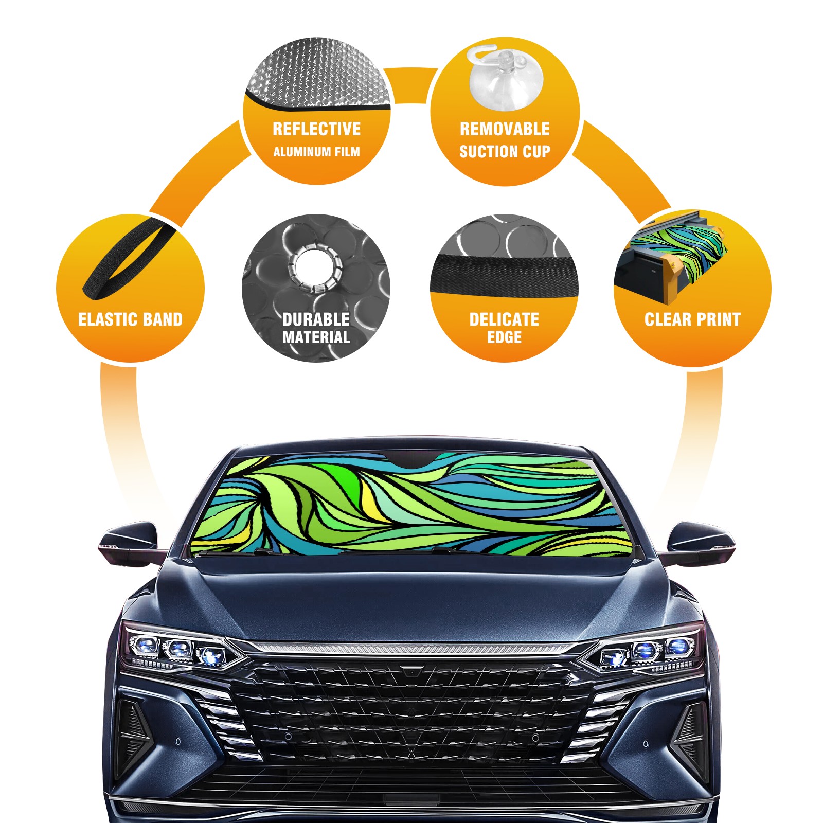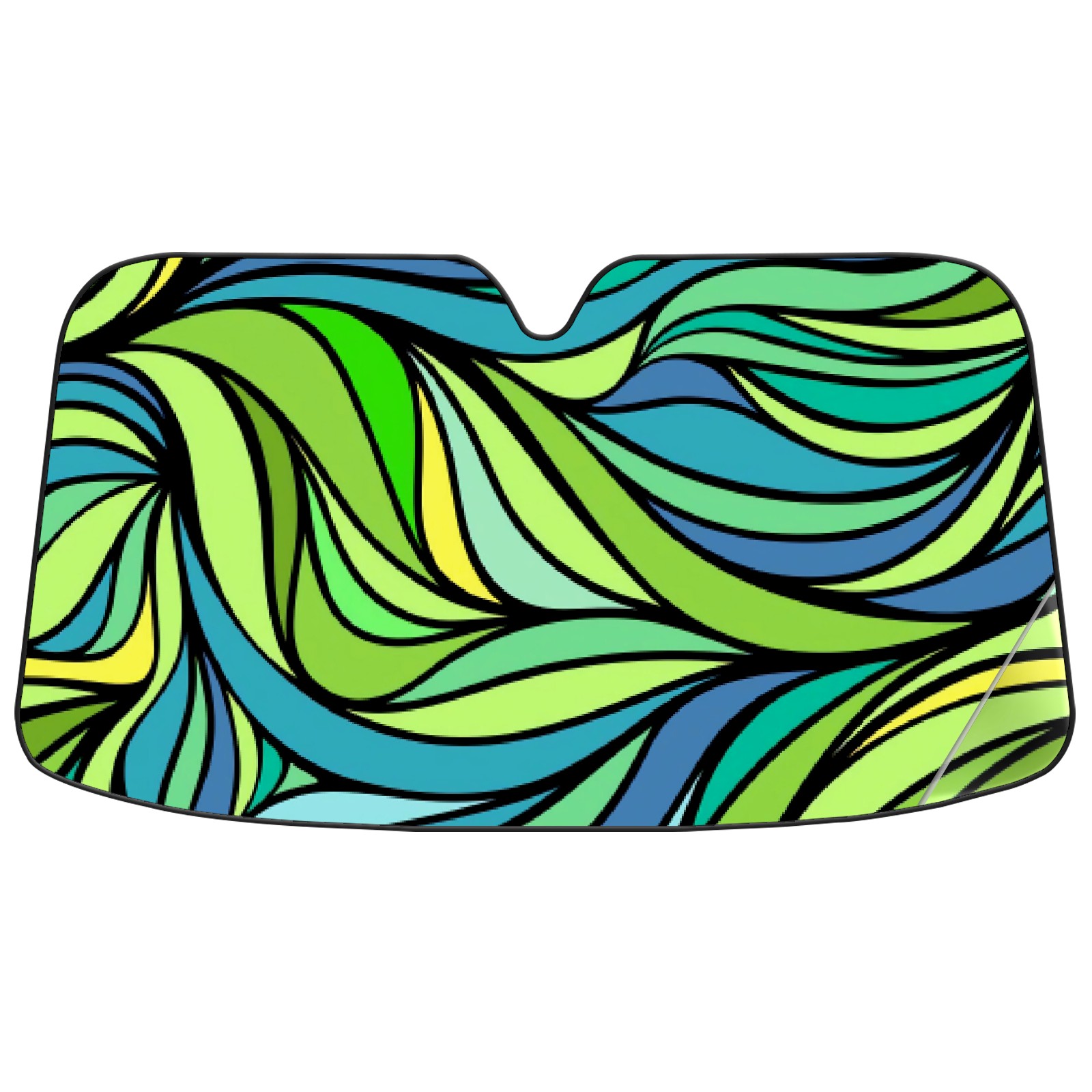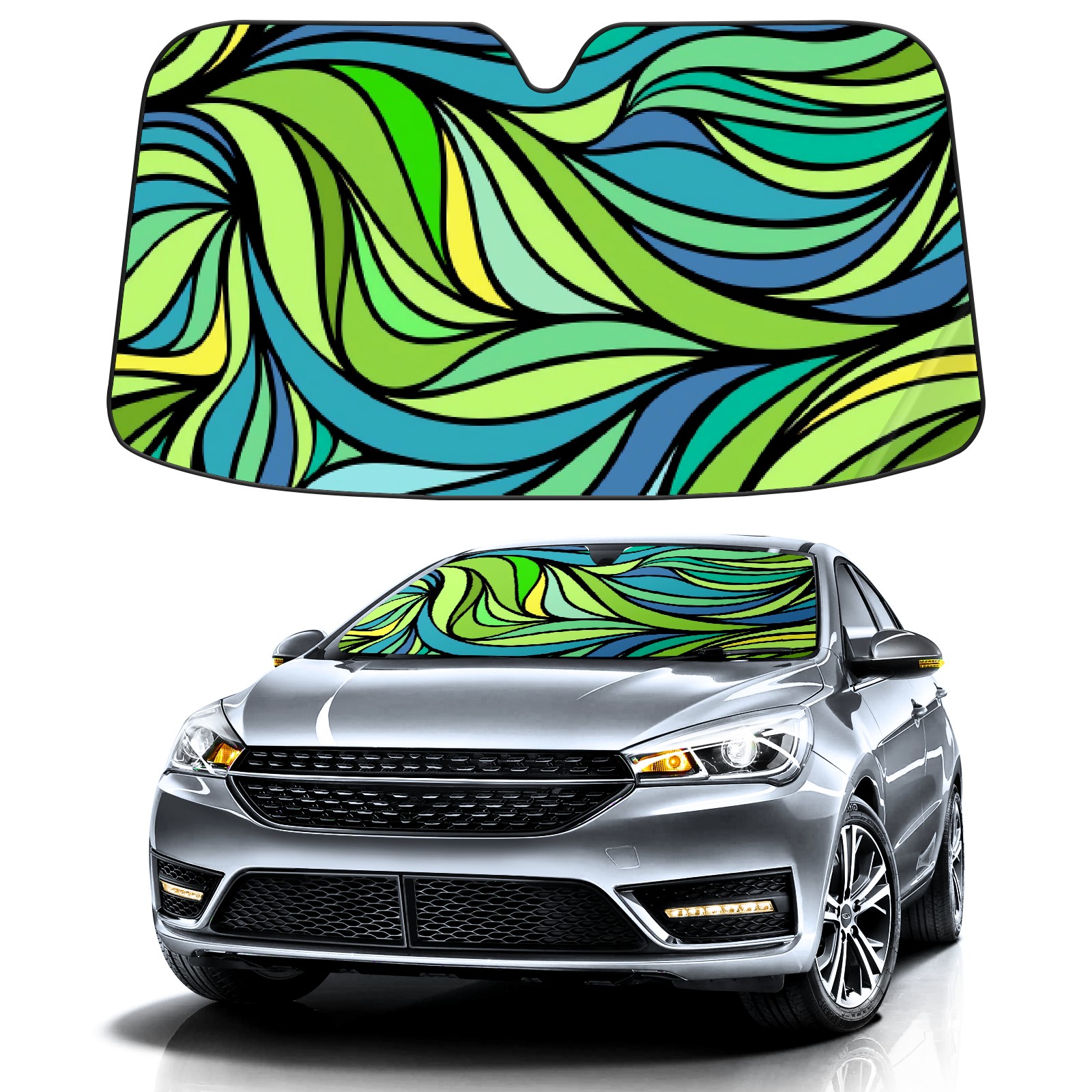 Car Windshield Sun Shade For Front Window Blue Green Abstract Painting Foldable Vehicle Windshield Car Sun Visor Covers Automotive Window Protector Car Camping Privacy Sun Blocker