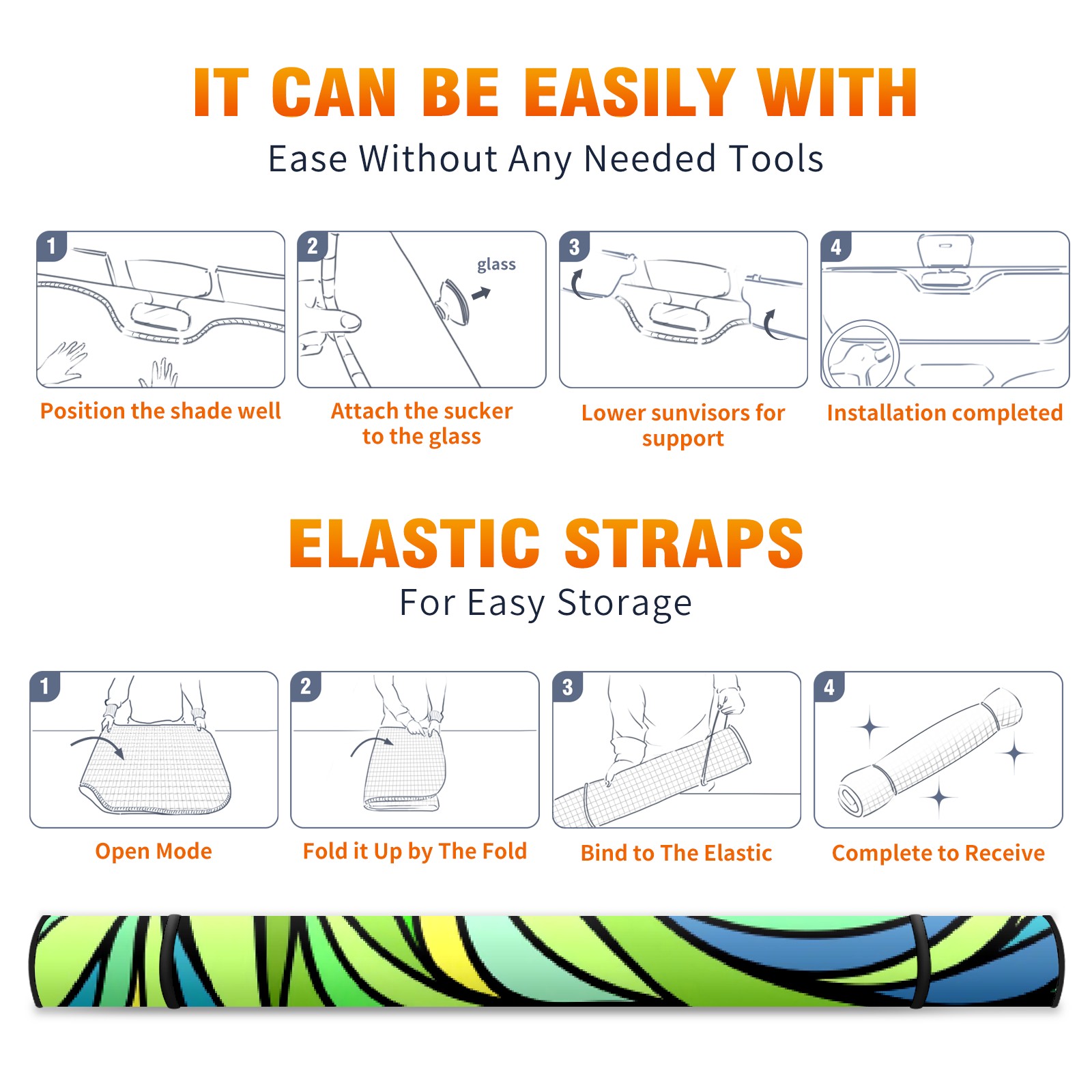 • Diameter /Size 63"L x 33.5"W Made from excellent materials which makes it sturdy and protects the car from the sun. Easy to use and pack. Makes the interior of the car cooler.You can easily stash the sunshade in the storage bag or store long term.It open and closes easy. Also the leather storage bag is durable and easy to put the umbrella back into.This windshield sunshade provides complete coverage and keeps your car interior cool under direct sun. It is easy to open and position under the windshield and around the rear-view mirror. Makes Your Car Easy To Identify, Perfect For Finding Your Car In Crowded Parking Lots And Garages.Great Choice: It Is A Great Gift For Dad, Boyfriend, Brother, Brother And Uncle, Friends, Classmates, Family And So On. Notice: Due To Difference Computer Monitors, The Color Maybe Slightly Different From Picture. As Different Measurement Methods, Measurement Data Will Float Within 2%.I Hope You Understand. If You Have Any Question About The Item Please Do Not Hesitate To Contact Us Immediately And We Will Give You A Satisfactory Reply Within 24 Hours.
