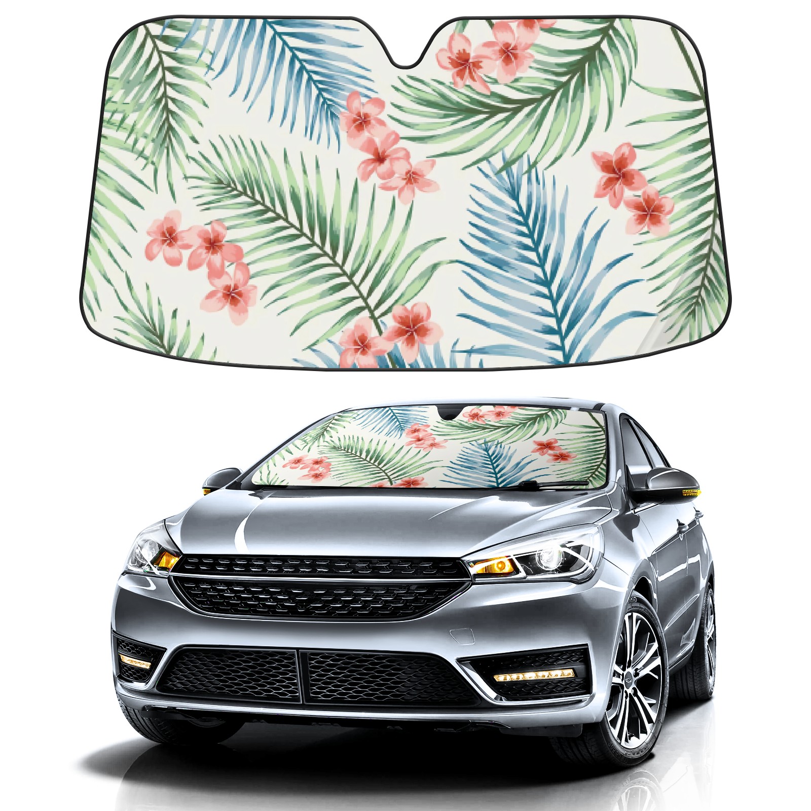 Car Windshield Sun Shade For Front Window Blue Green Branch Foldable Vehicle Windshield Car Sun Visor Covers Automotive Window Protector Car Camping Privacy Sun Blocker