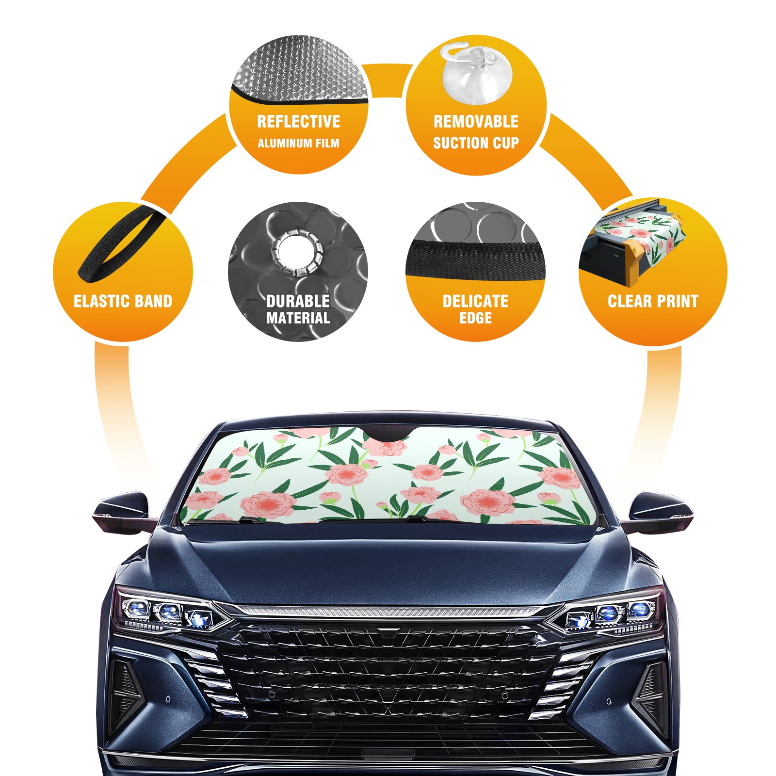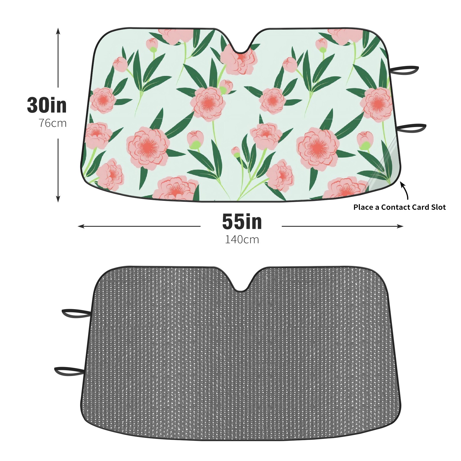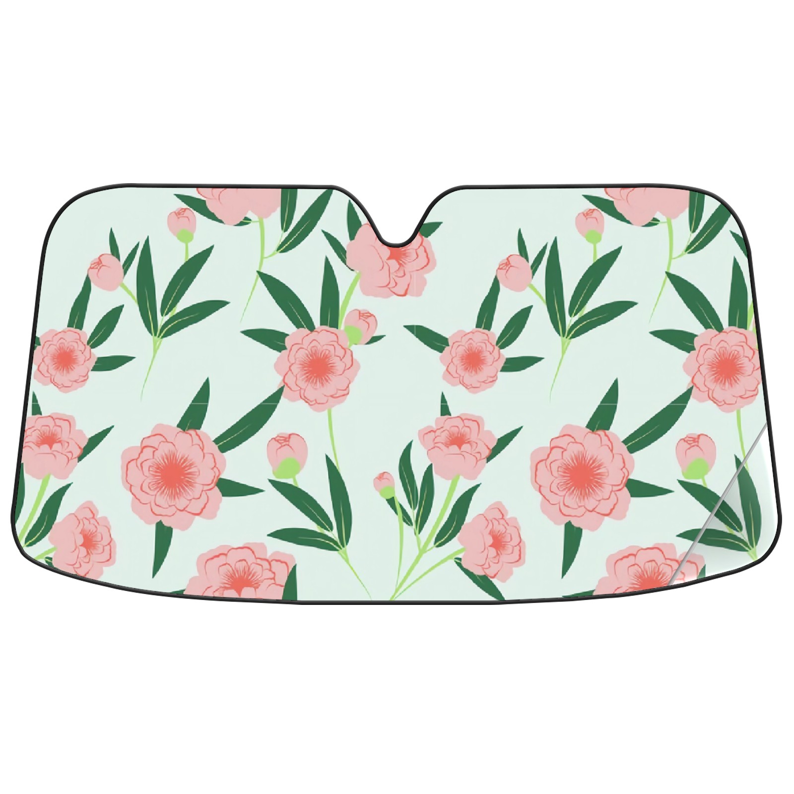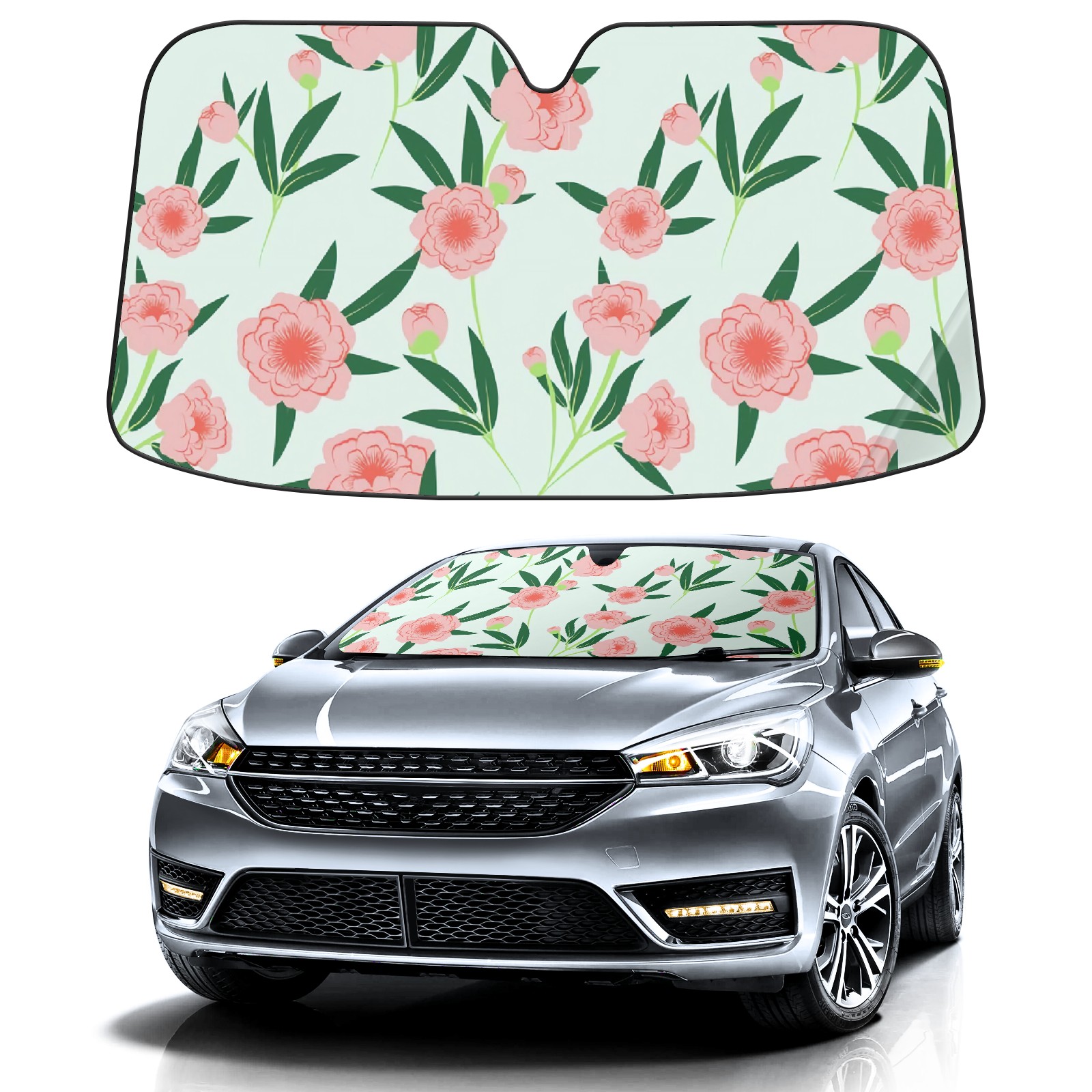 Car Windshield Sun Shade For Front Window Pale Green With Flowers Foldable Vehicle Windshield Car Sun Visor Covers Automotive Window Protector Car Camping Privacy Sun Blocker