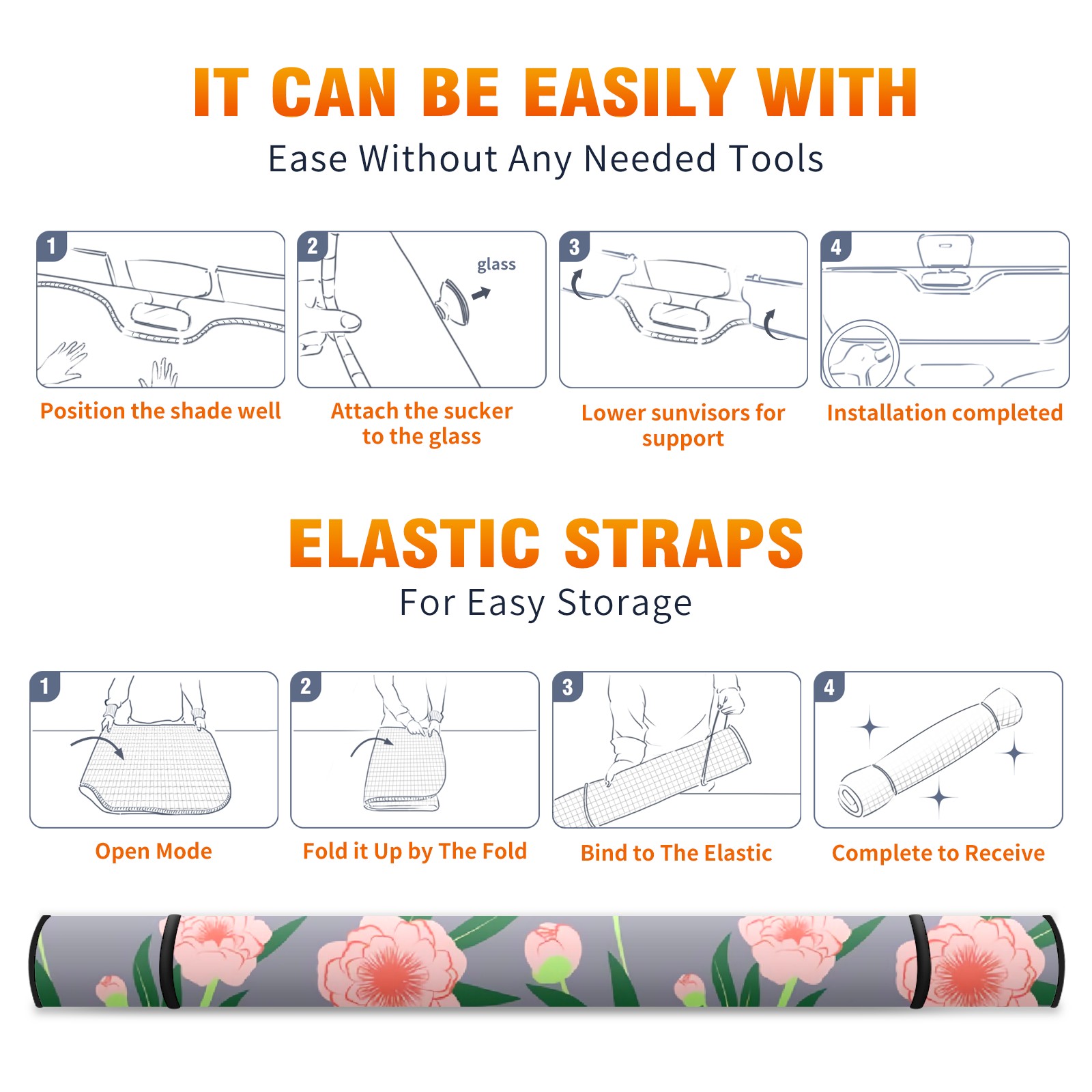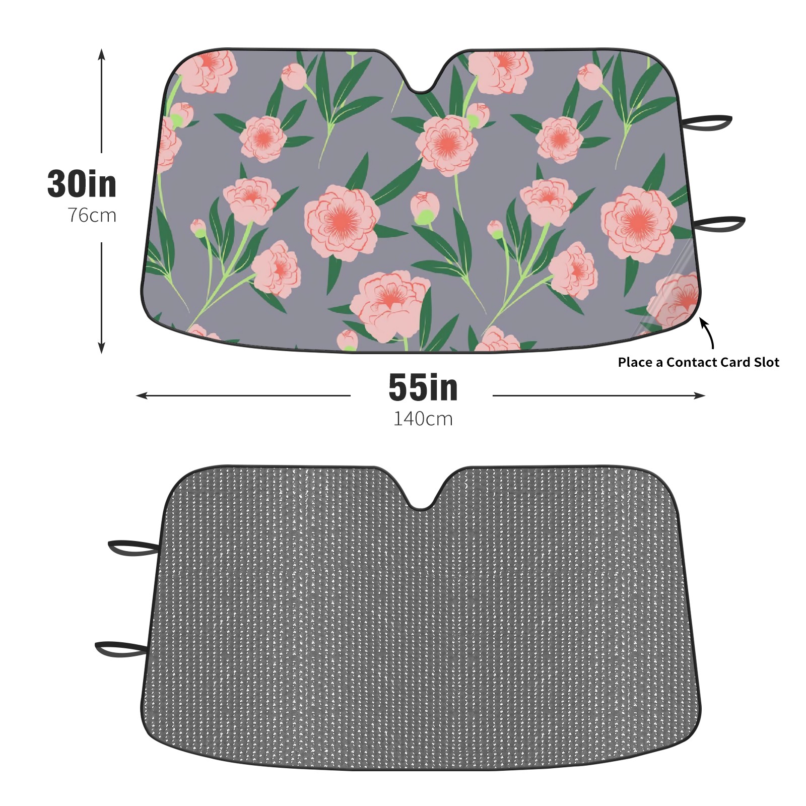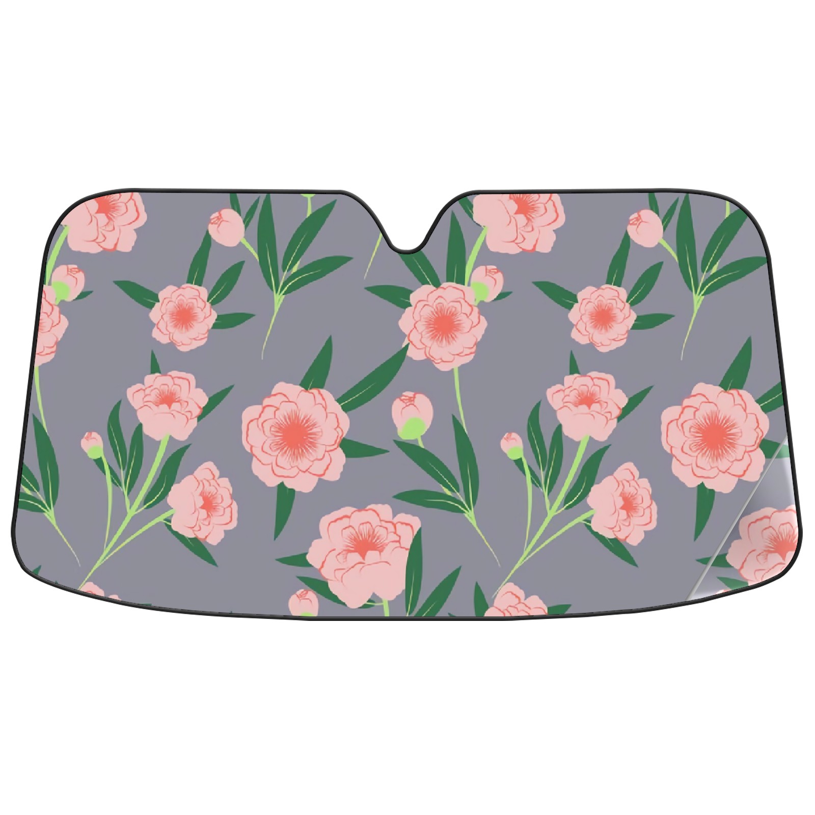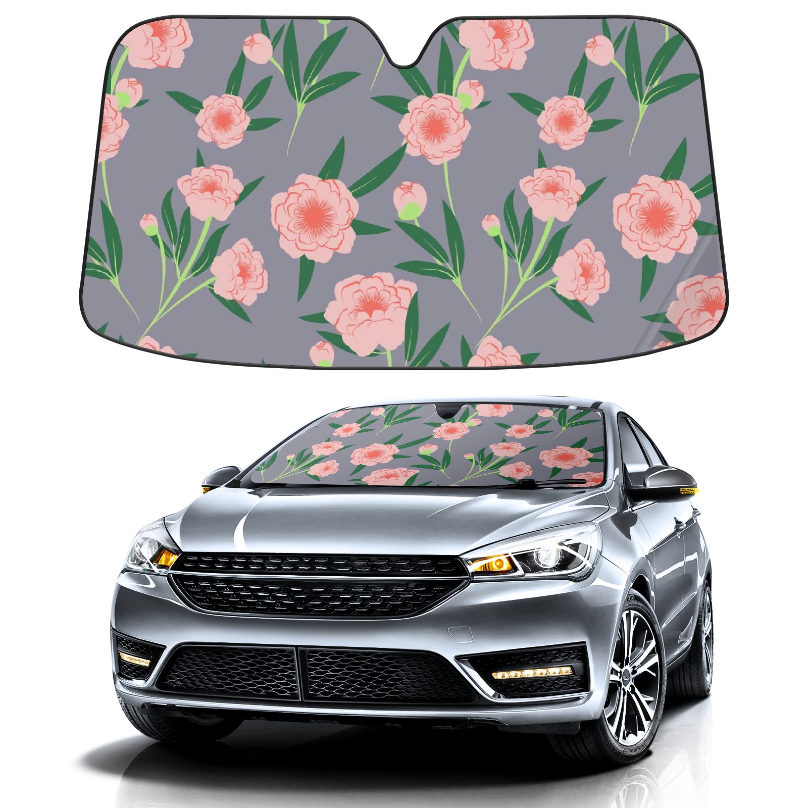 Car Windshield Sun Shade For Front Window Gray With Pink Flowers Foldable Vehicle Windshield Car Sun Visor Covers Automotive Window Protector Car Camping Privacy Sun Blocker