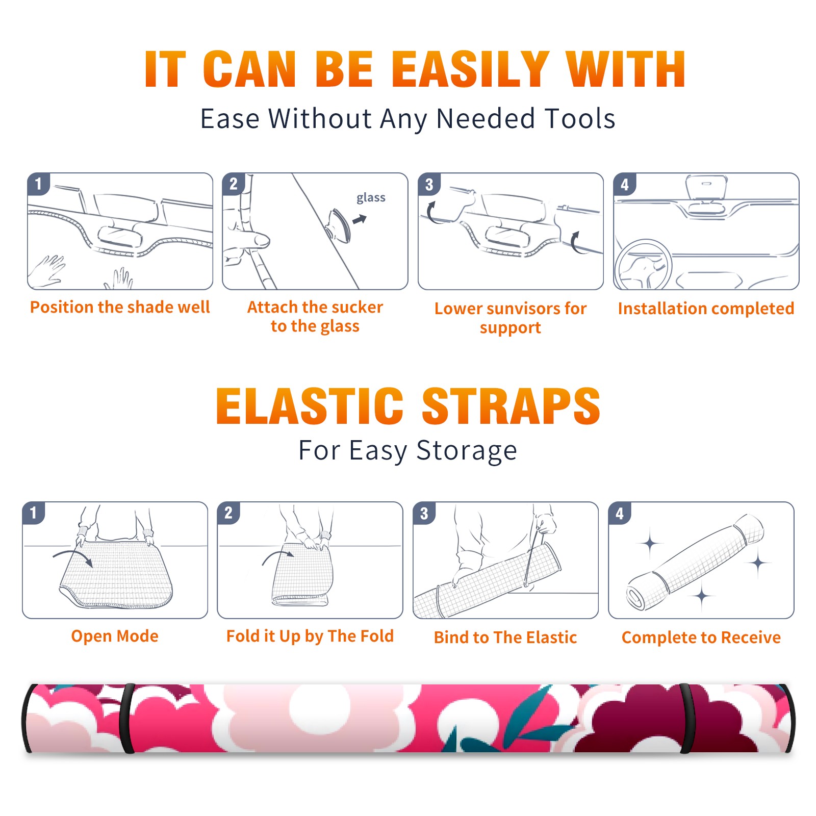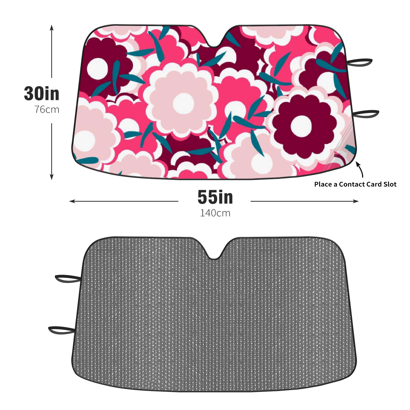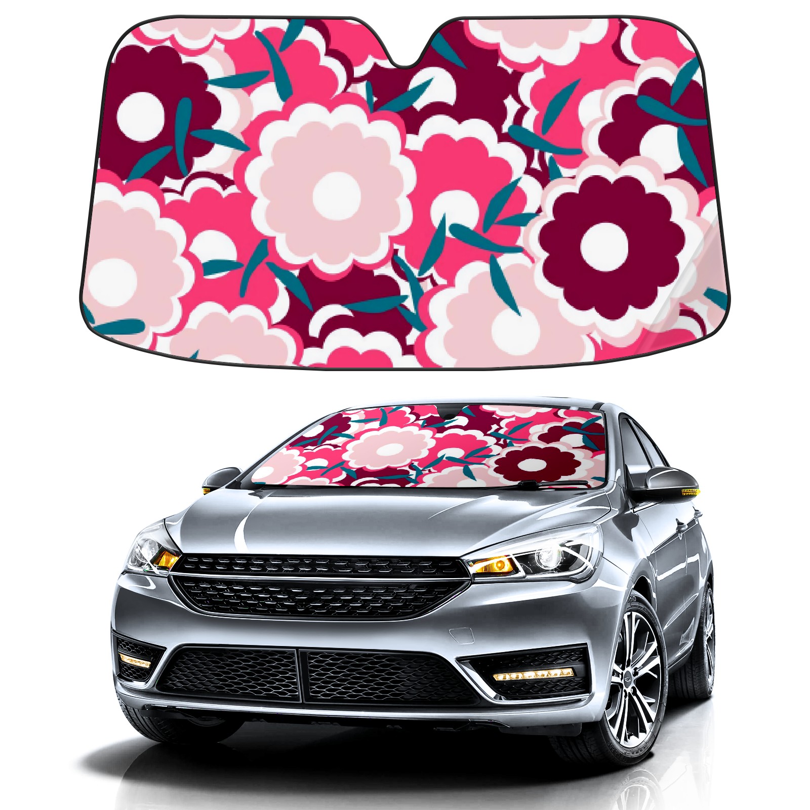 Car Windshield Sun Shade For Front Window Pink Modern Flowers Foldable Vehicle Windshield Car Sun Visor Covers Automotive Window Protector Car Camping Privacy Sun Blocker