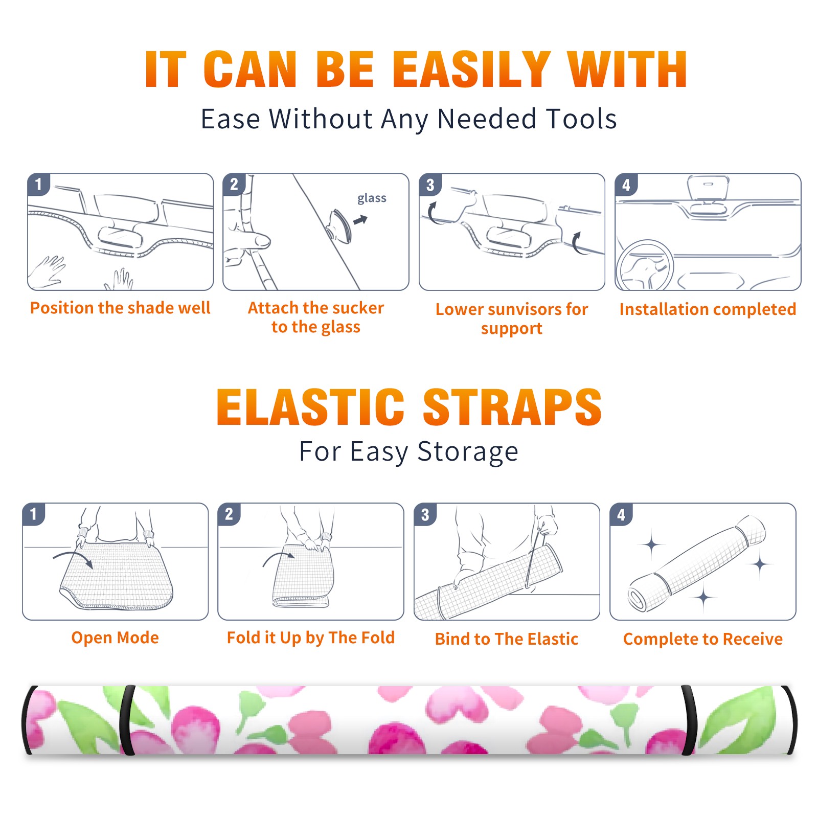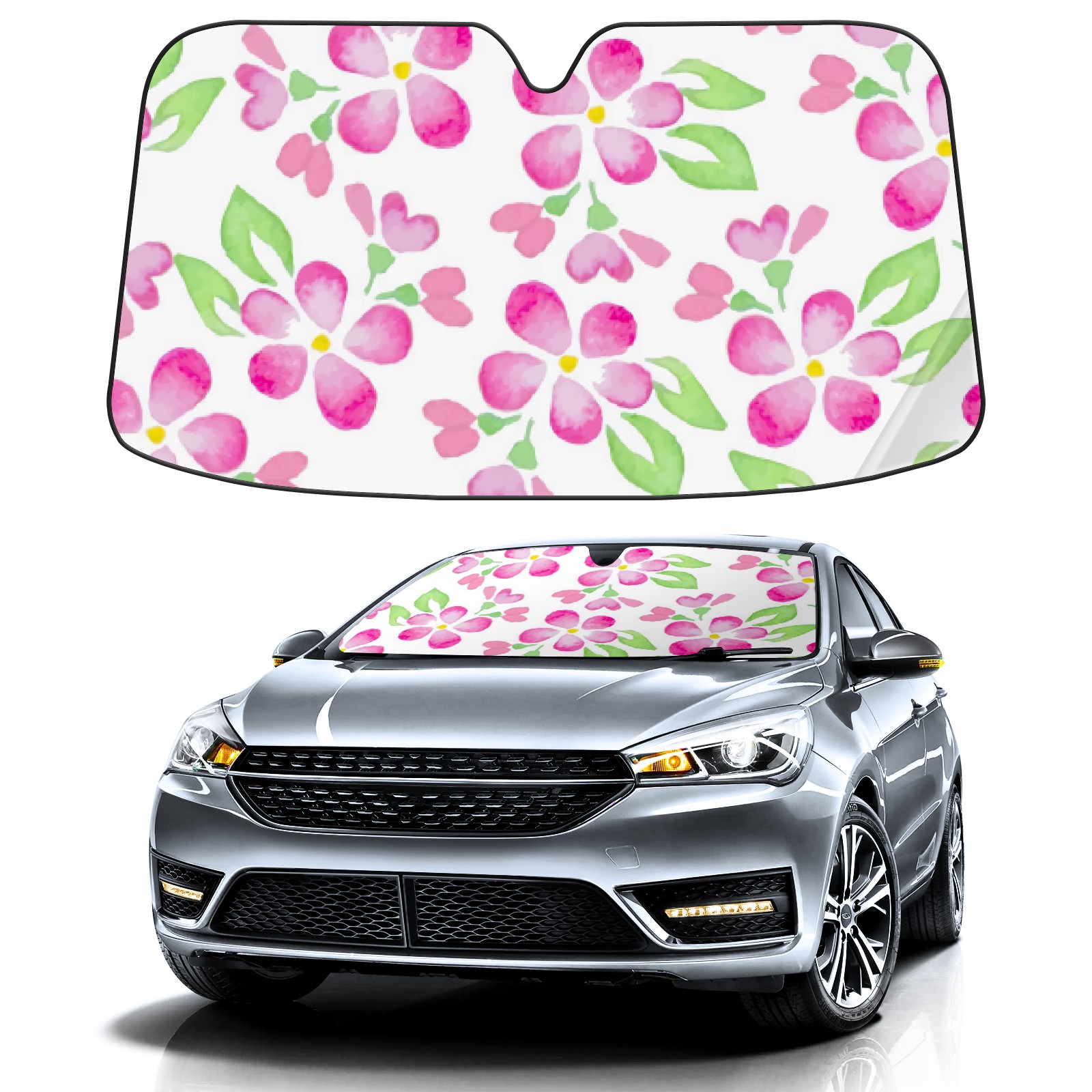 Car Windshield Sun Shade For Front Window Pink Cartoon Petals Foldable Vehicle Windshield Car Sun Visor Covers Automotive Window Protector Car Camping Privacy Sun Blocker