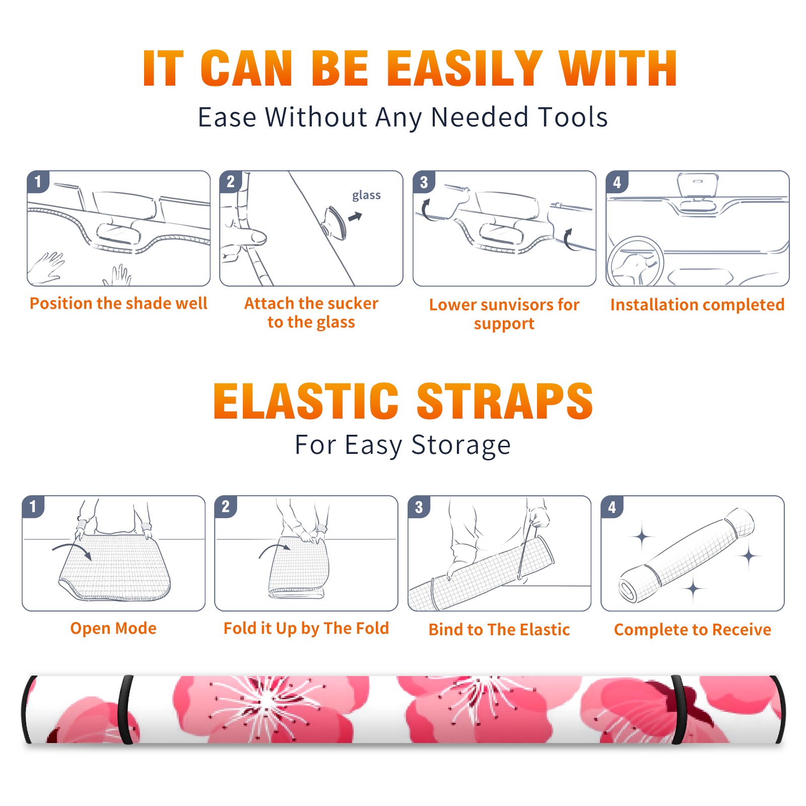 Car Windshield Sun Shade For Front Window Pink Peach Blossom Foldable Vehicle Windshield Car Sun Visor Covers Automotive Window Protector Car Camping Privacy Sun Blocker