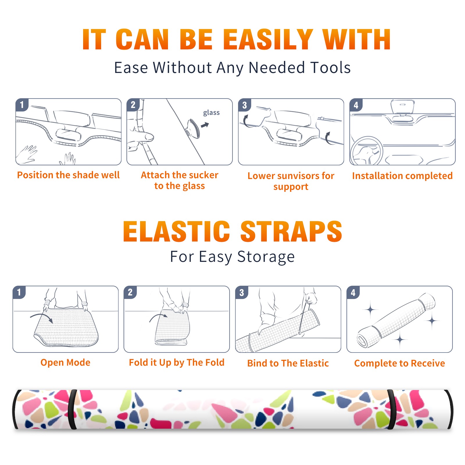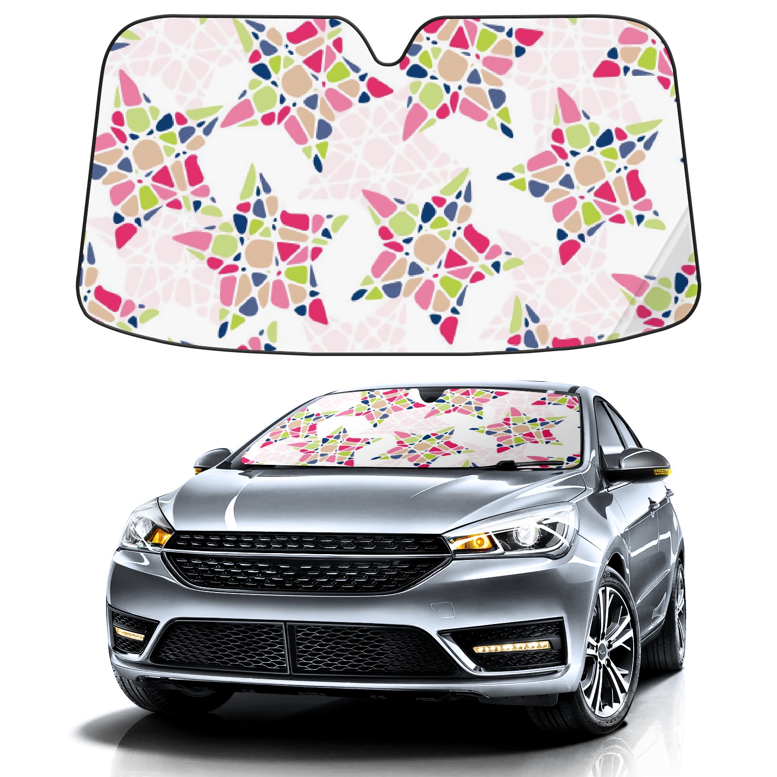 Car Windshield Sun Shade For Front Window Colorful Stars Puzzle Foldable Vehicle Windshield Car Sun Visor Covers Automotive Window Protector Car Camping Privacy Sun Blocker