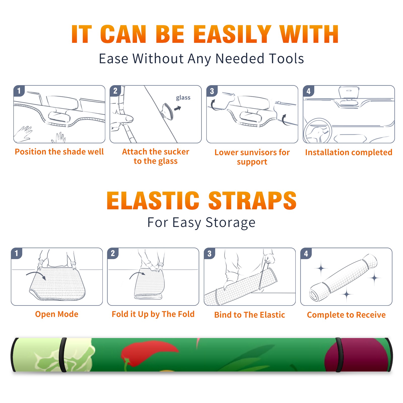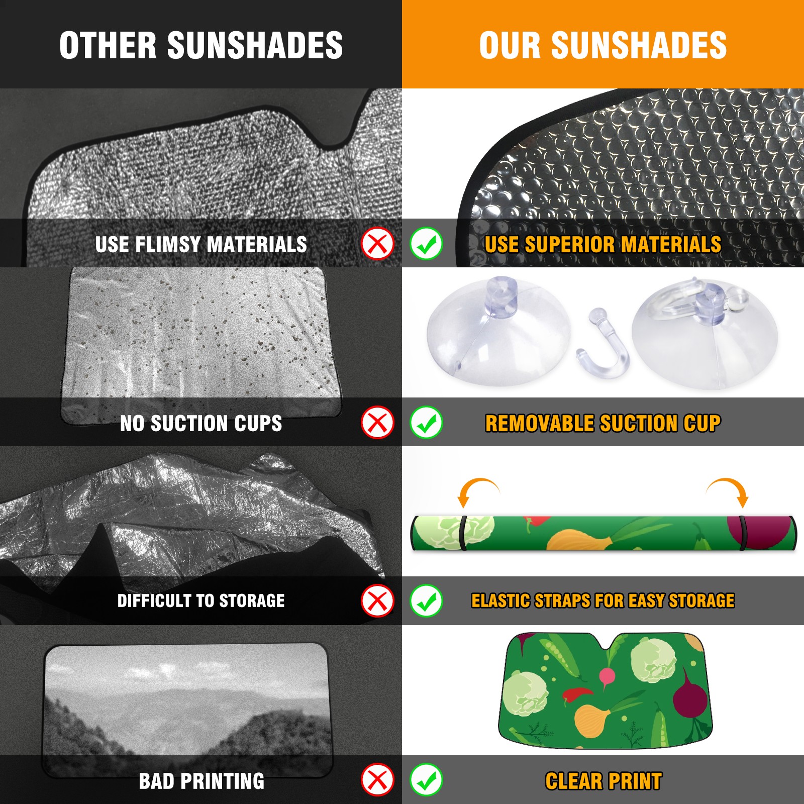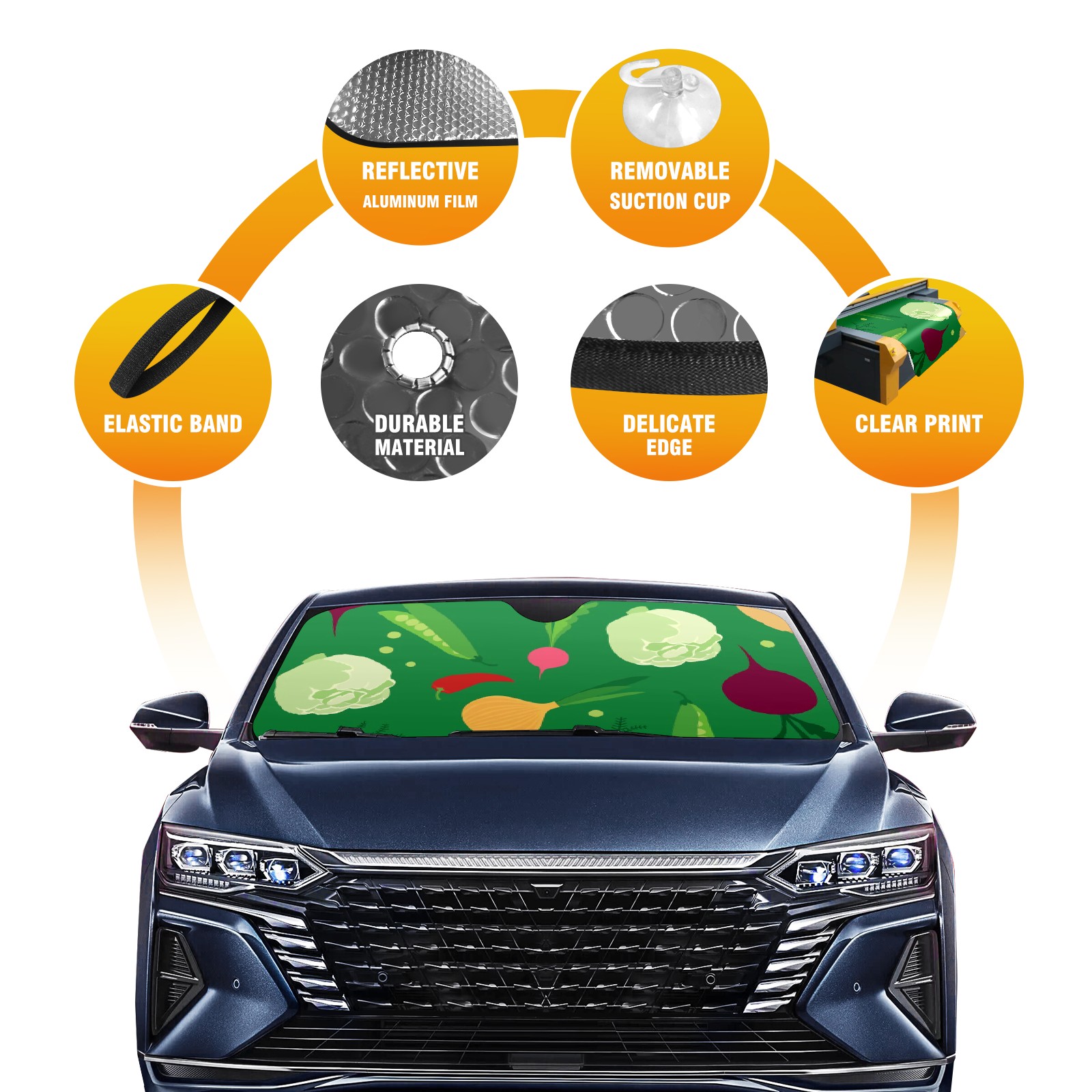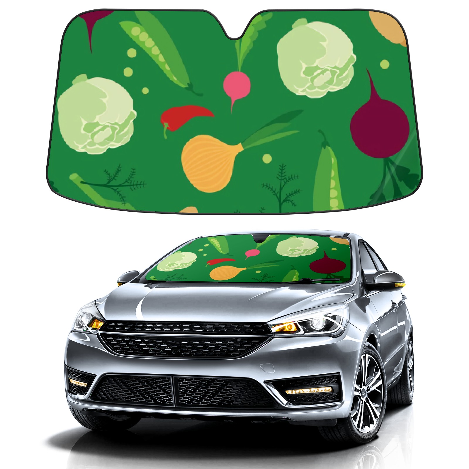 Car Windshield Sun Shade For Front Window Fruit And Vegetables In Green Foldable Vehicle Windshield Car Sun Visor Covers Automotive Window Protector Car Camping Privacy Sun Blocker
