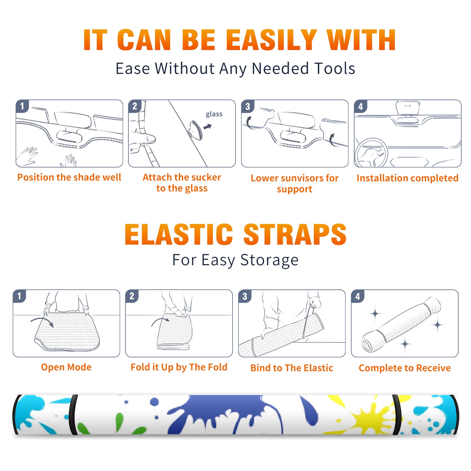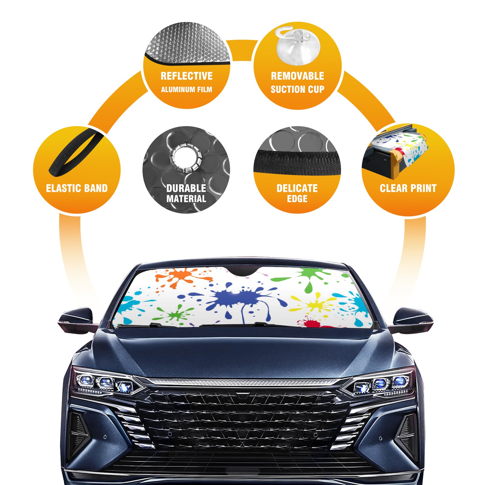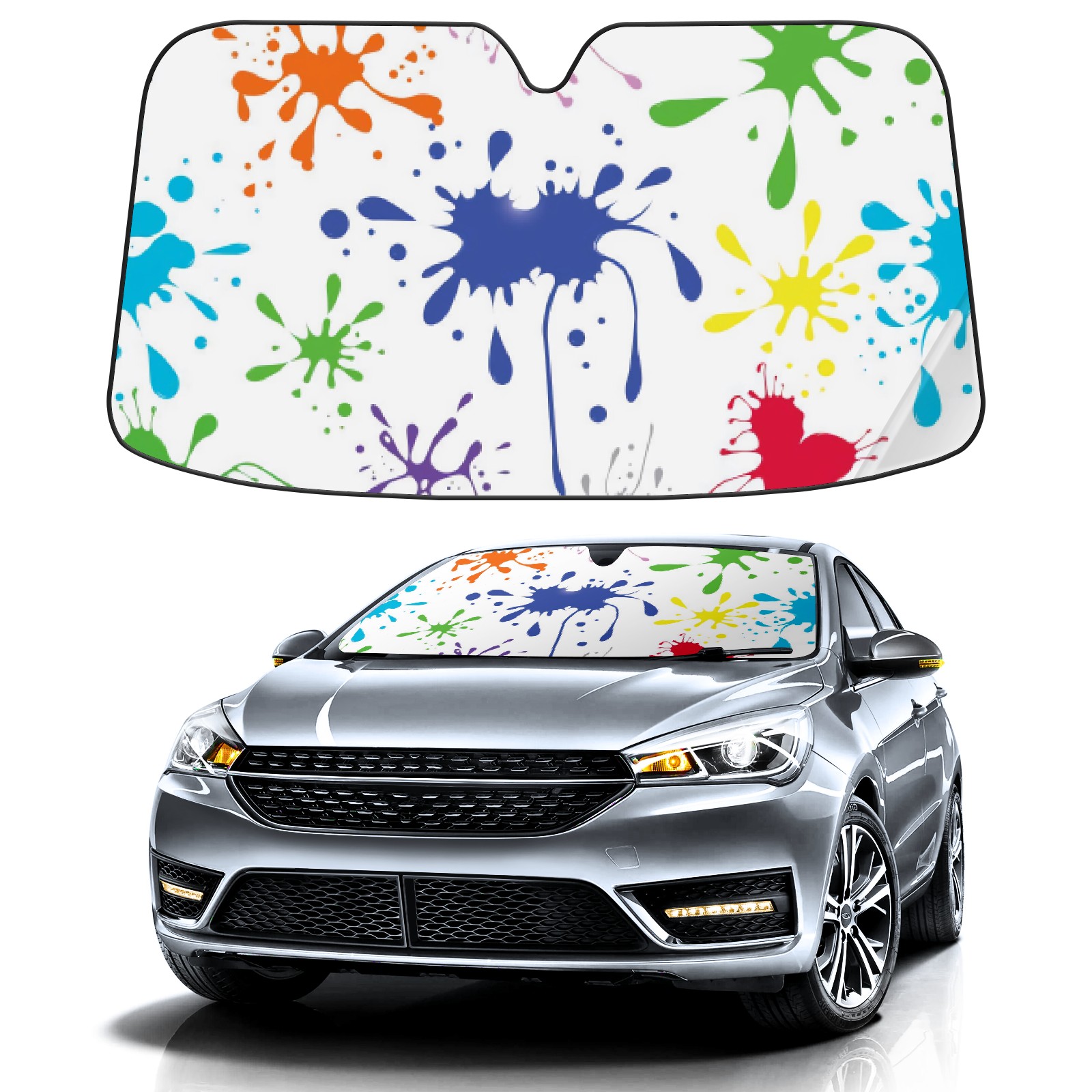 Car Windshield Sun Shade For Front Window Color Inkjet Foldable Vehicle Windshield Car Sun Visor Covers Automotive Window Protector Car Camping Privacy Sun Blocker