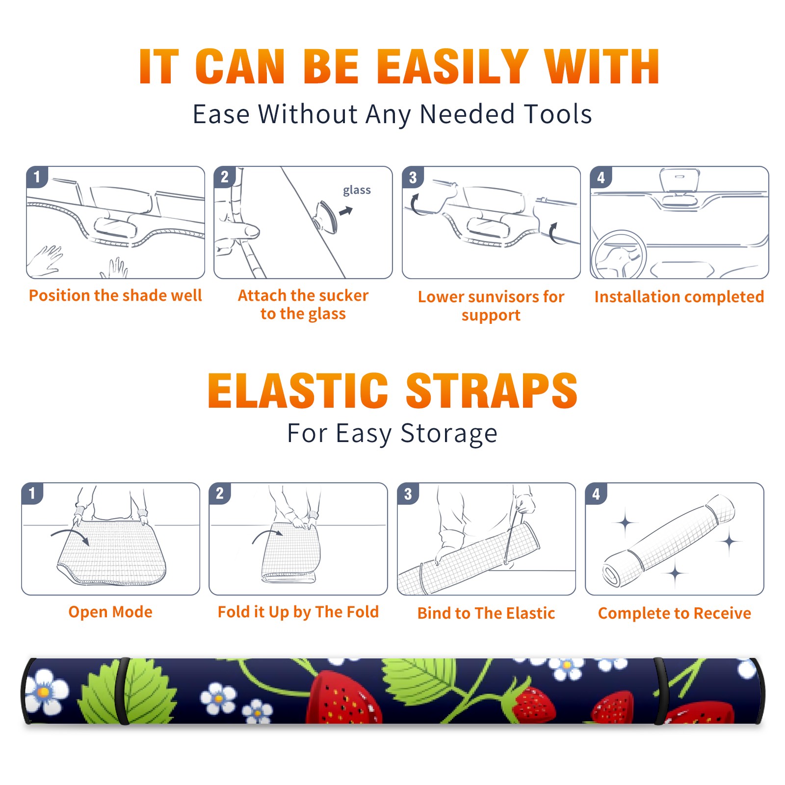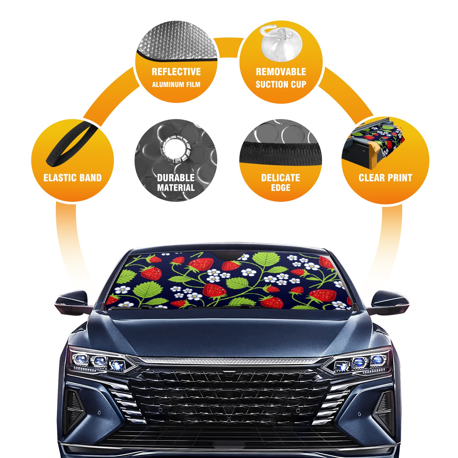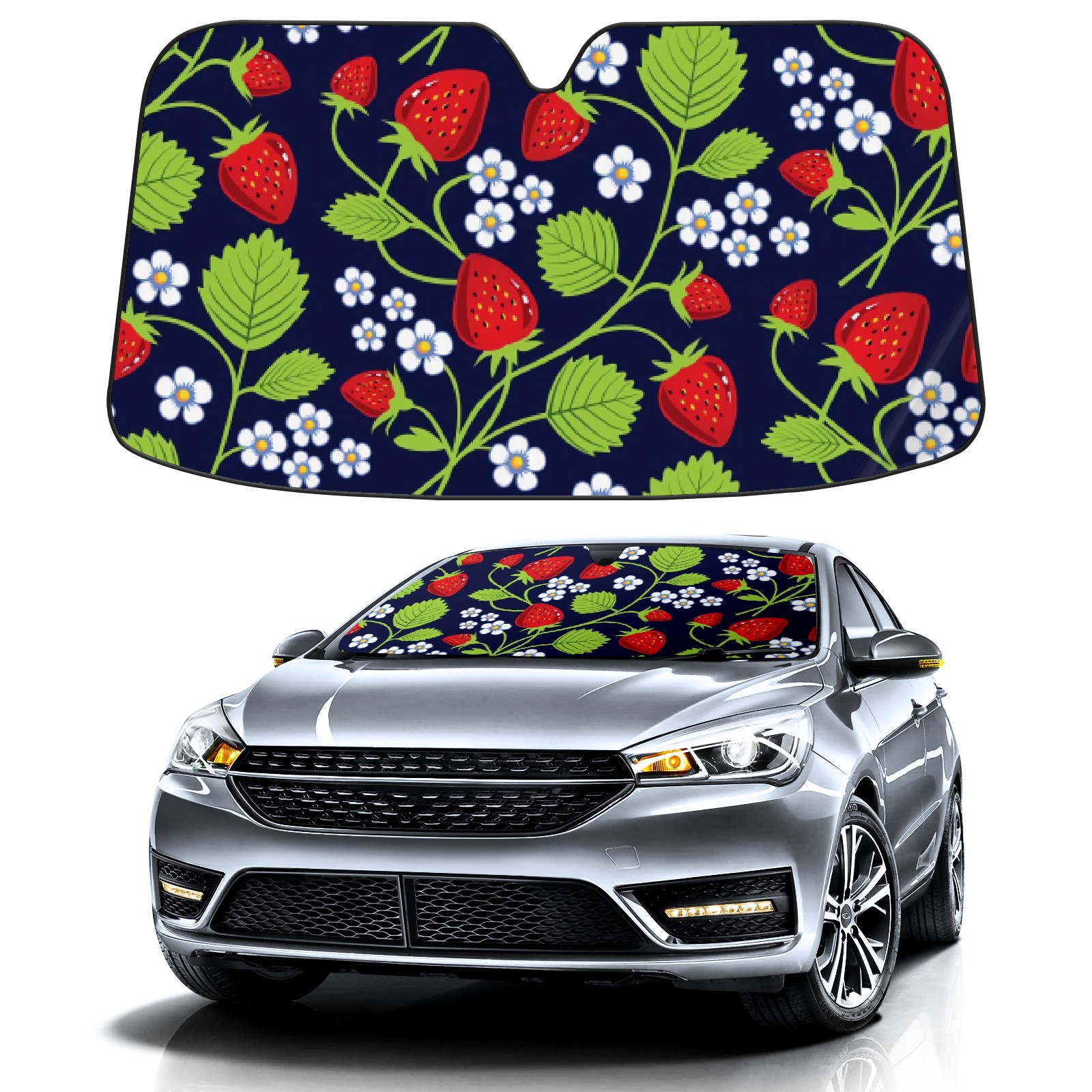 Car Windshield Sun Shade For Front Window Dark Bottom Strawberry Foldable Vehicle Windshield Car Sun Visor Covers Automotive Window Protector Car Camping Privacy Sun Blocker