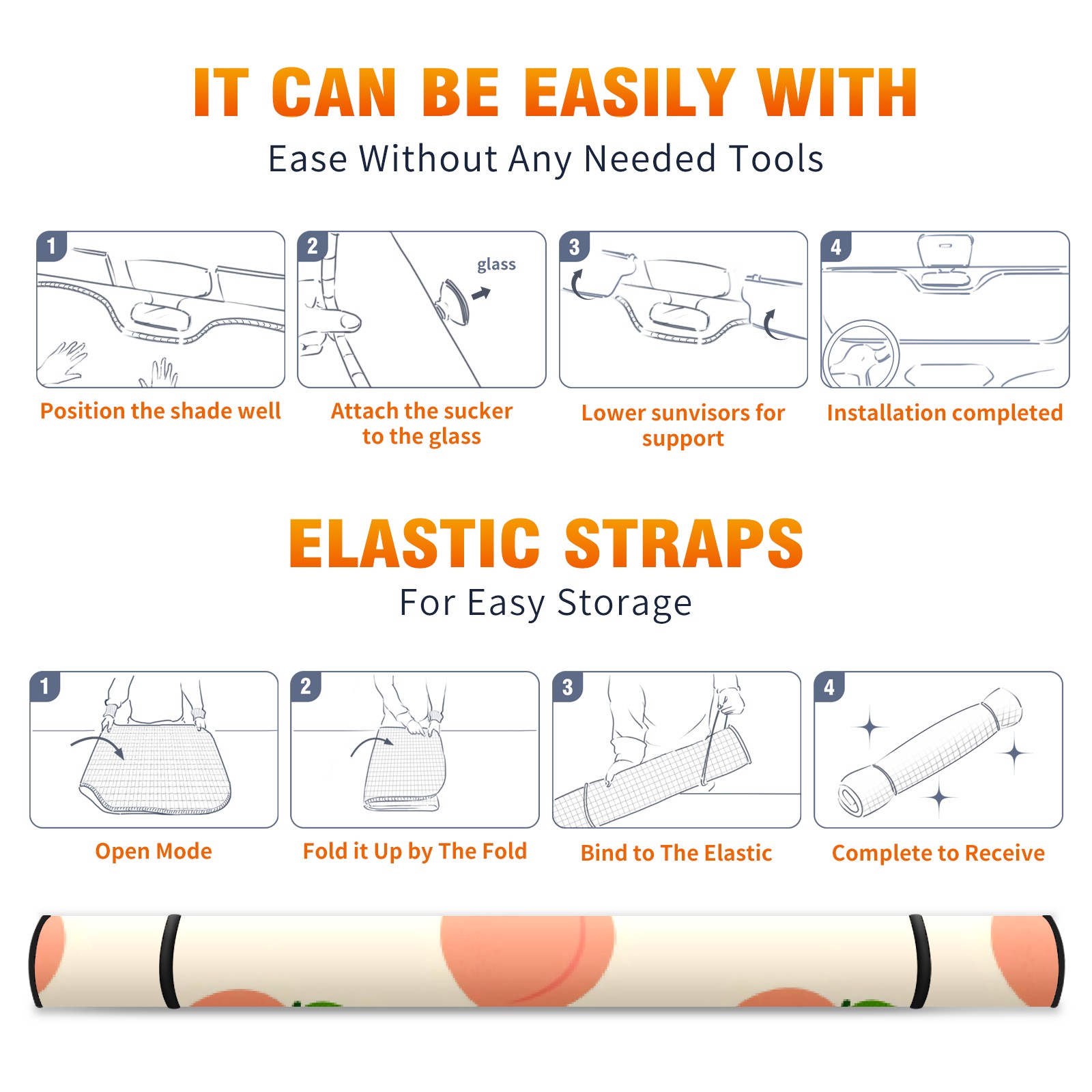 Car Windshield Sun Shade For Front Window Pink Peach Foldable Vehicle Windshield Car Sun Visor Covers Automotive Window Protector Car Camping Privacy Sun Blocker