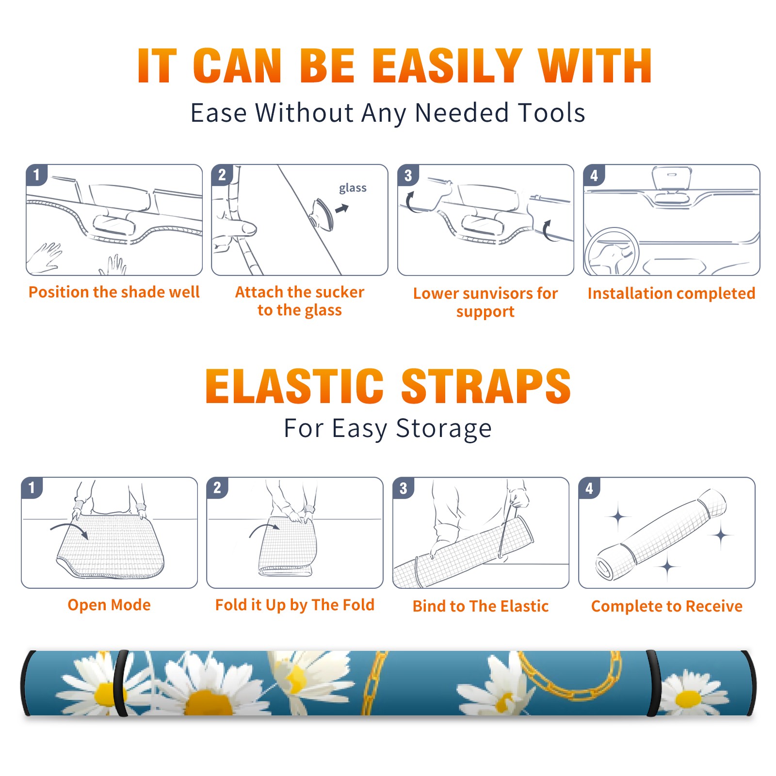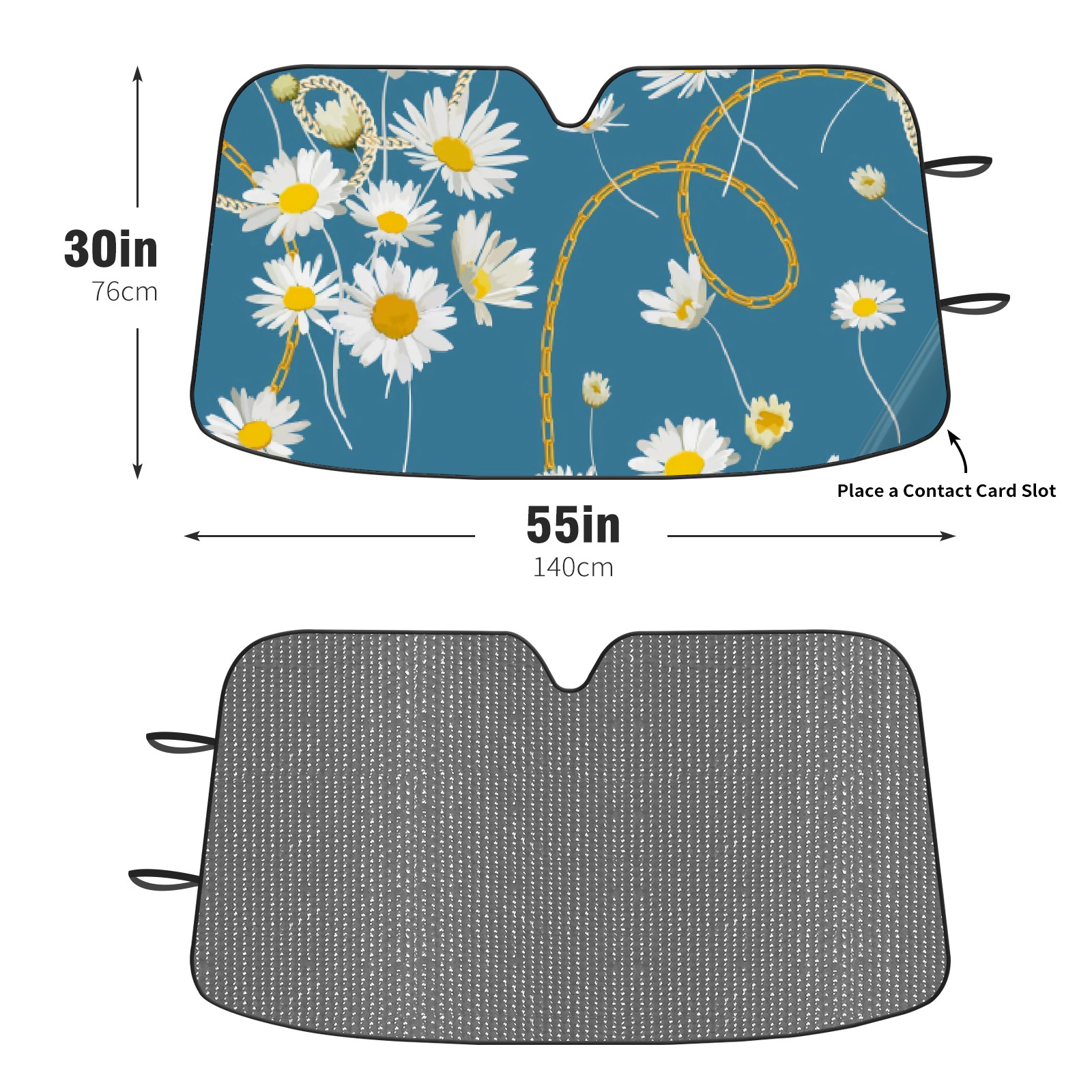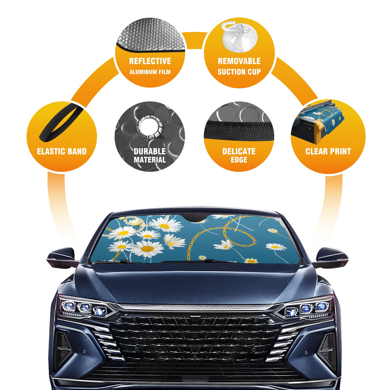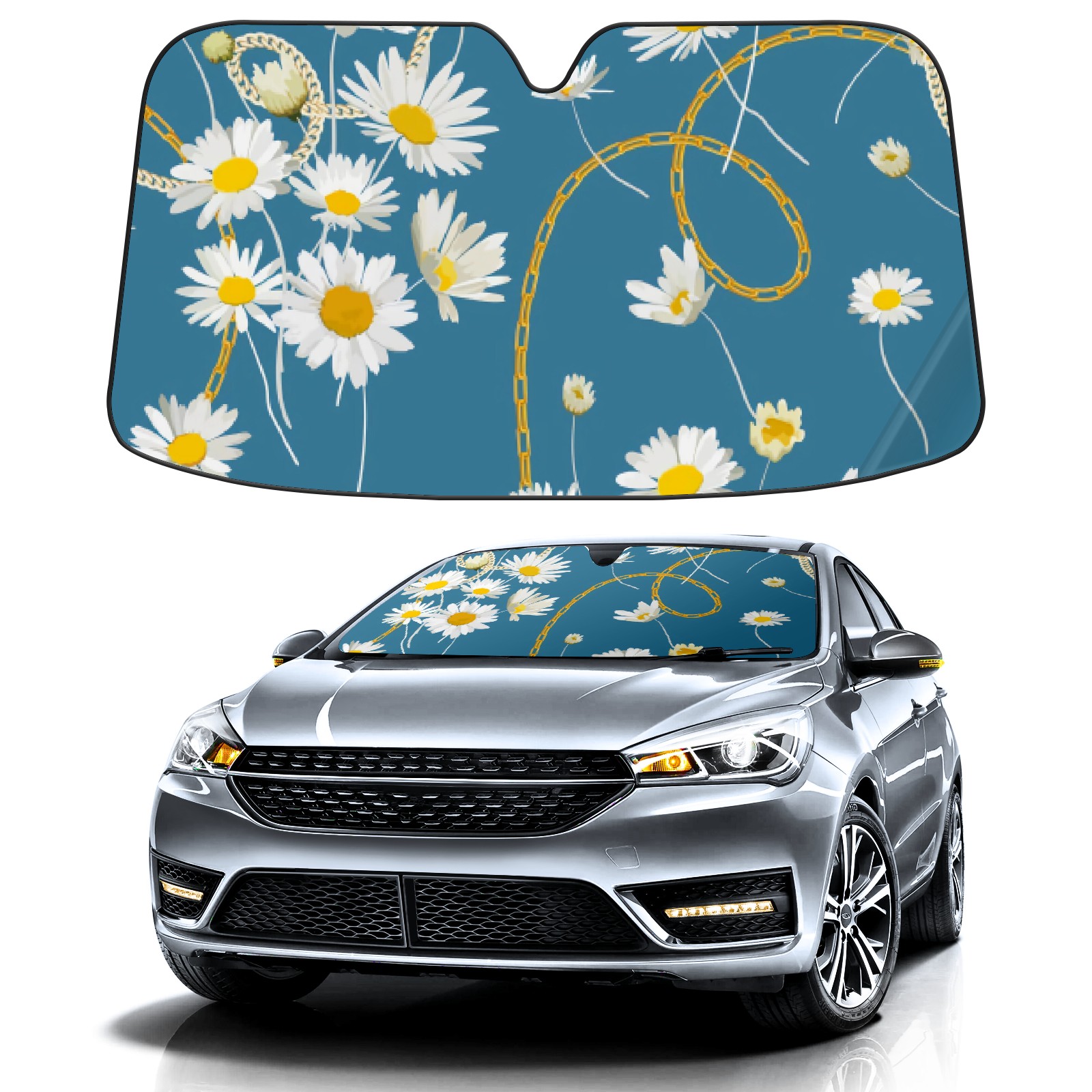 Car Windshield Sun Shade For Front Window Metal Chain White Daisy Foldable Vehicle Windshield Car Sun Visor Covers Automotive Window Protector Car Camping Privacy Sun Blocker