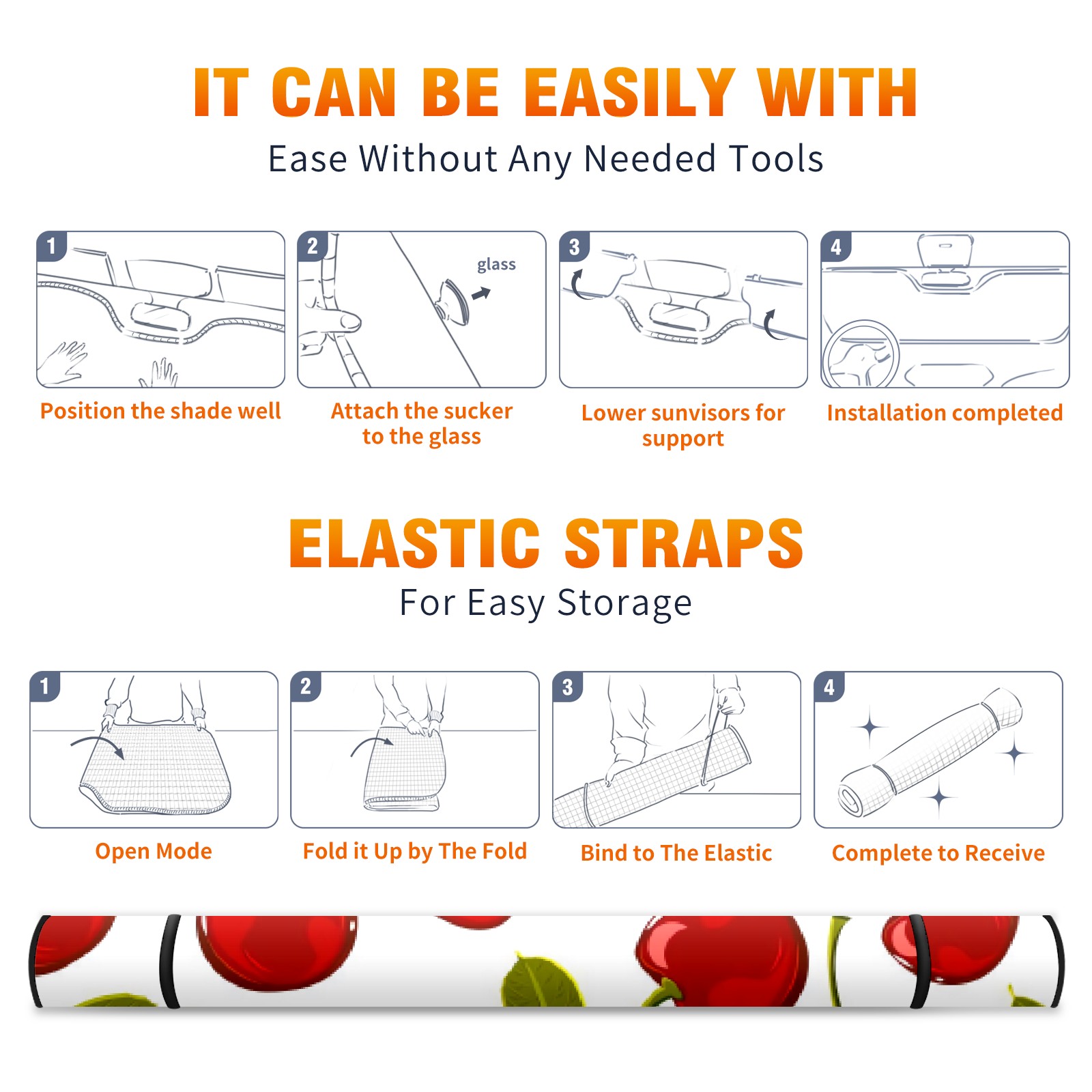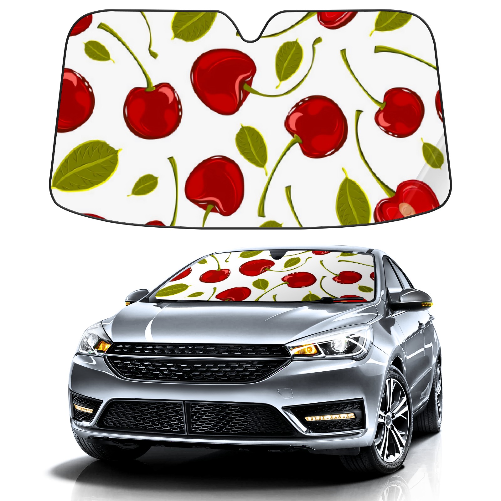 Car Windshield Sun Shade For Front Window Red Cherry Foldable Vehicle Windshield Car Sun Visor Covers Automotive Window Protector Car Camping Privacy Sun Blocker