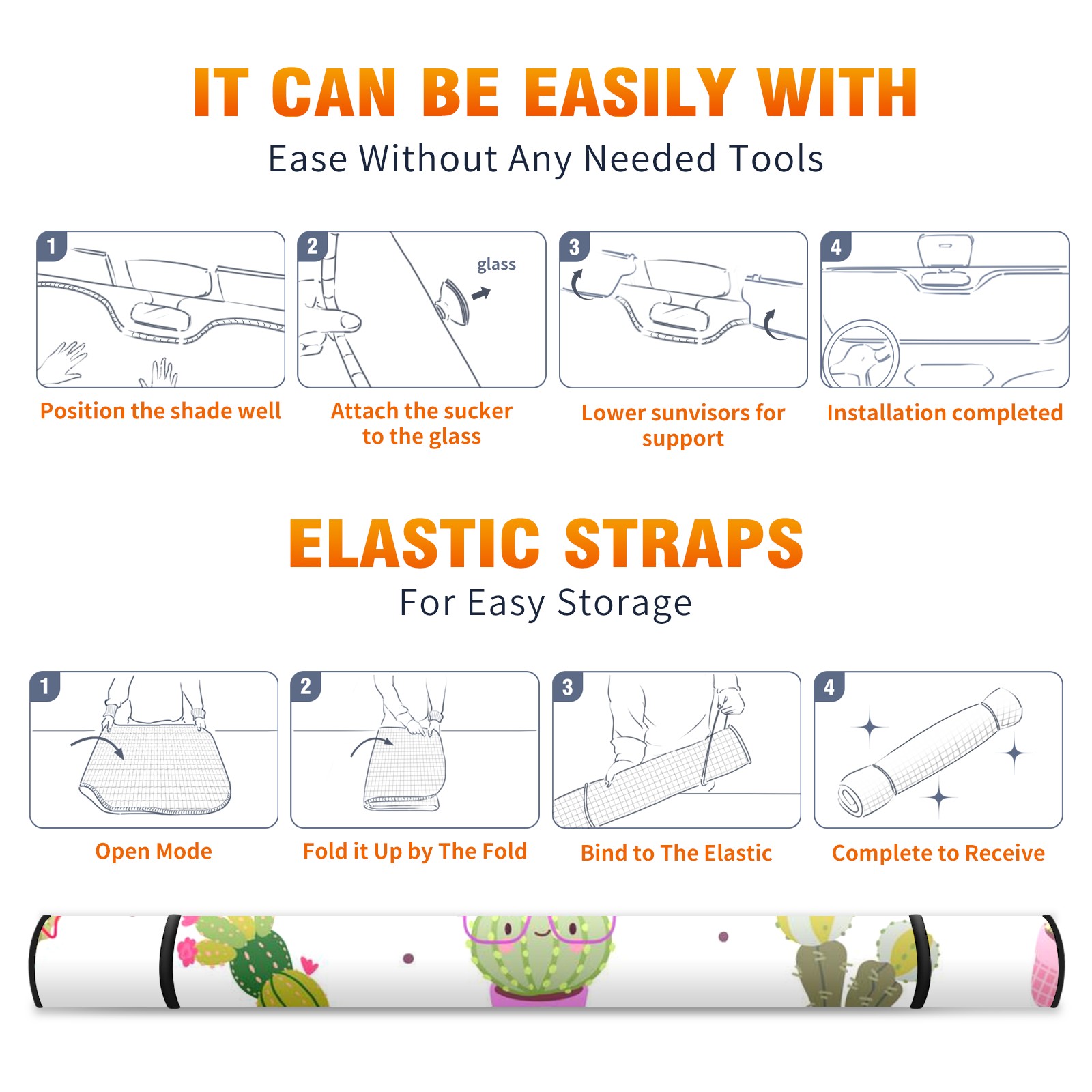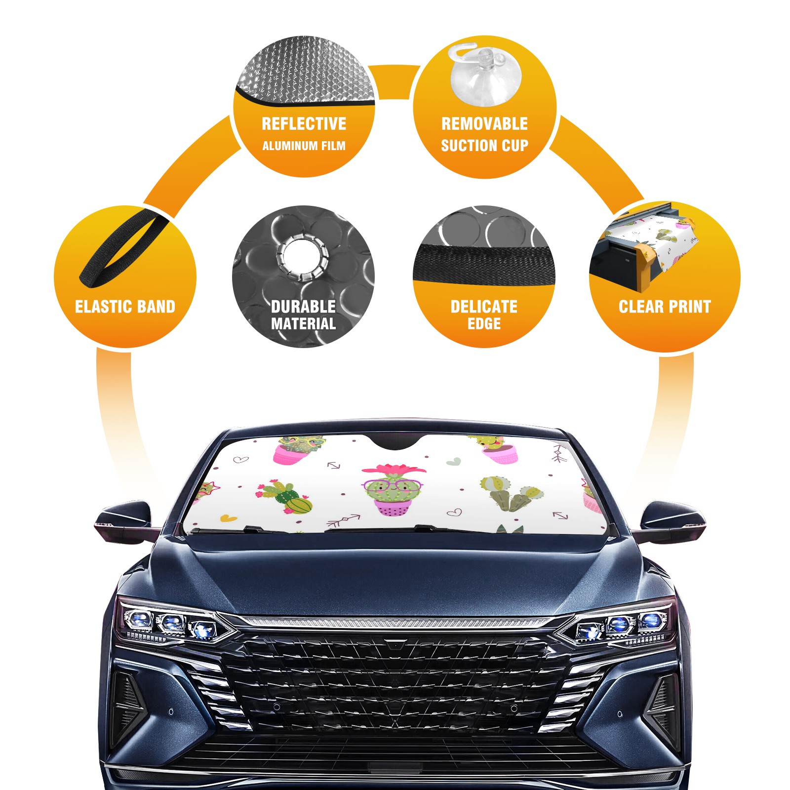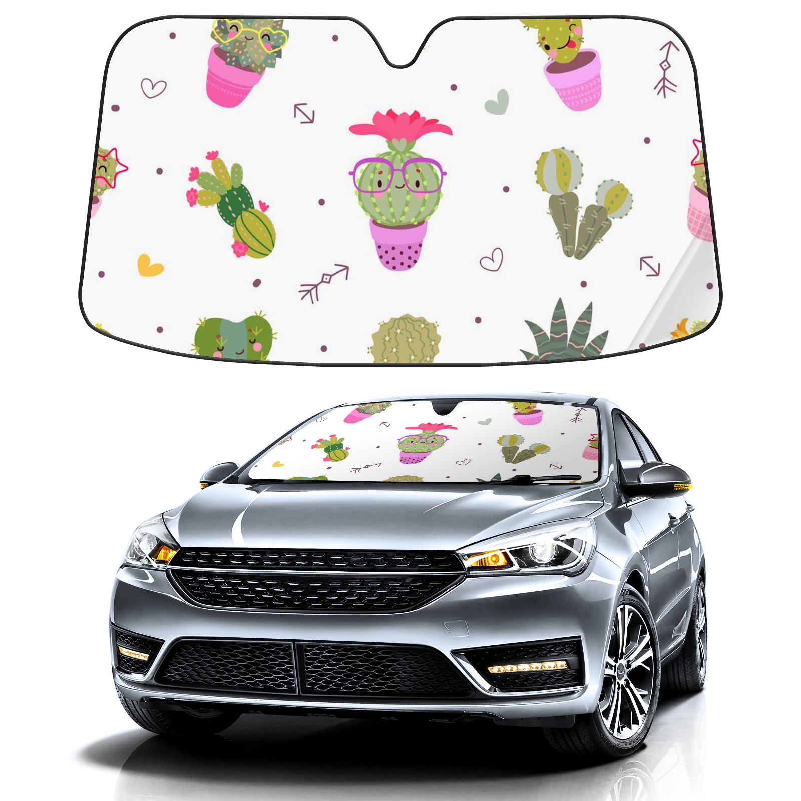 Car Windshield Sun Shade For Front Window Cartoon Succulent Foldable Vehicle Windshield Car Sun Visor Covers Automotive Window Protector Car Camping Privacy Sun Blocker