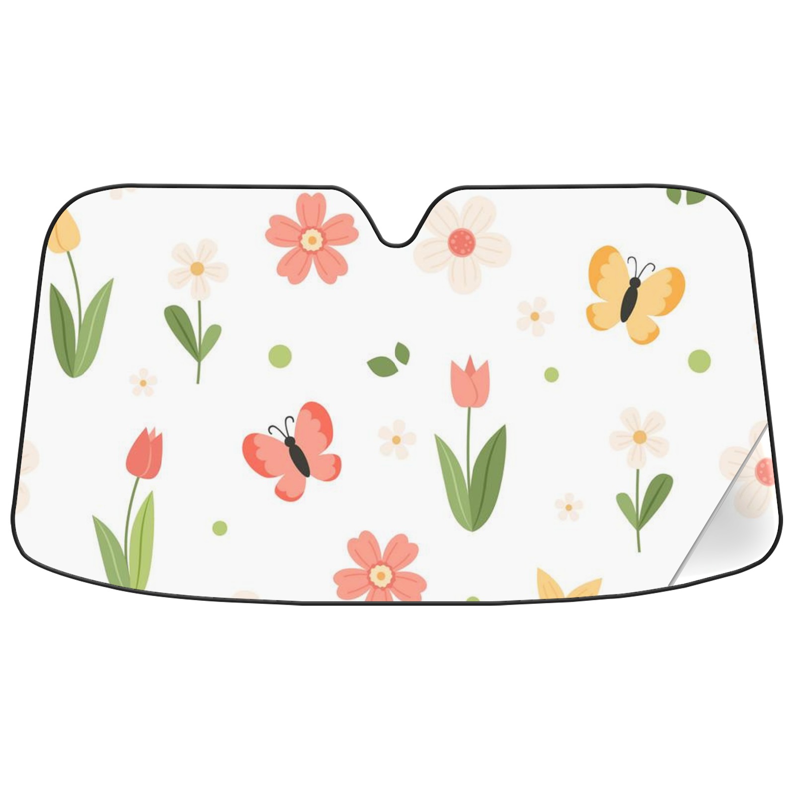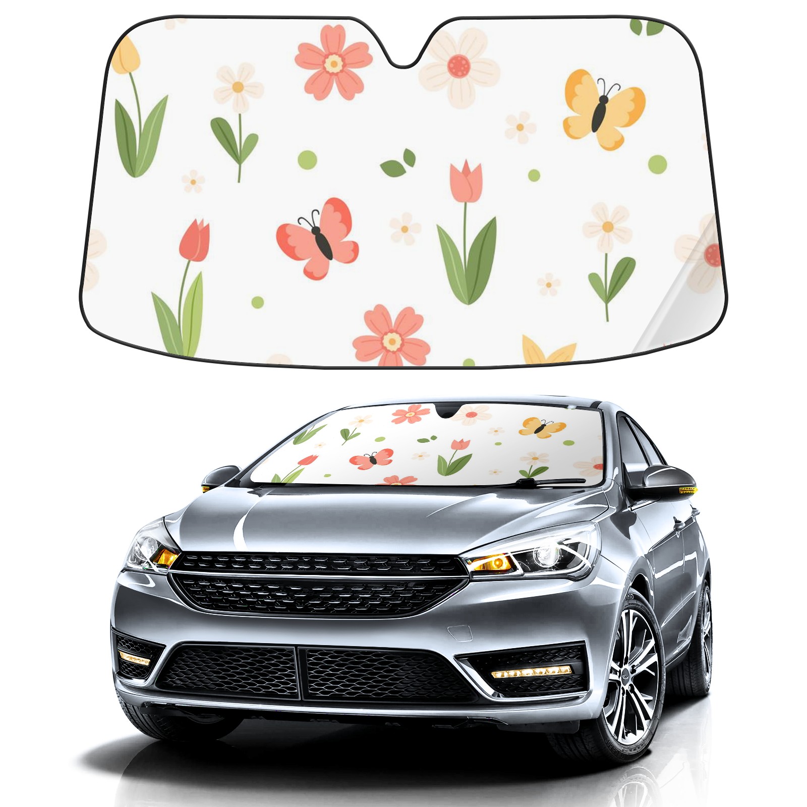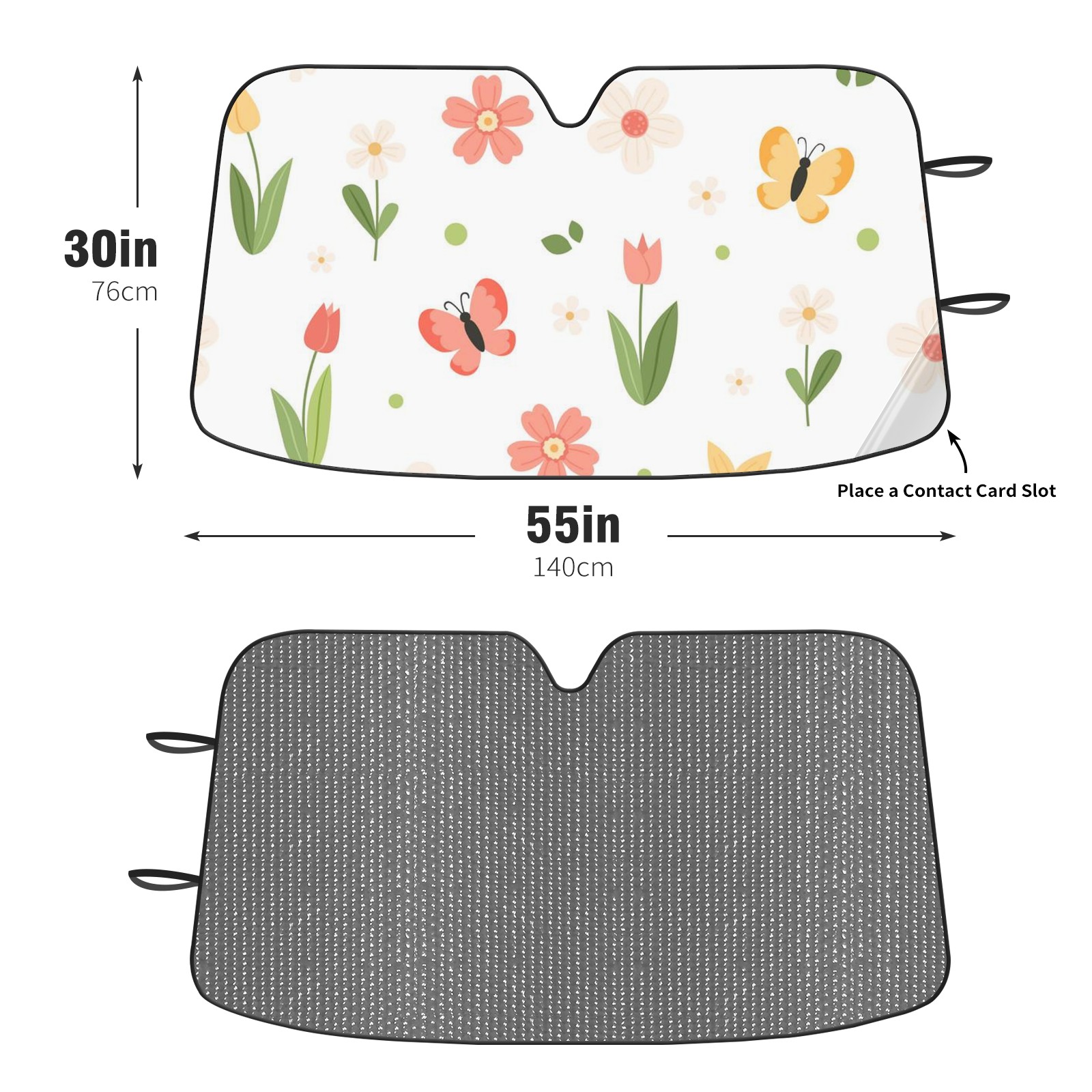 Car Windshield Sun Shade For Front Window Pink Flower Butterfly Foldable Vehicle Windshield Car Sun Visor Covers Automotive Window Protector Car Camping Privacy Sun Blocker