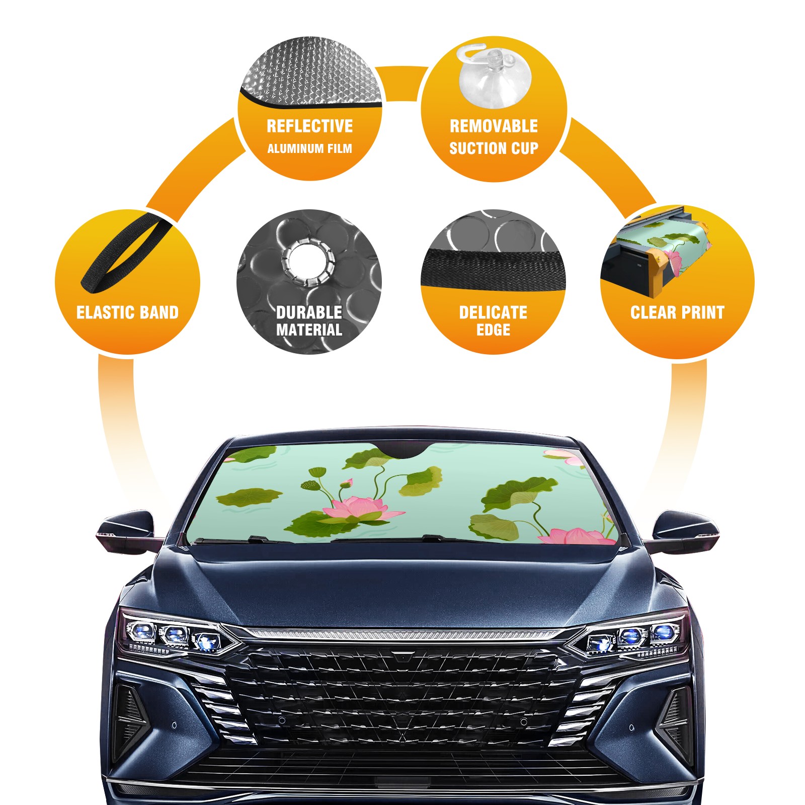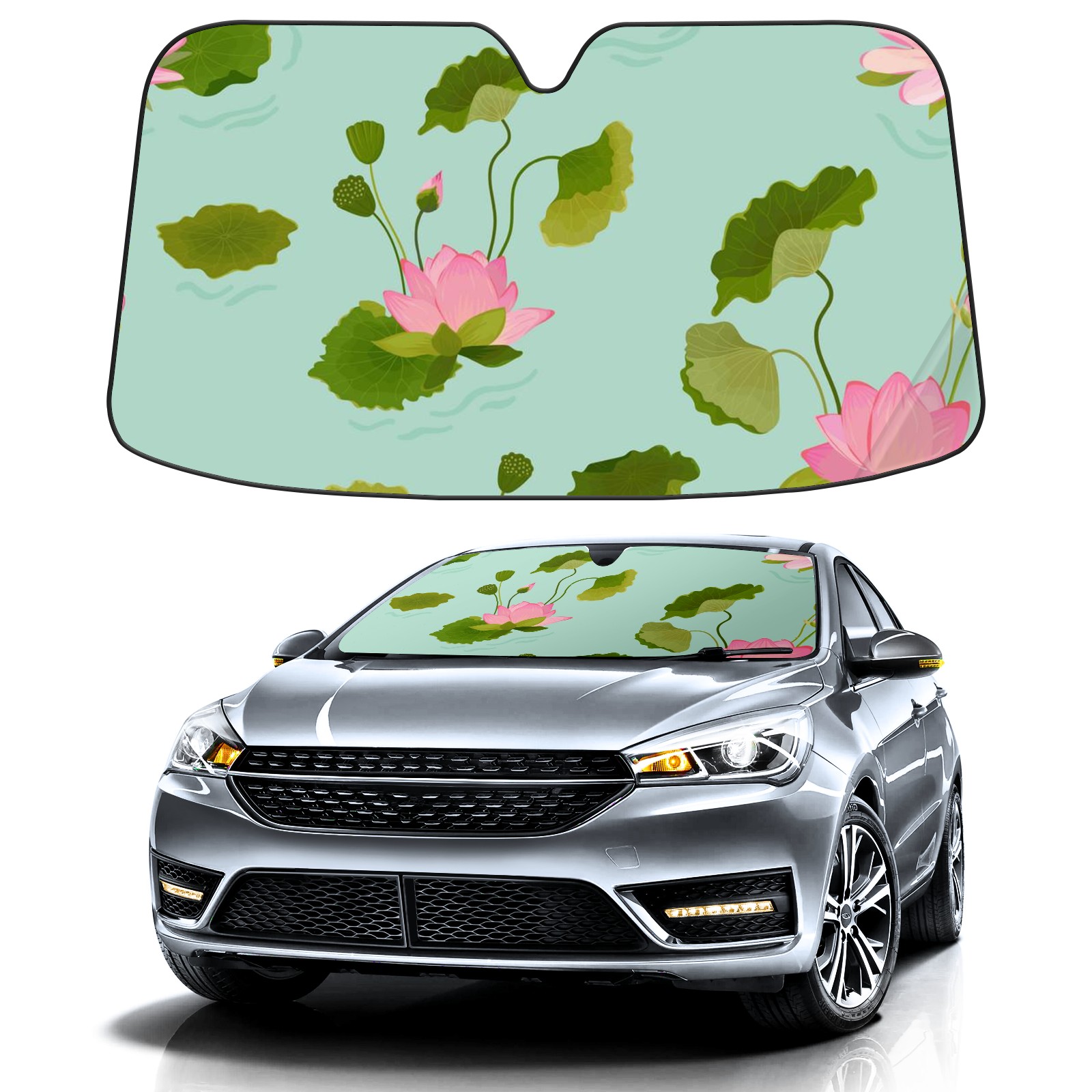 Car Windshield Sun Shade For Front Window Pink Lotus Foldable Vehicle Windshield Car Sun Visor Covers Automotive Window Protector Car Camping Privacy Sun Blocker