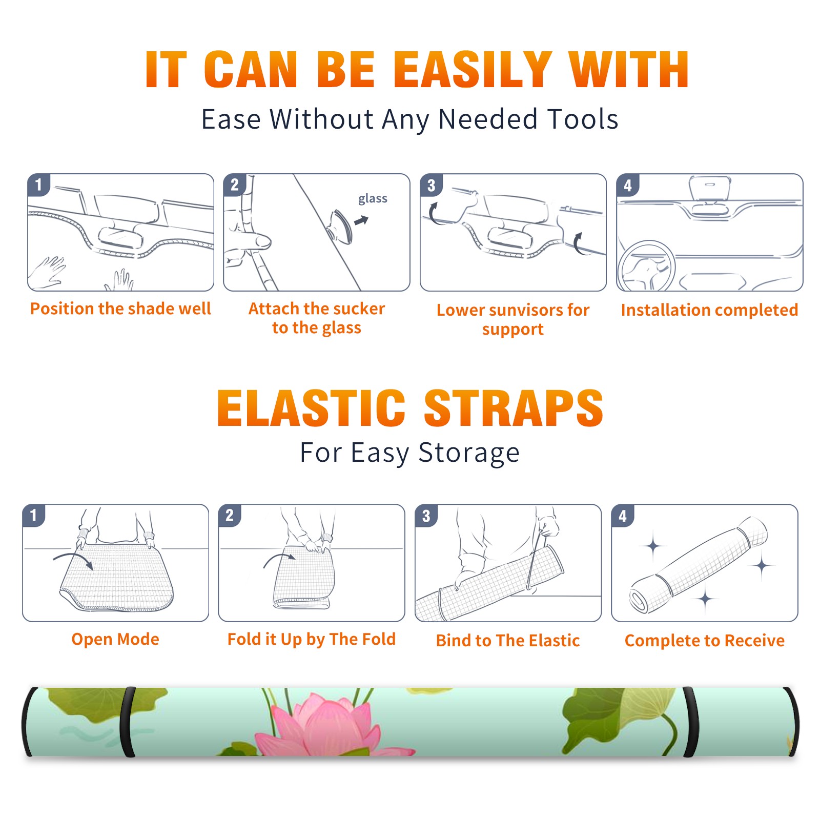 • Diameter /Size 63"L x 33.5"W Made from excellent materials which makes it sturdy and protects the car from the sun. Easy to use and pack. Makes the interior of the car cooler.You can easily stash the sunshade in the storage bag or store long term.It open and closes easy. Also the leather storage bag is durable and easy to put the umbrella back into.This windshield sunshade provides complete coverage and keeps your car interior cool under direct sun. It is easy to open and position under the windshield and around the rear-view mirror. Makes Your Car Easy To Identify, Perfect For Finding Your Car In Crowded Parking Lots And Garages.Great Choice: It Is A Great Gift For Dad, Boyfriend, Brother, Brother And Uncle, Friends, Classmates, Family And So On. Notice: Due To Difference Computer Monitors, The Color Maybe Slightly Different From Picture. As Different Measurement Methods, Measurement Data Will Float Within 2%.I Hope You Understand. If You Have Any Question About The Item Please Do Not Hesitate To Contact Us Immediately And We Will Give You A Satisfactory Reply Within 24 Hours.