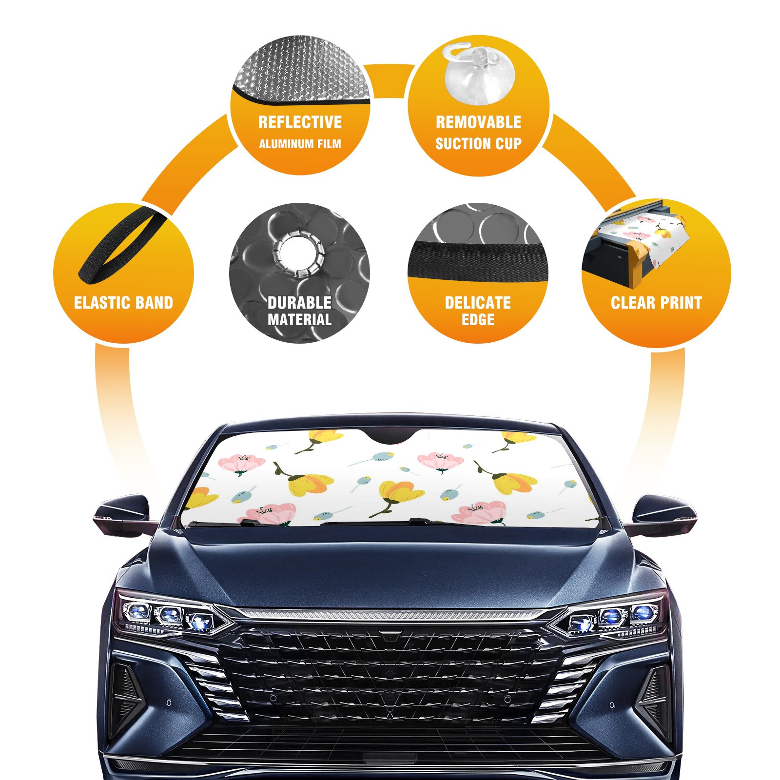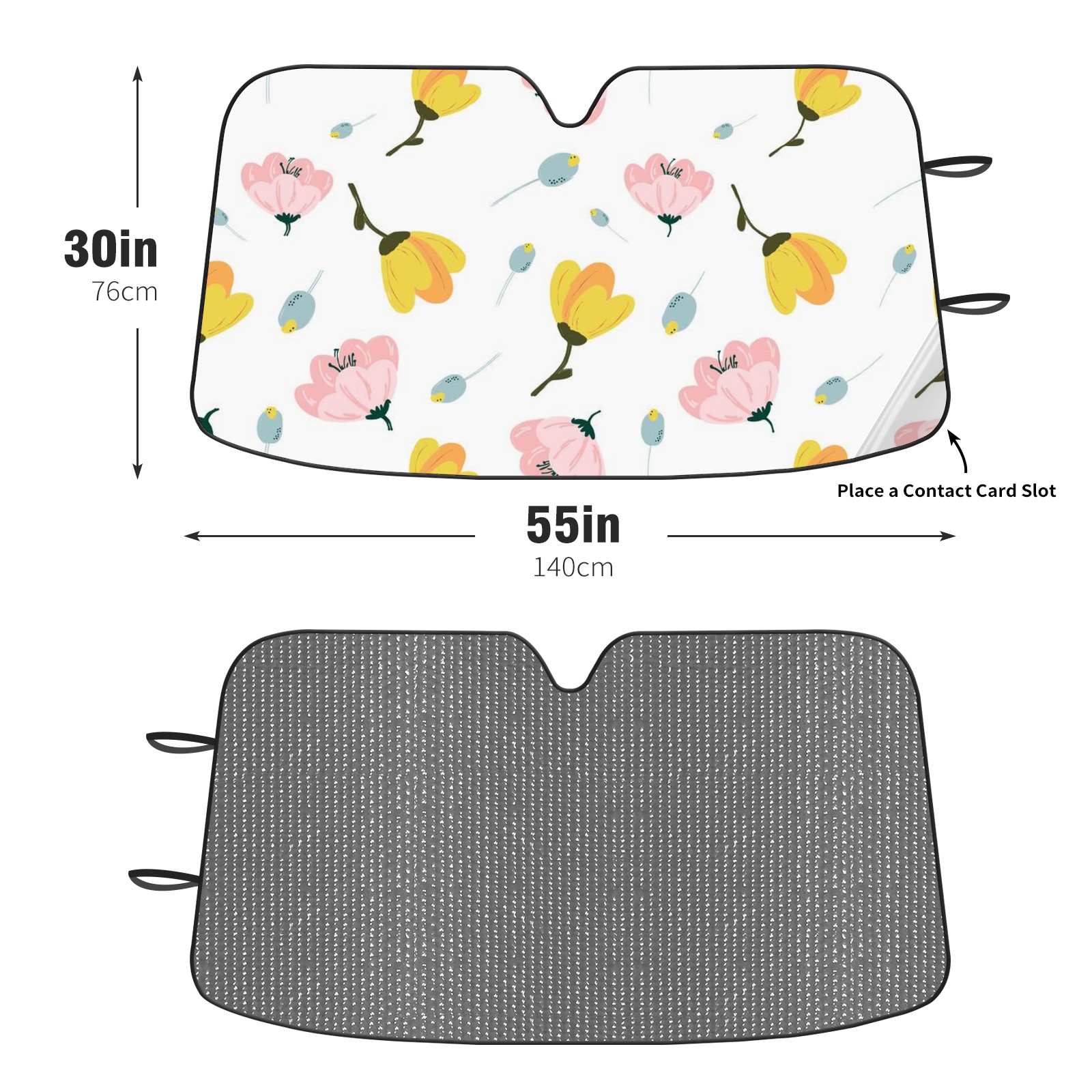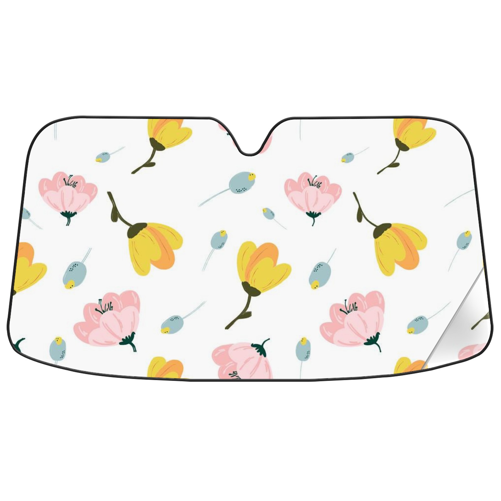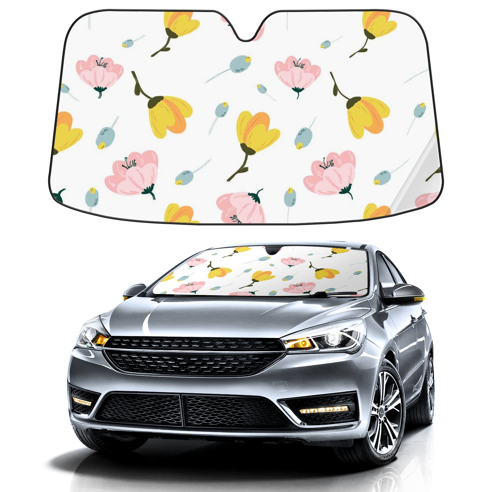 Car Windshield Sun Shade For Front Window Yellow Pink Flower Foldable Vehicle Windshield Car Sun Visor Covers Automotive Window Protector Car Camping Privacy Sun Blocker