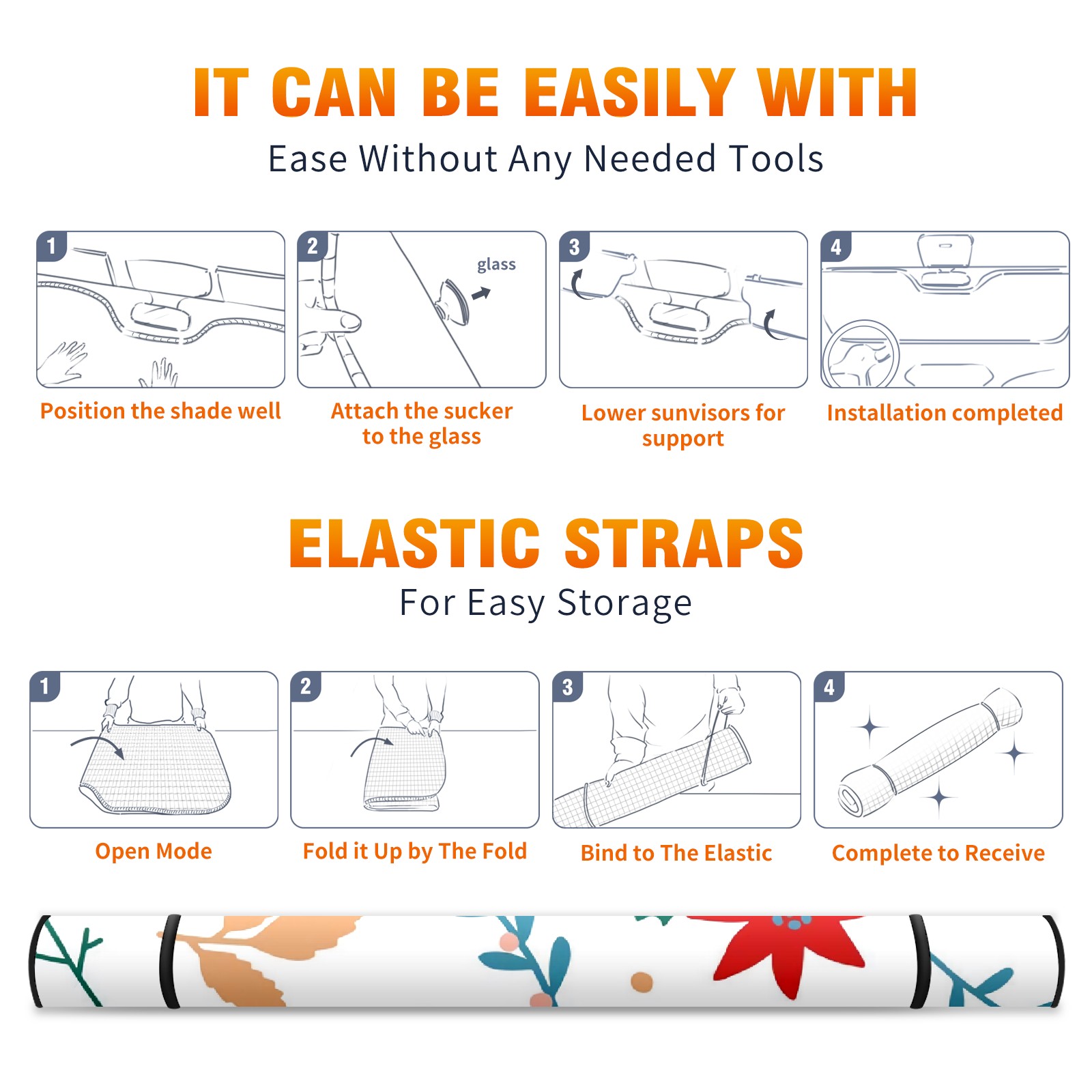 • Diameter /Size 63"L x 33.5"W Made from excellent materials which makes it sturdy and protects the car from the sun. Easy to use and pack. Makes the interior of the car cooler.You can easily stash the sunshade in the storage bag or store long term.It open and closes easy. Also the leather storage bag is durable and easy to put the umbrella back into.This windshield sunshade provides complete coverage and keeps your car interior cool under direct sun. It is easy to open and position under the windshield and around the rear-view mirror. Makes Your Car Easy To Identify, Perfect For Finding Your Car In Crowded Parking Lots And Garages.Great Choice: It Is A Great Gift For Dad, Boyfriend, Brother, Brother And Uncle, Friends, Classmates, Family And So On. Notice: Due To Difference Computer Monitors, The Color Maybe Slightly Different From Picture. As Different Measurement Methods, Measurement Data Will Float Within 2%.I Hope You Understand. If You Have Any Question About The Item Please Do Not Hesitate To Contact Us Immediately And We Will Give You A Satisfactory Reply Within 24 Hours.