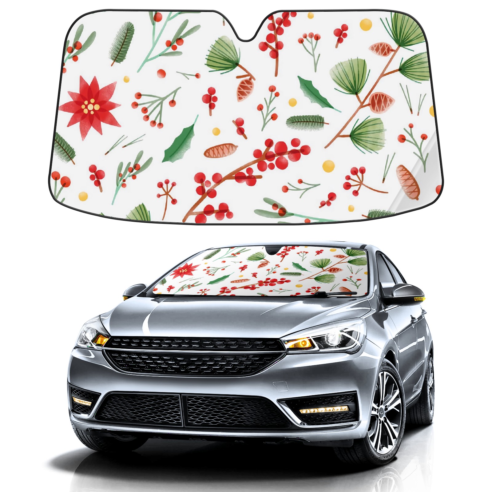 Car Windshield Sun Shade For Front Window Red Fruited Pinecones Foldable Vehicle Windshield Car Sun Visor Covers Automotive Window Protector Car Camping Privacy Sun Blocker