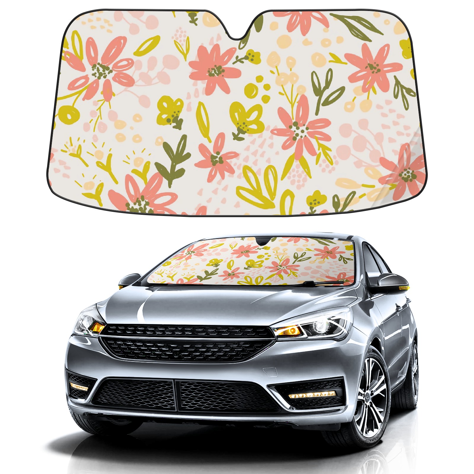 Car Windshield Sun Shade For Front Window Pink Hand Painted Flowers Foldable Vehicle Windshield Car Sun Visor Covers Automotive Window Protector Car Camping Privacy Sun Blocker