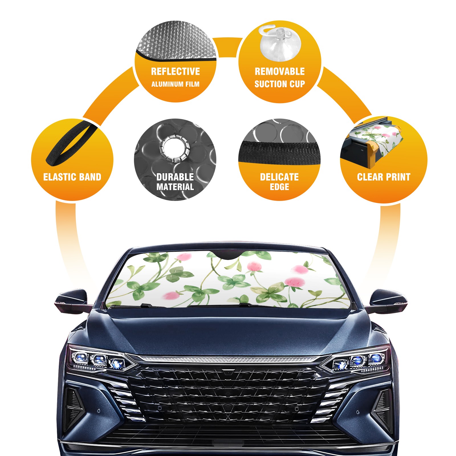 • Diameter /Size 63"L x 33.5"W Made from excellent materials which makes it sturdy and protects the car from the sun. Easy to use and pack. Makes the interior of the car cooler.You can easily stash the sunshade in the storage bag or store long term.It open and closes easy. Also the leather storage bag is durable and easy to put the umbrella back into.This windshield sunshade provides complete coverage and keeps your car interior cool under direct sun. It is easy to open and position under the windshield and around the rear-view mirror. Makes Your Car Easy To Identify, Perfect For Finding Your Car In Crowded Parking Lots And Garages.Great Choice: It Is A Great Gift For Dad, Boyfriend, Brother, Brother And Uncle, Friends, Classmates, Family And So On. Notice: Due To Difference Computer Monitors, The Color Maybe Slightly Different From Picture. As Different Measurement Methods, Measurement Data Will Float Within 2%.I Hope You Understand. If You Have Any Question About The Item Please Do Not Hesitate To Contact Us Immediately And We Will Give You A Satisfactory Reply Within 24 Hours.