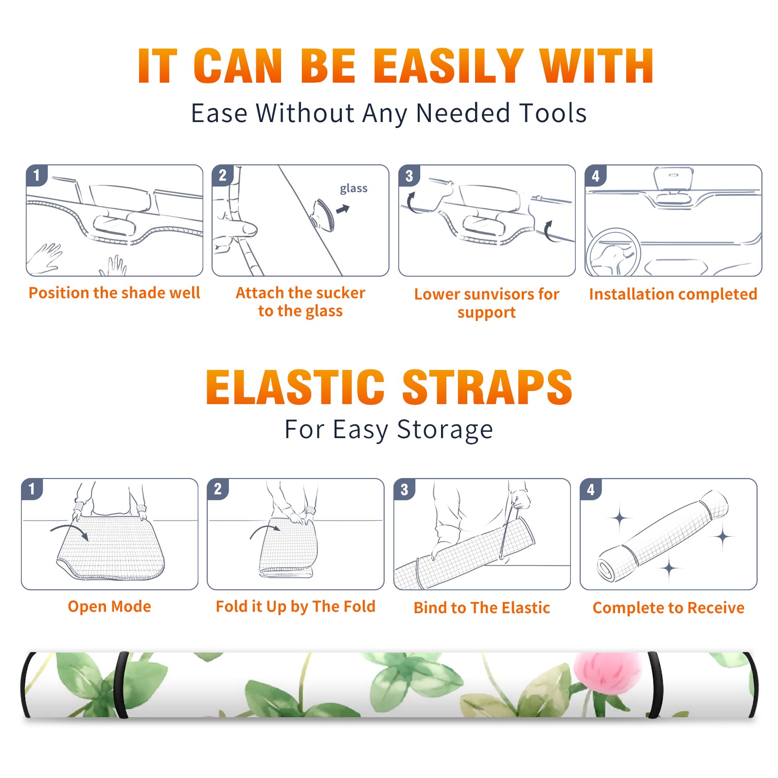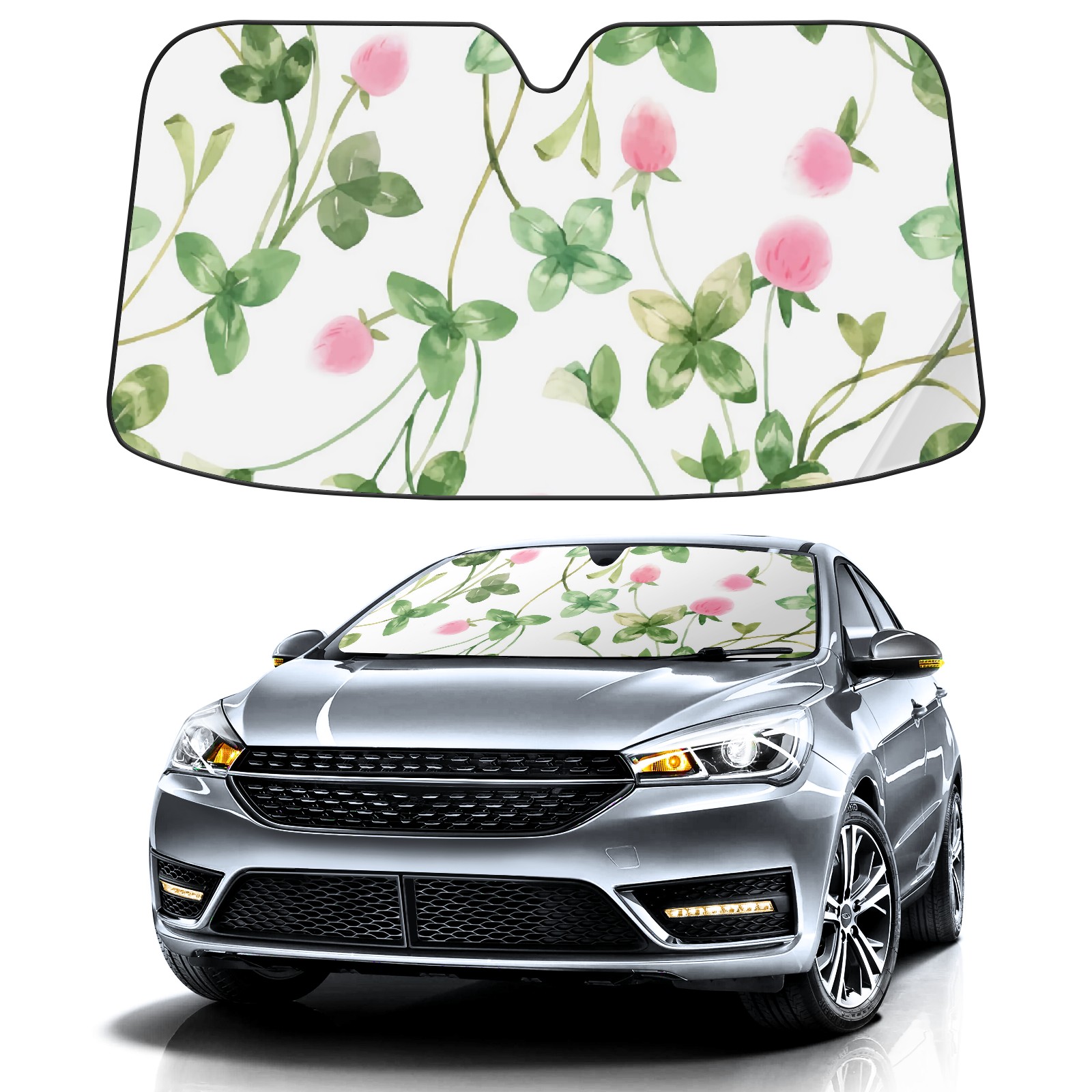 Car Windshield Sun Shade For Front Window Pink Floral Modern Foldable Vehicle Windshield Car Sun Visor Covers Automotive Window Protector Car Camping Privacy Sun Blocker