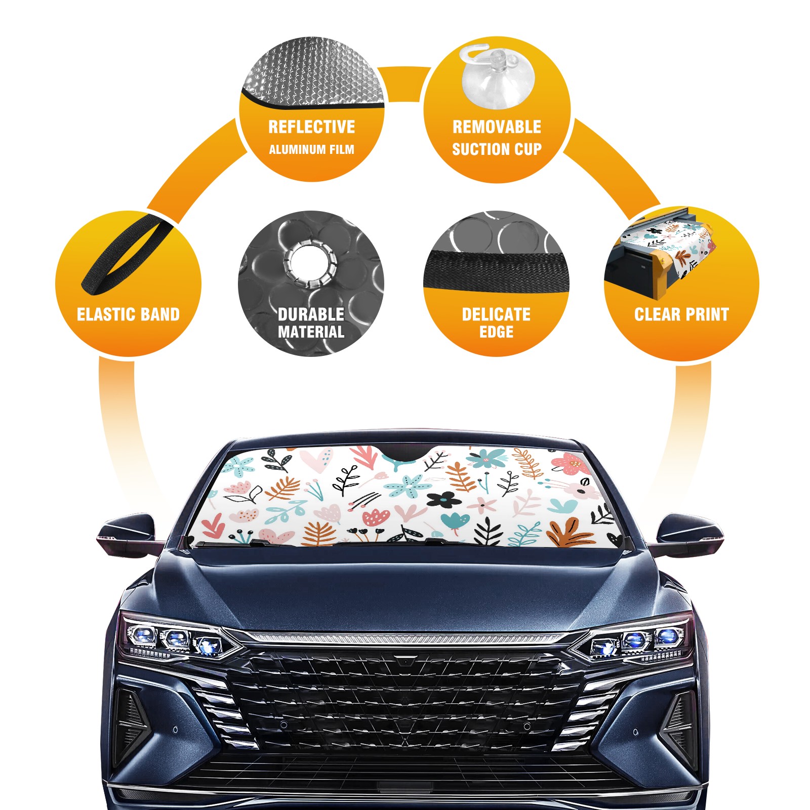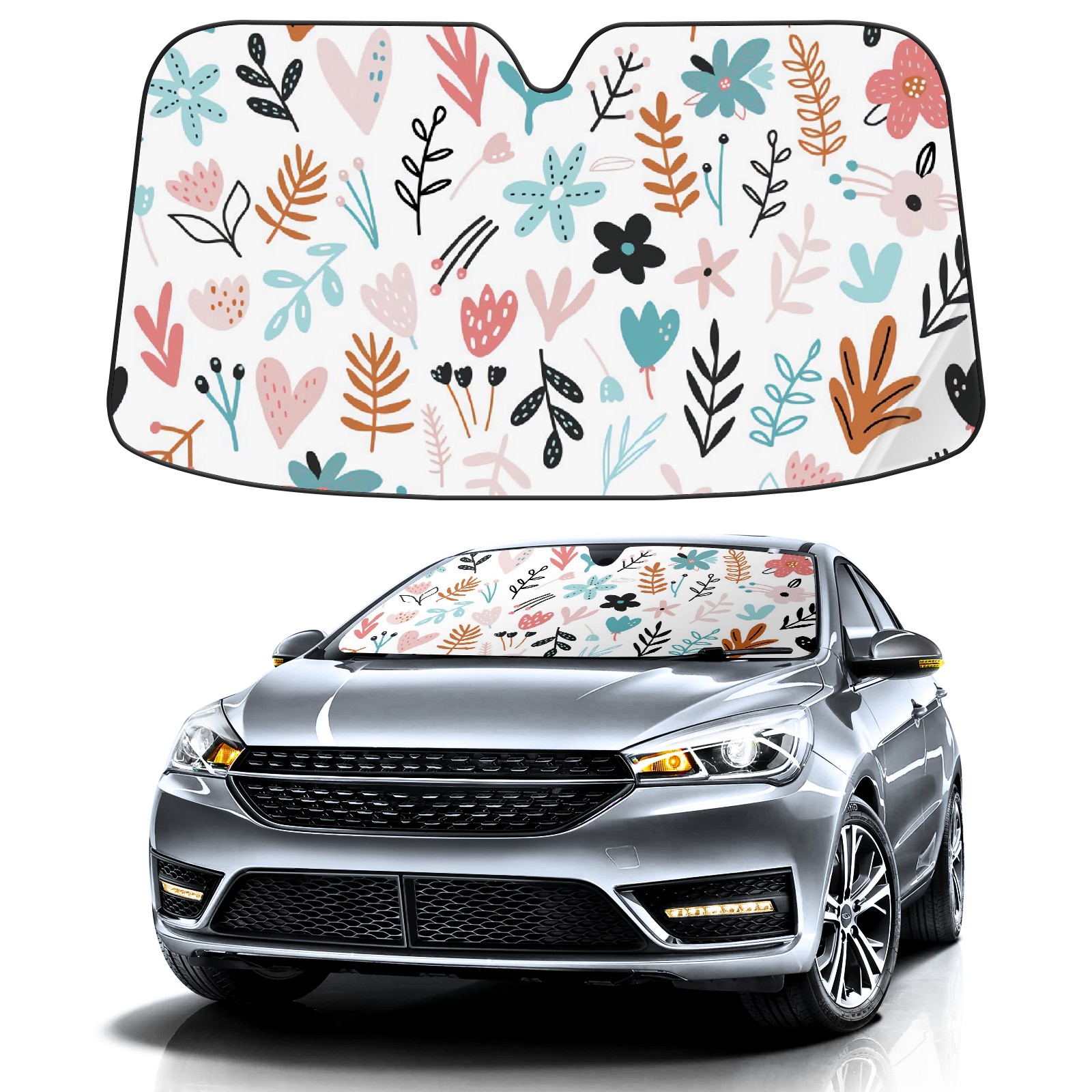Car Windshield Sun Shade For Front Window Multi Color Abstract Flower Foldable Vehicle Windshield Car Sun Visor Covers Automotive Window Protector Car Camping Privacy Sun Blocker