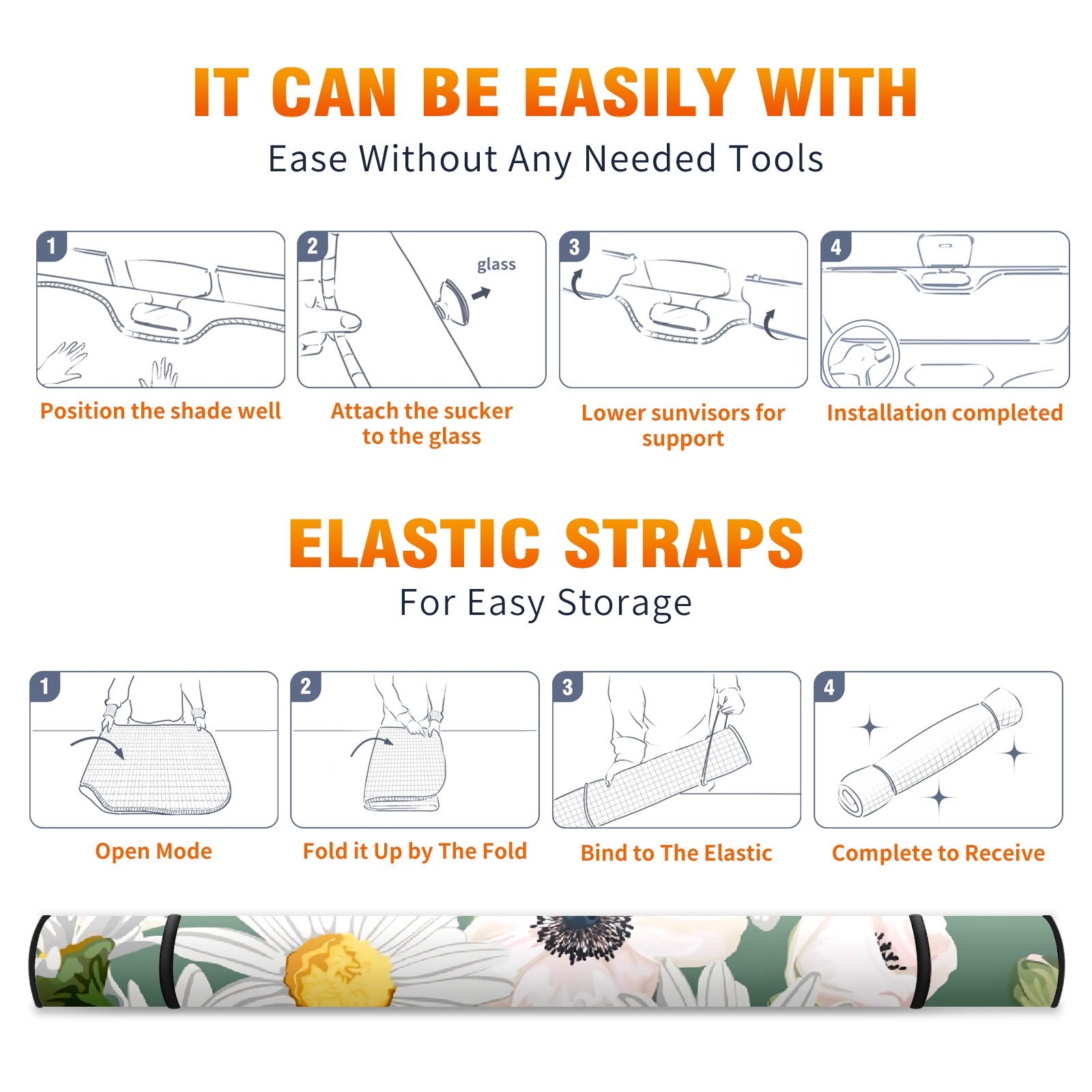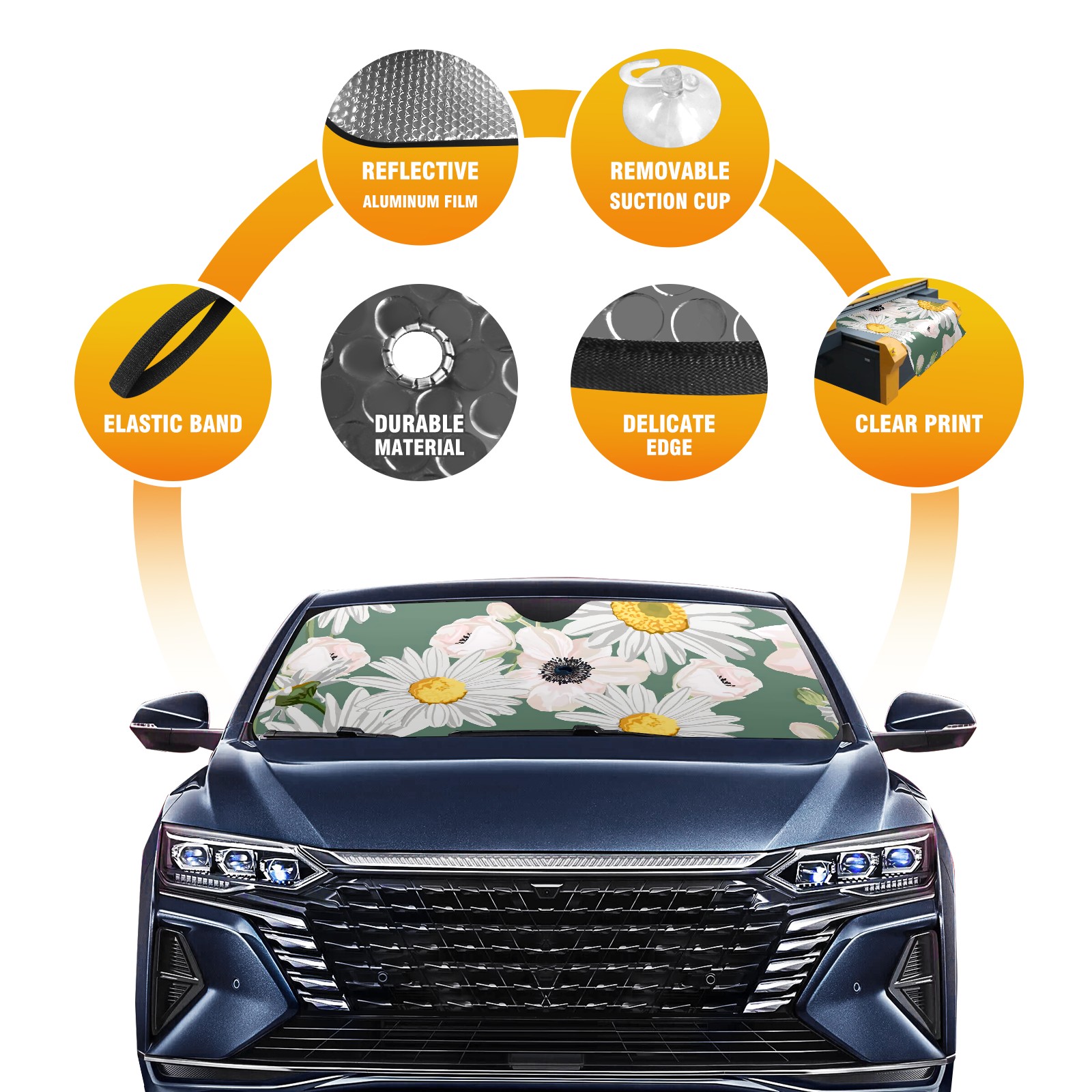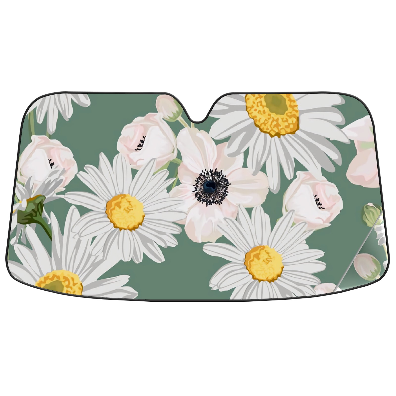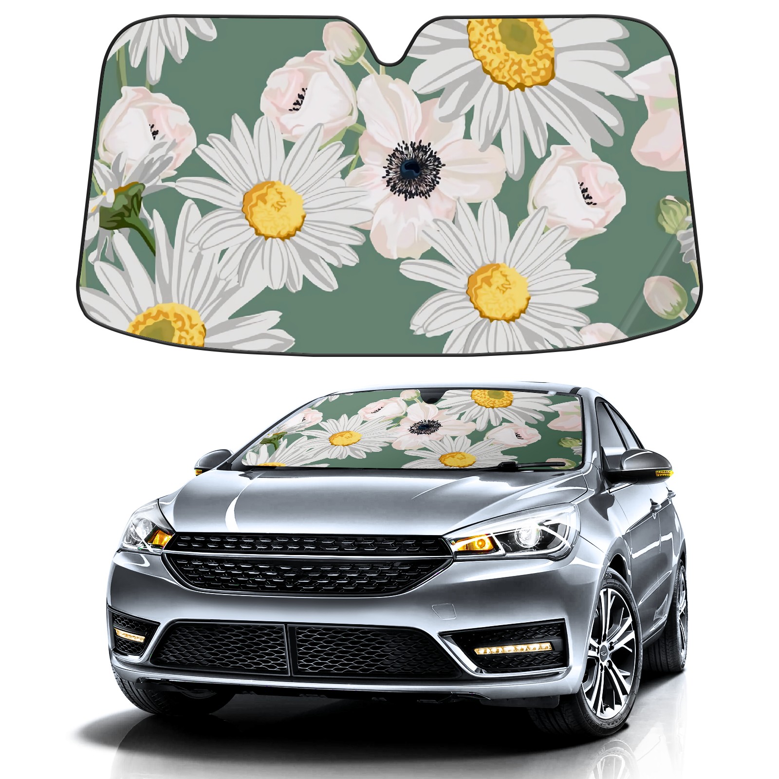 Car Windshield Sun Shade For Front Window Common Chrysanthemum Foldable Vehicle Windshield Car Sun Visor Covers Automotive Window Protector Car Camping Privacy Sun Blocker