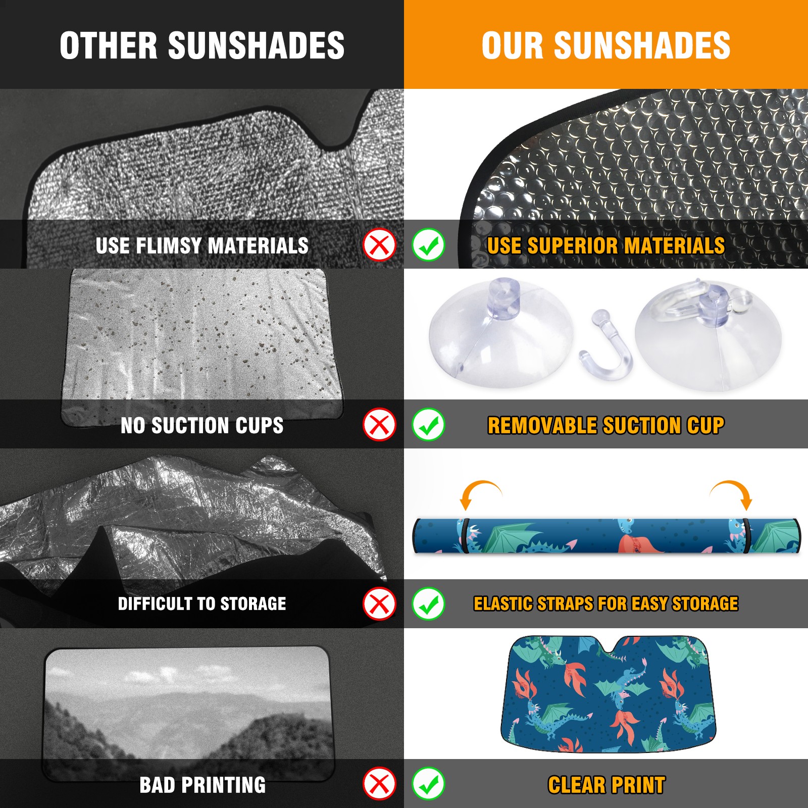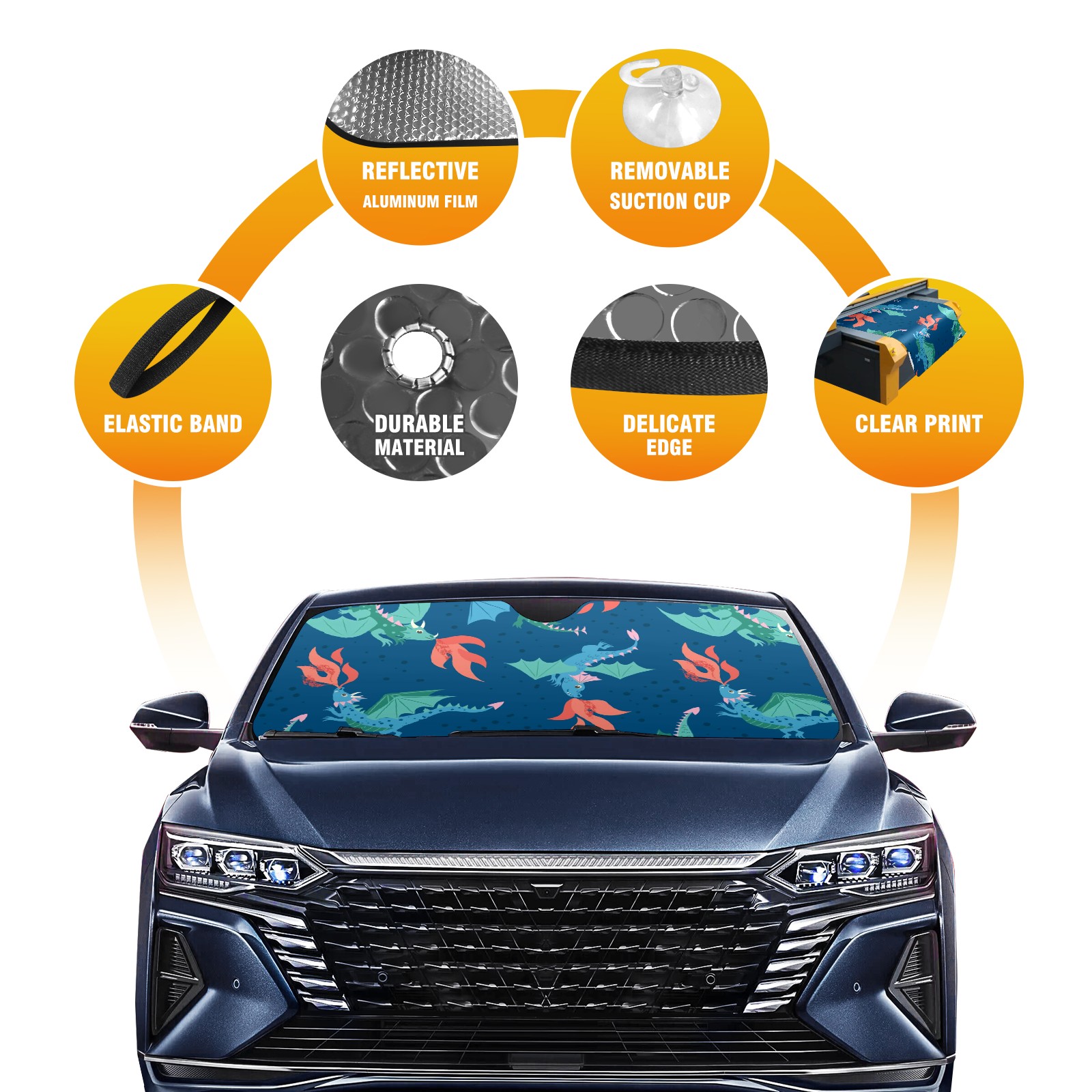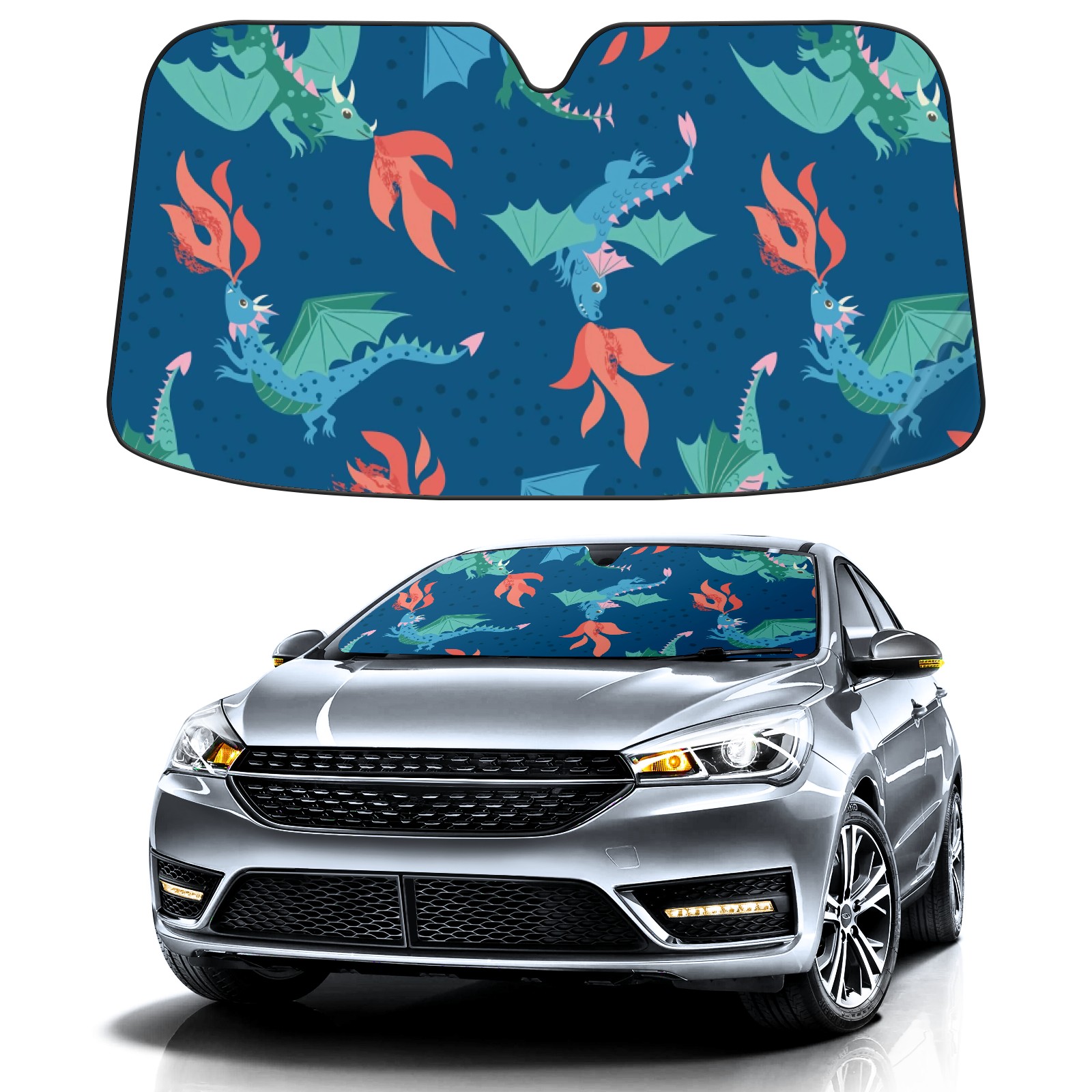 Car Windshield Sun Shade For Front Window Cartoon Fire Dragon Foldable Vehicle Windshield Car Sun Visor Covers Automotive Window Protector Car Camping Privacy Sun Blocker