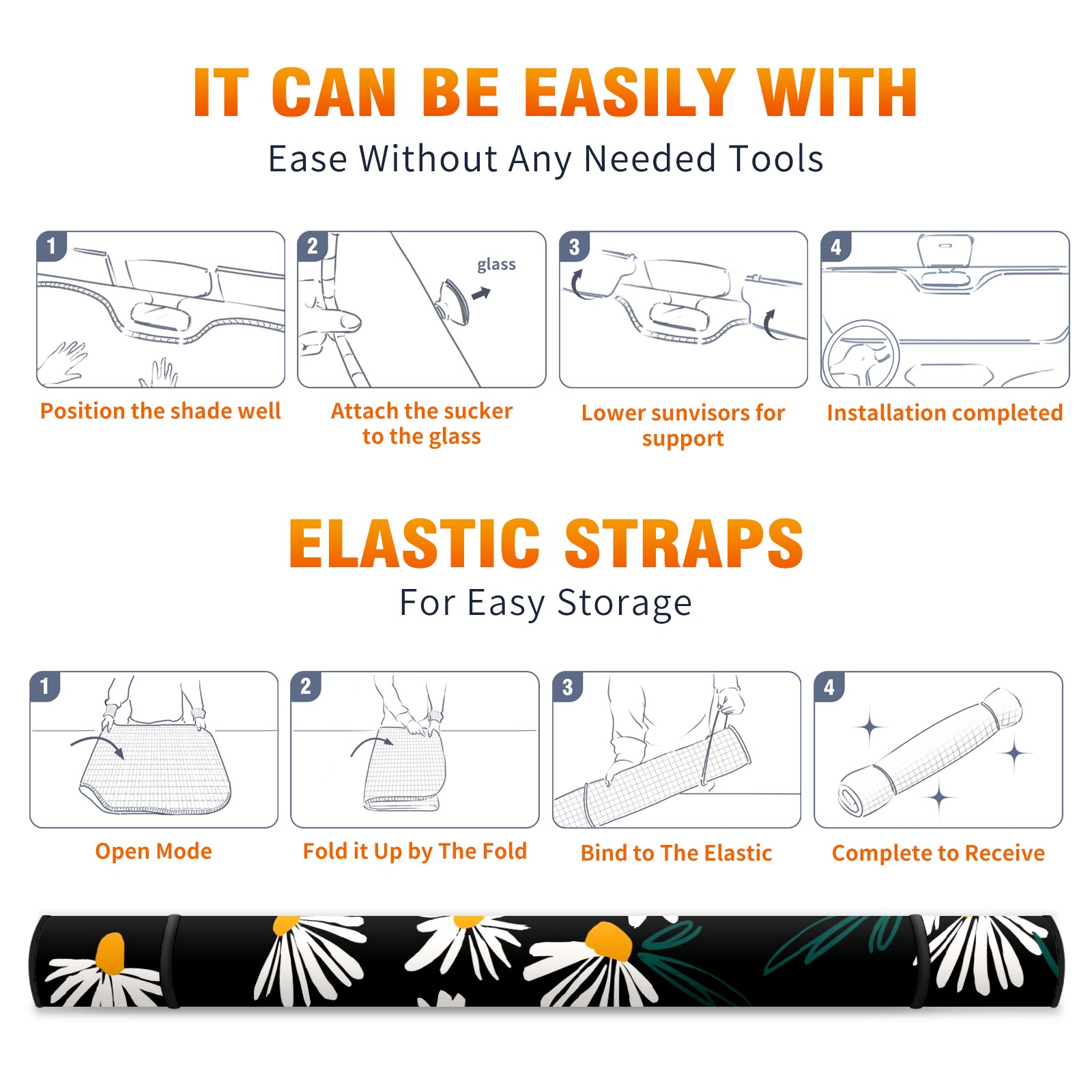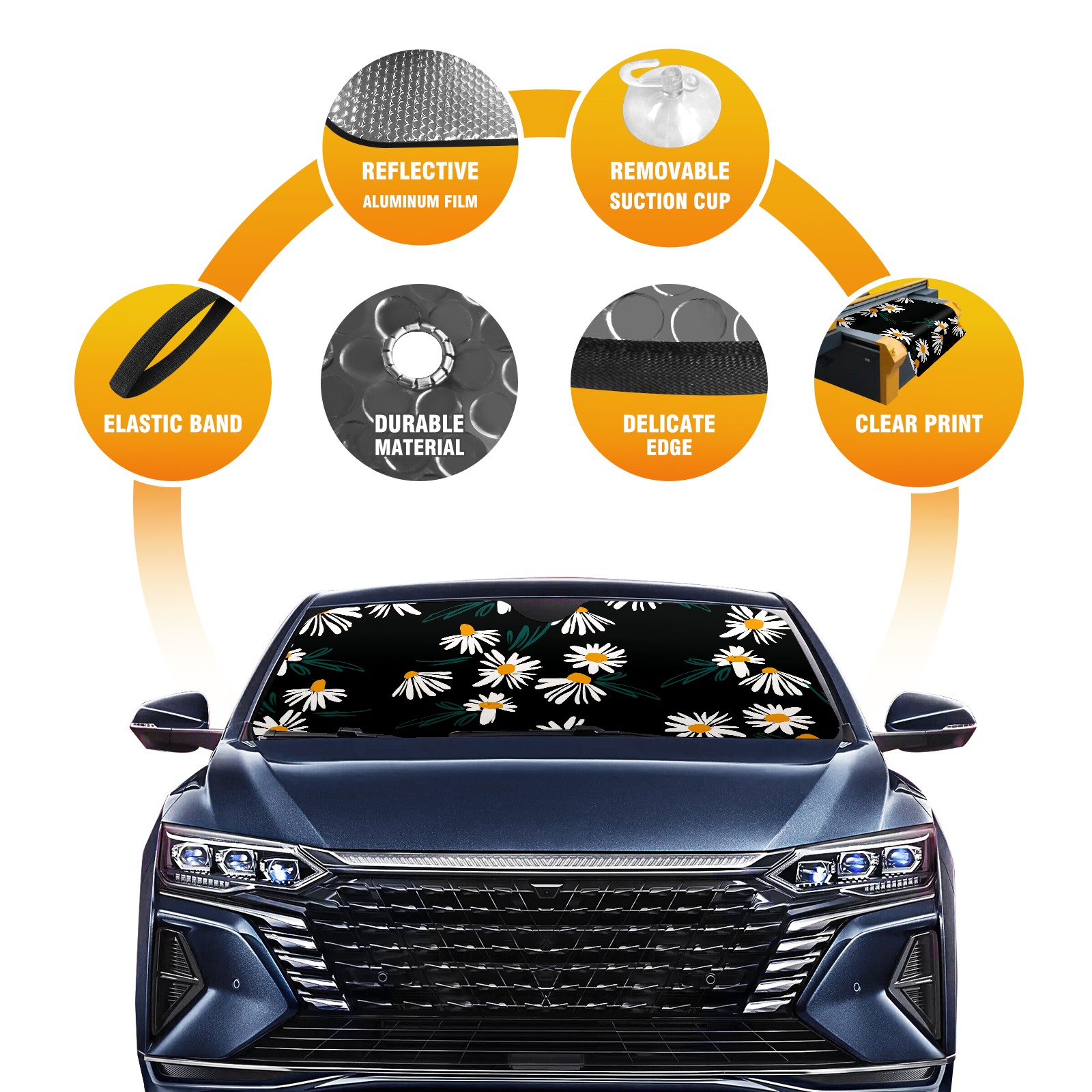 Car Windshield Sun Shade For Front Window Abstract White Daisy Foldable Vehicle Windshield Car Sun Visor Covers Automotive Window Protector Car Camping Privacy Sun Blocker