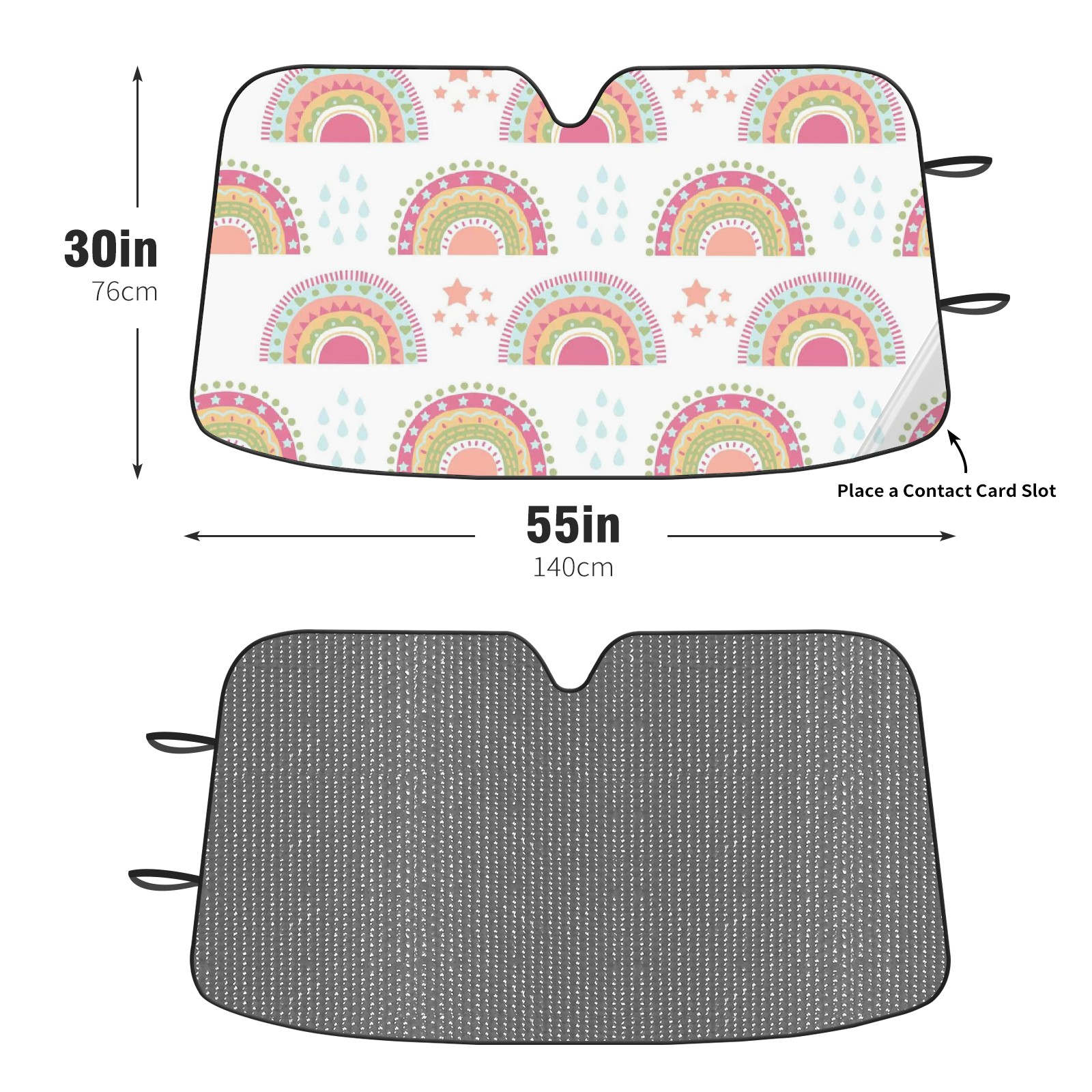 Diameter /Size 63"L x 33.5"W Made from excellent materials which makes it sturdy and protects the car from the sun. Easy to use and pack. Makes the interior of the car cooler.You can easily stash the sunshade in the storage bag or store long term.It open and closes easy. Also the leather storage bag is durable and easy to put the umbrella back into.This windshield sunshade provides complete coverage and keeps your car interior cool under direct sun. It is easy to open and position under the windshield and around the rear-view mirror. Makes Your Car Easy To Identify, Perfect For Finding Your Car In Crowded Parking Lots And Garages.Great Choice: It Is A Great Gift For Dad, Boyfriend, Brother, Brother And Uncle, Friends, Classmates, Family And So On. Notice: Due To Difference Computer Monitors, The Color Maybe Slightly Different From Picture. As Different Measurement Methods, Measurement Data Will Float Within 2%.I Hope You Understand. If You Have Any Question About The Item Please Do Not Hesitate To Contact Us Immediately And We Will Give You A Satisfactory Reply Within 24 Hours.