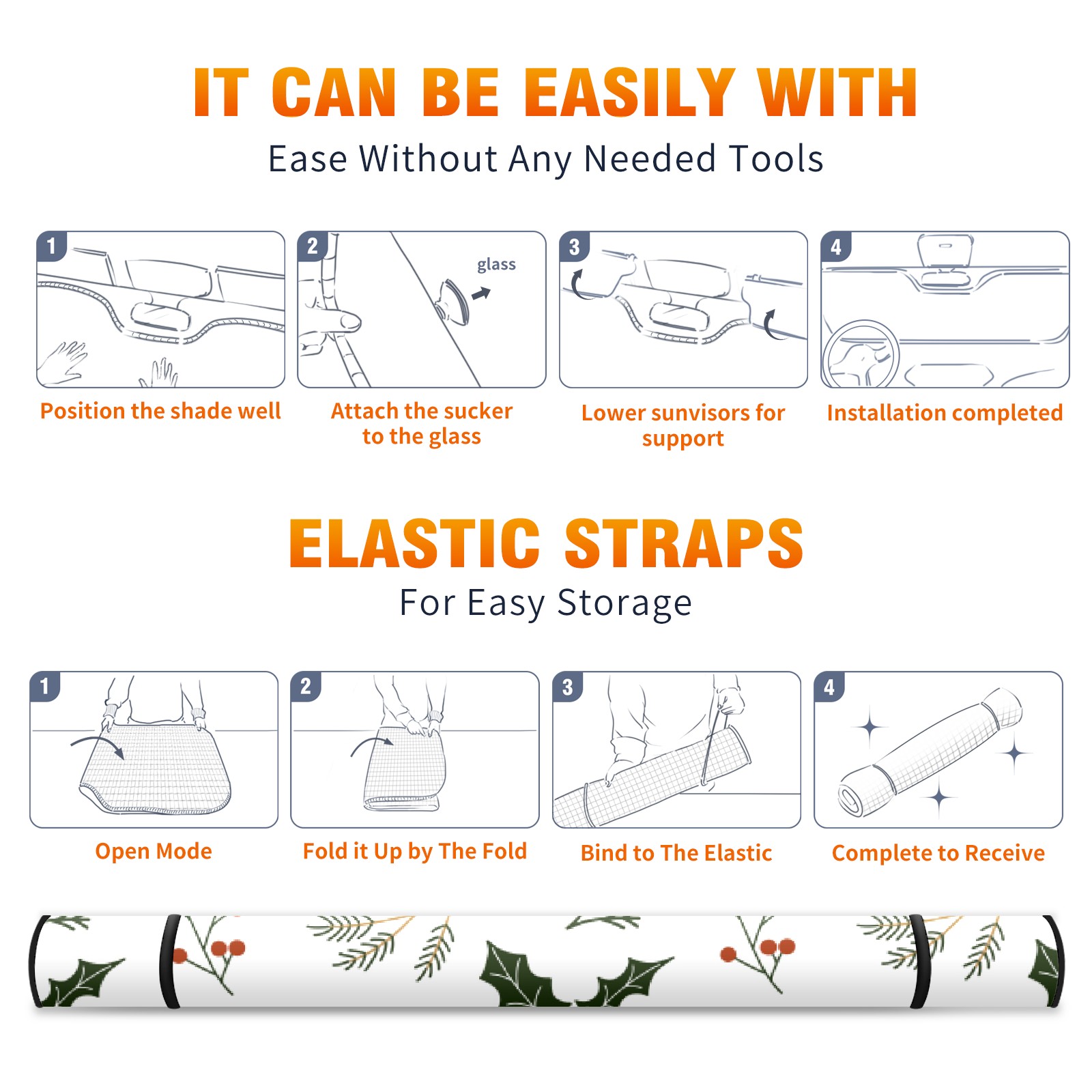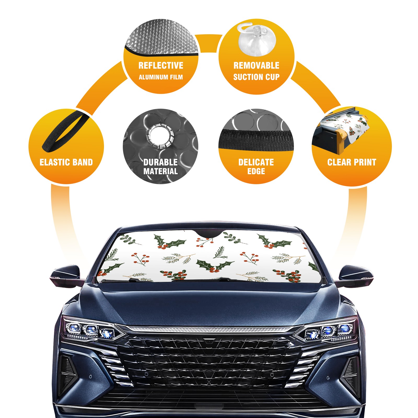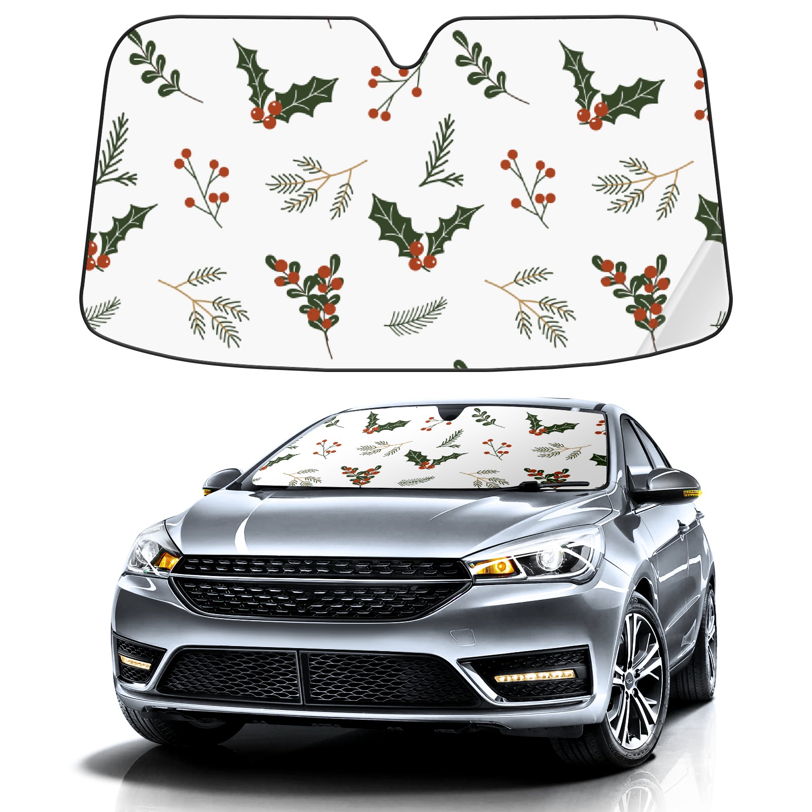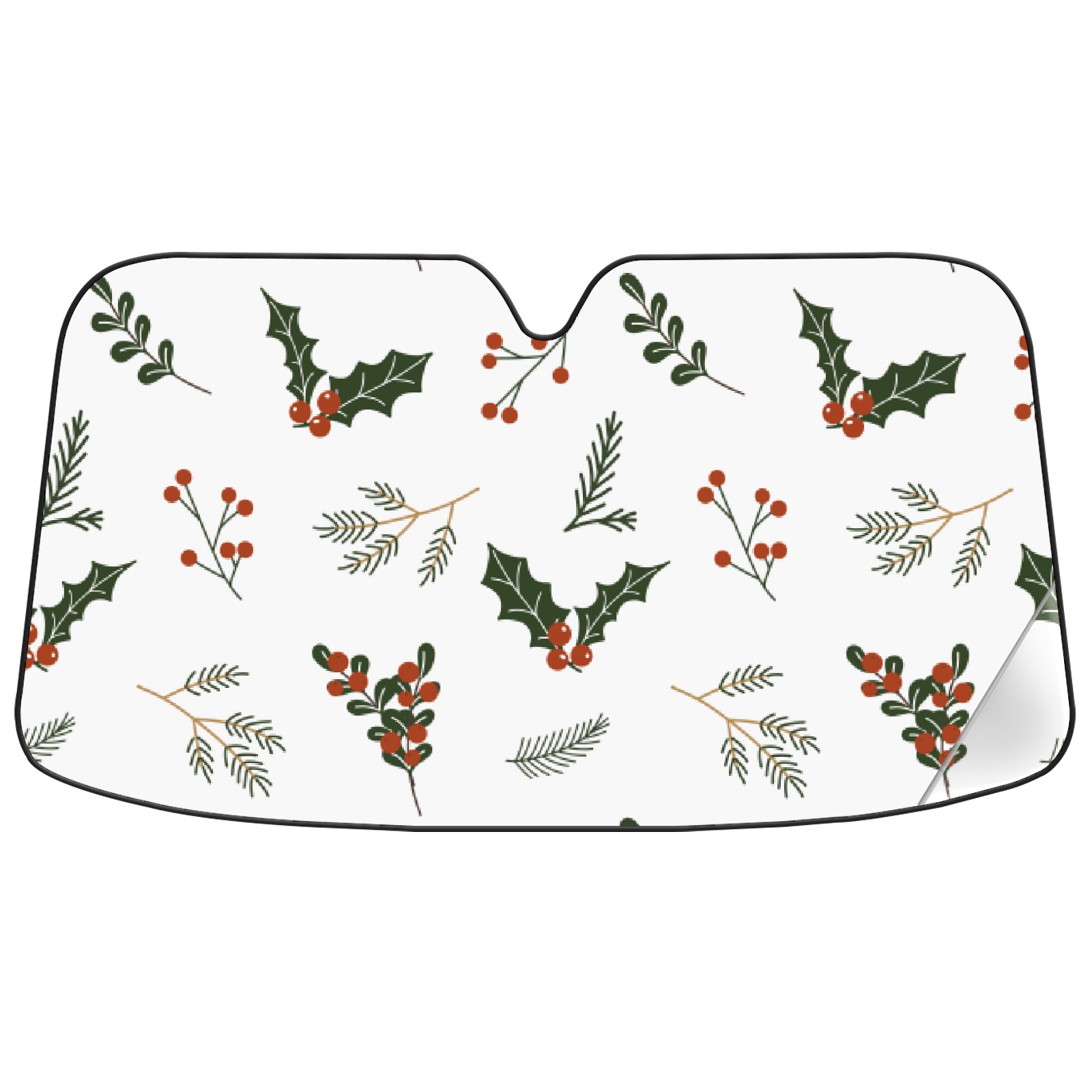Car Windshield Sun Shade For Front Window Christmas Berries Leavesj Foldable Vehicle Windshield Car Sun Visor Covers Automotive Window Protector Car Camping Privacy Sun Blocker