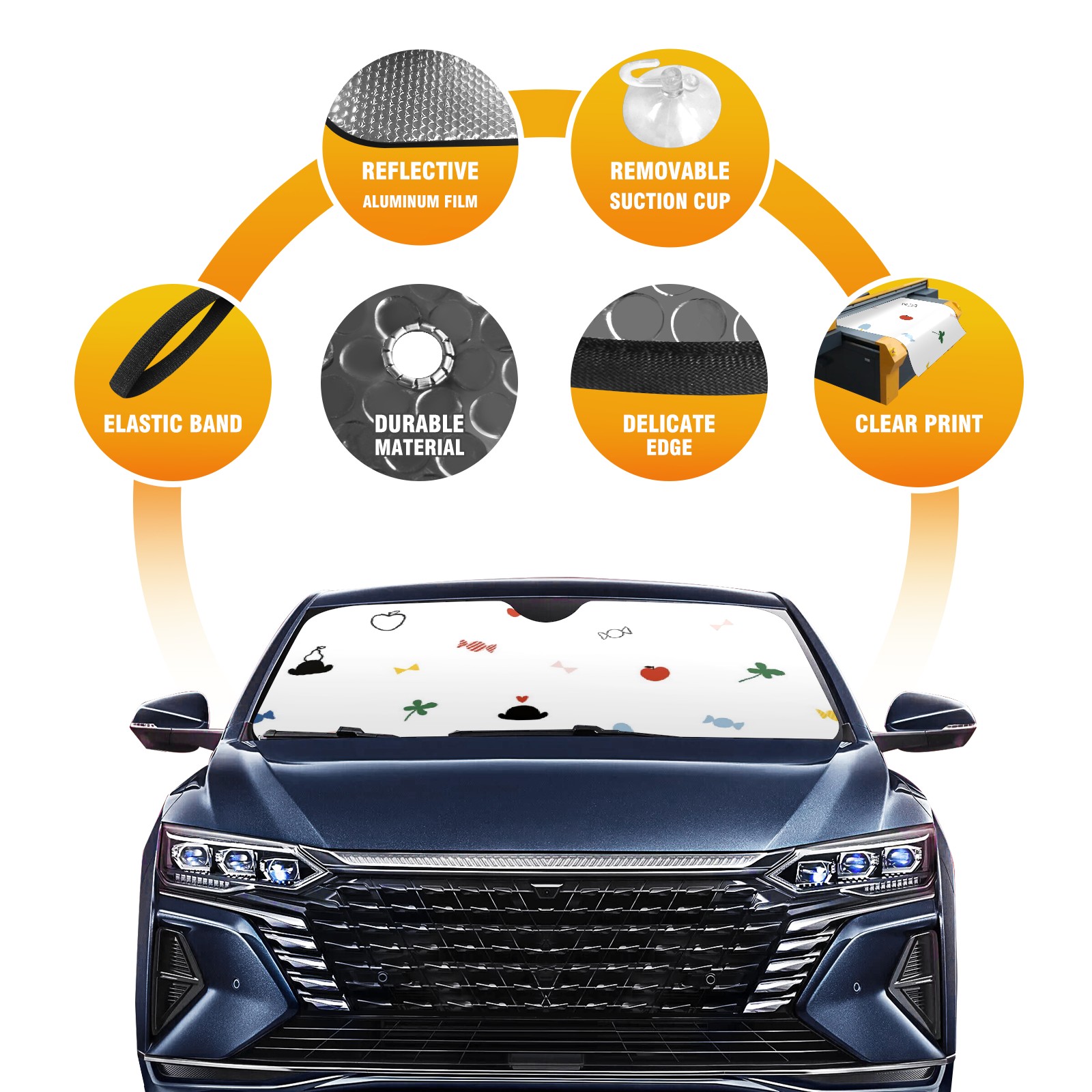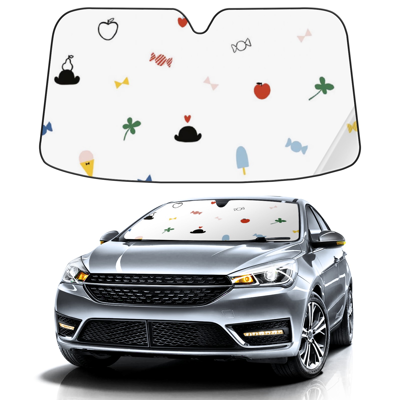 Car Windshield Sun Shade For Front Window Candy Rainbow Fruit Foldable Vehicle Windshield Car Sun Visor Covers Automotive Window Protector Car Camping Privacy Sun Blocker