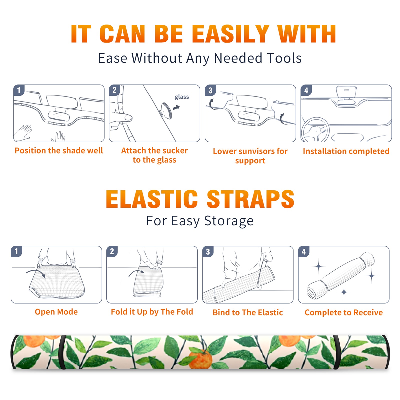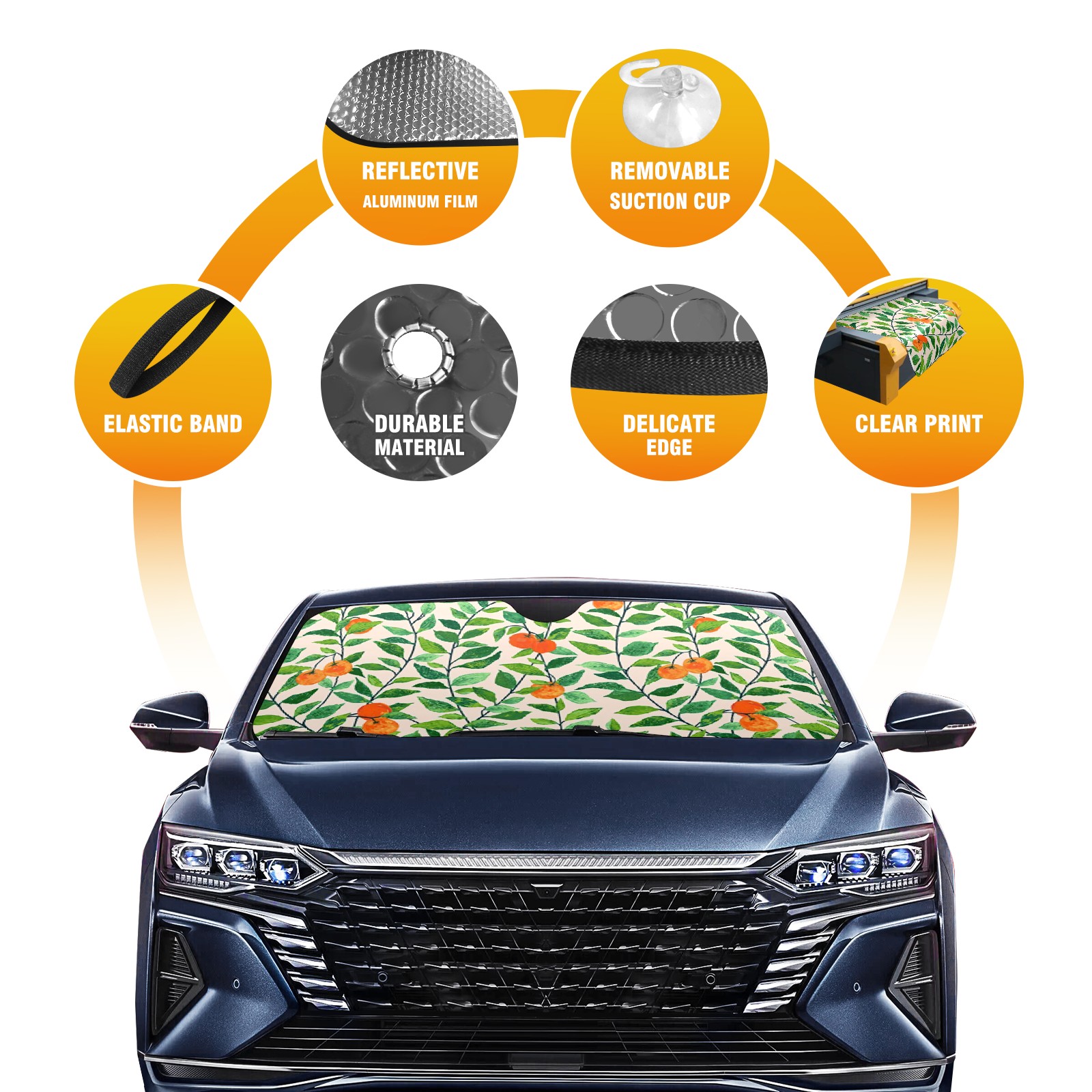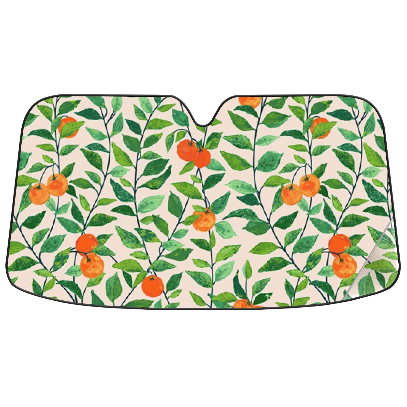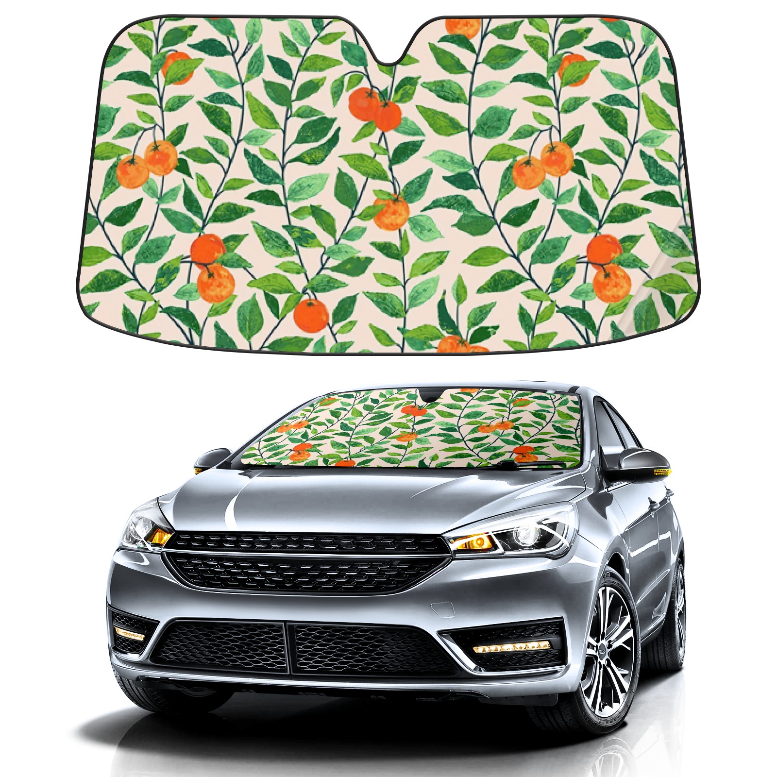 Car Windshield Sun Shade For Front Window Green Leaf Orange Foldable Vehicle Windshield Car Sun Visor Covers Automotive Window Protector Car Camping Privacy Sun Blocker