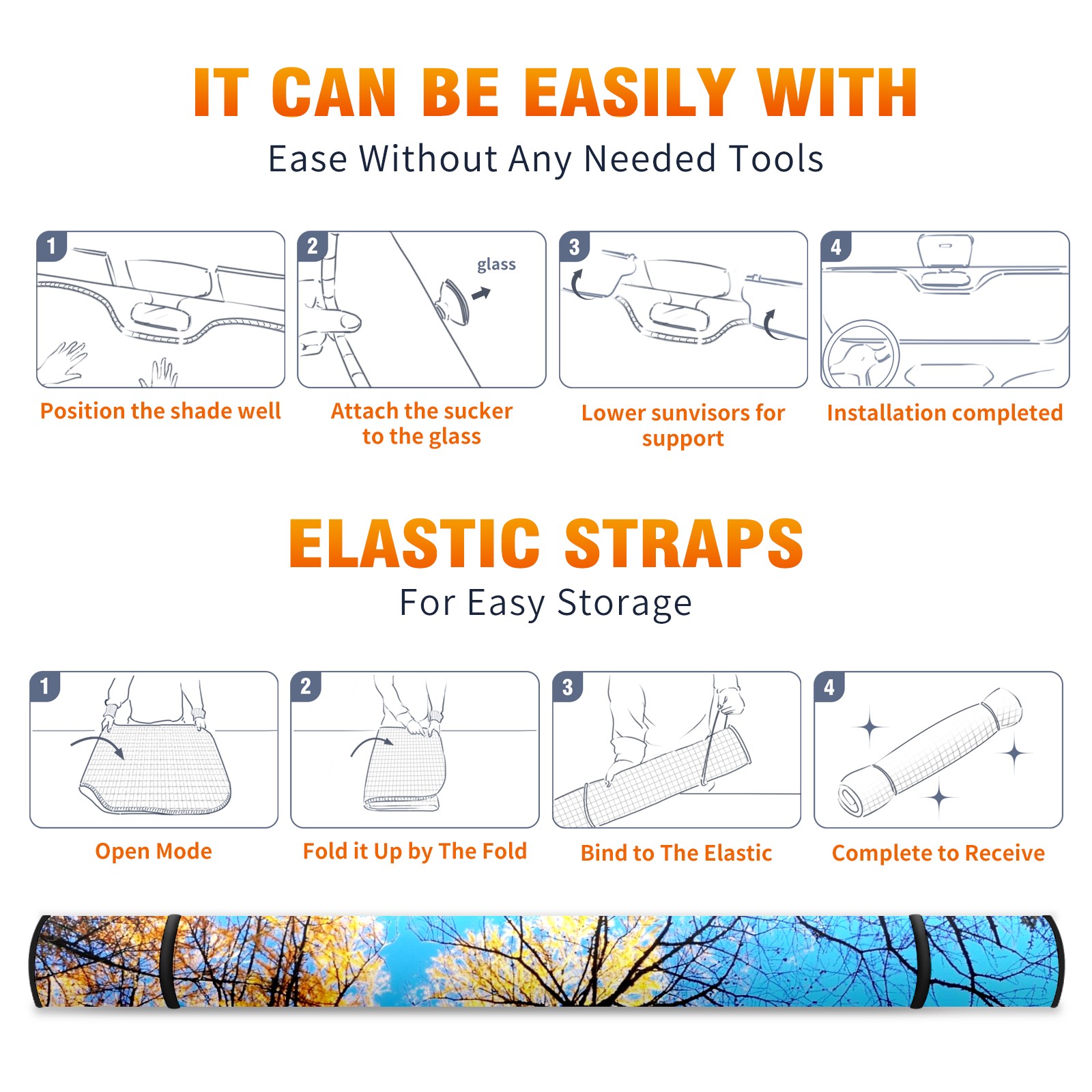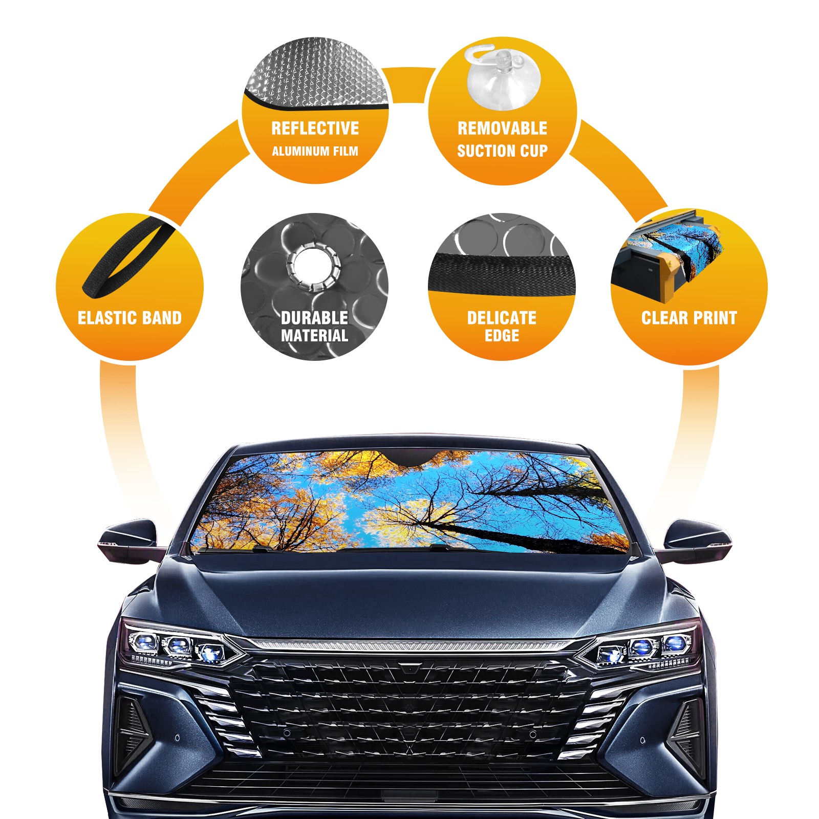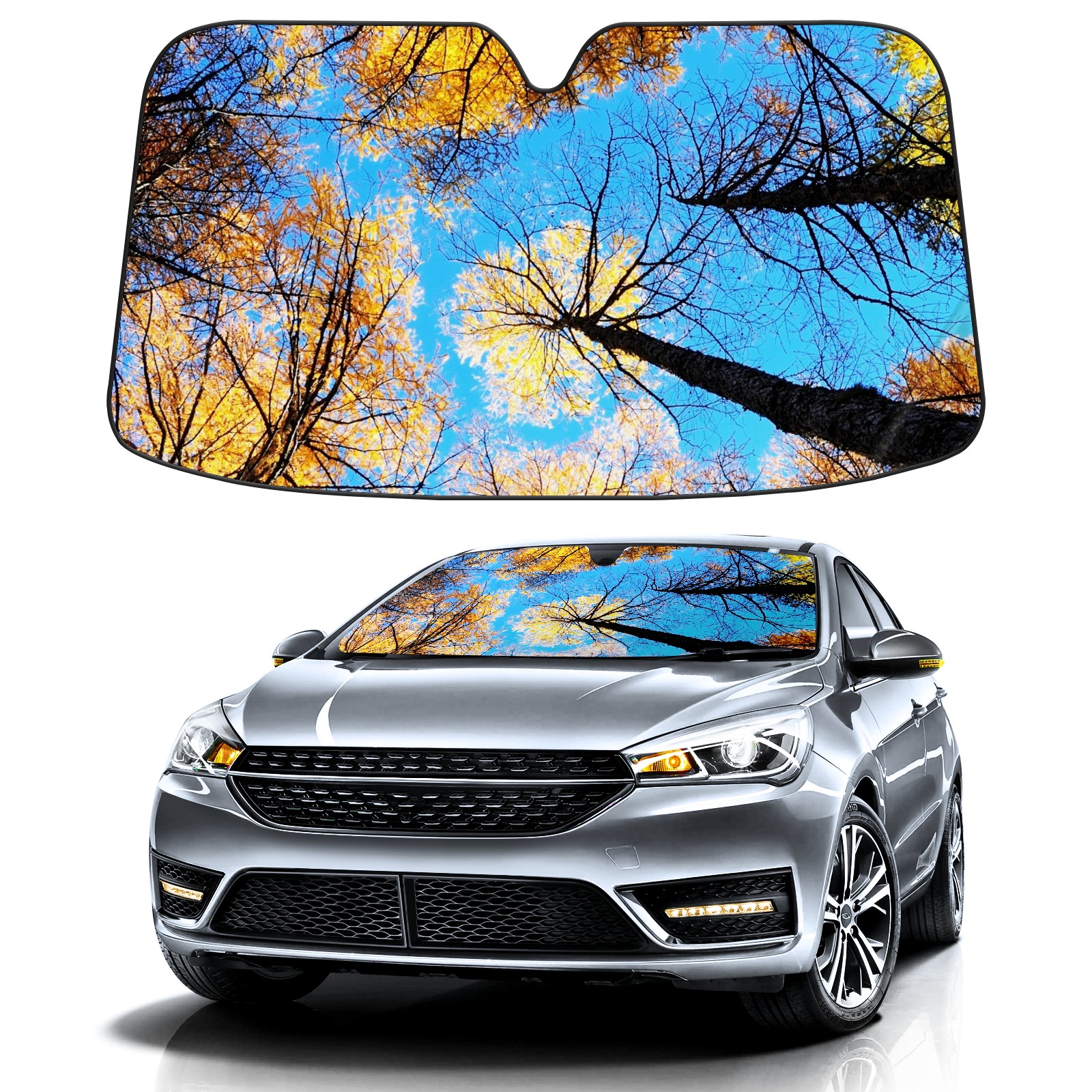 Car Windshield Sun Shade For Front Window Trees Sky Foldable Vehicle Windshield Car Sun Visor Covers Automotive Window Protector Car Camping Privacy Sun Blocker