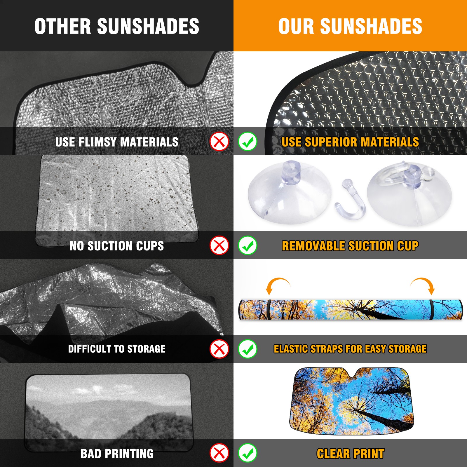 • Diameter /Size 63"L x 33.5"W Made from excellent materials which makes it sturdy and protects the car from the sun. Easy to use and pack. Makes the interior of the car cooler.You can easily stash the sunshade in the storage bag or store long term.It open and closes easy. Also the leather storage bag is durable and easy to put the umbrella back into.This windshield sunshade provides complete coverage and keeps your car interior cool under direct sun. It is easy to open and position under the windshield and around the rear-view mirror. Makes Your Car Easy To Identify, Perfect For Finding Your Car In Crowded Parking Lots And Garages.Great Choice: It Is A Great Gift For Dad, Boyfriend, Brother, Brother And Uncle, Friends, Classmates, Family And So On. Notice: Due To Difference Computer Monitors, The Color Maybe Slightly Different From Picture. As Different Measurement Methods, Measurement Data Will Float Within 2%.I Hope You Understand. If You Have Any Question About The Item Please Do Not Hesitate To Contact Us Immediately And We Will Give You A Satisfactory Reply Within 24 Hours.