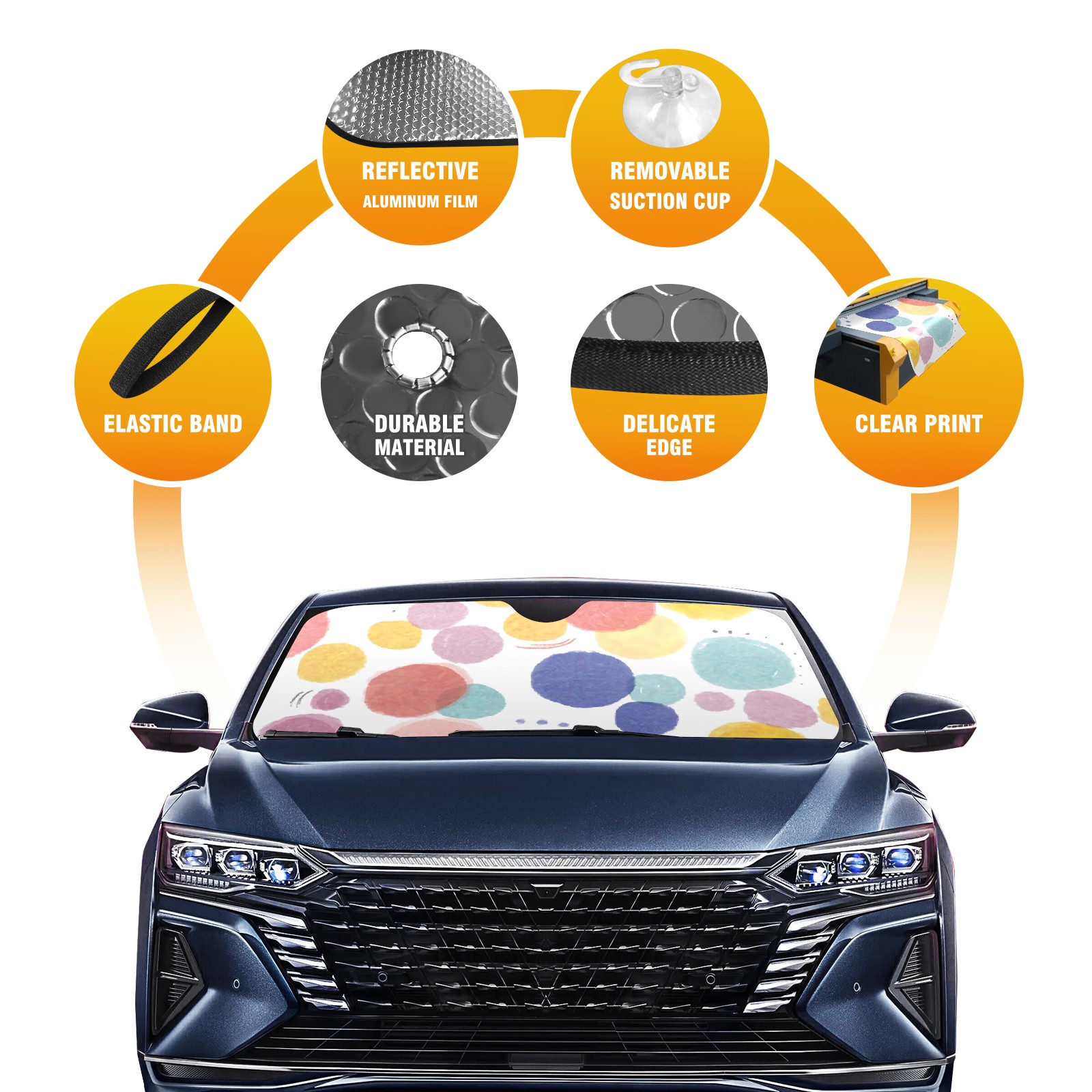Car Windshield Sun Shade For Front Window Colorful Circle Foldable Vehicle Windshield Car Sun Visor Covers Automotive Window Protector Car Camping Privacy Sun Blocker